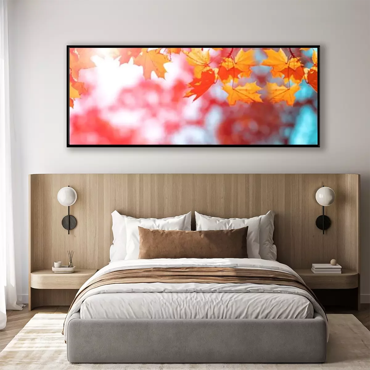 Poster: Herbstliche Ahornblätter auf zweifarbigem Hintergrund