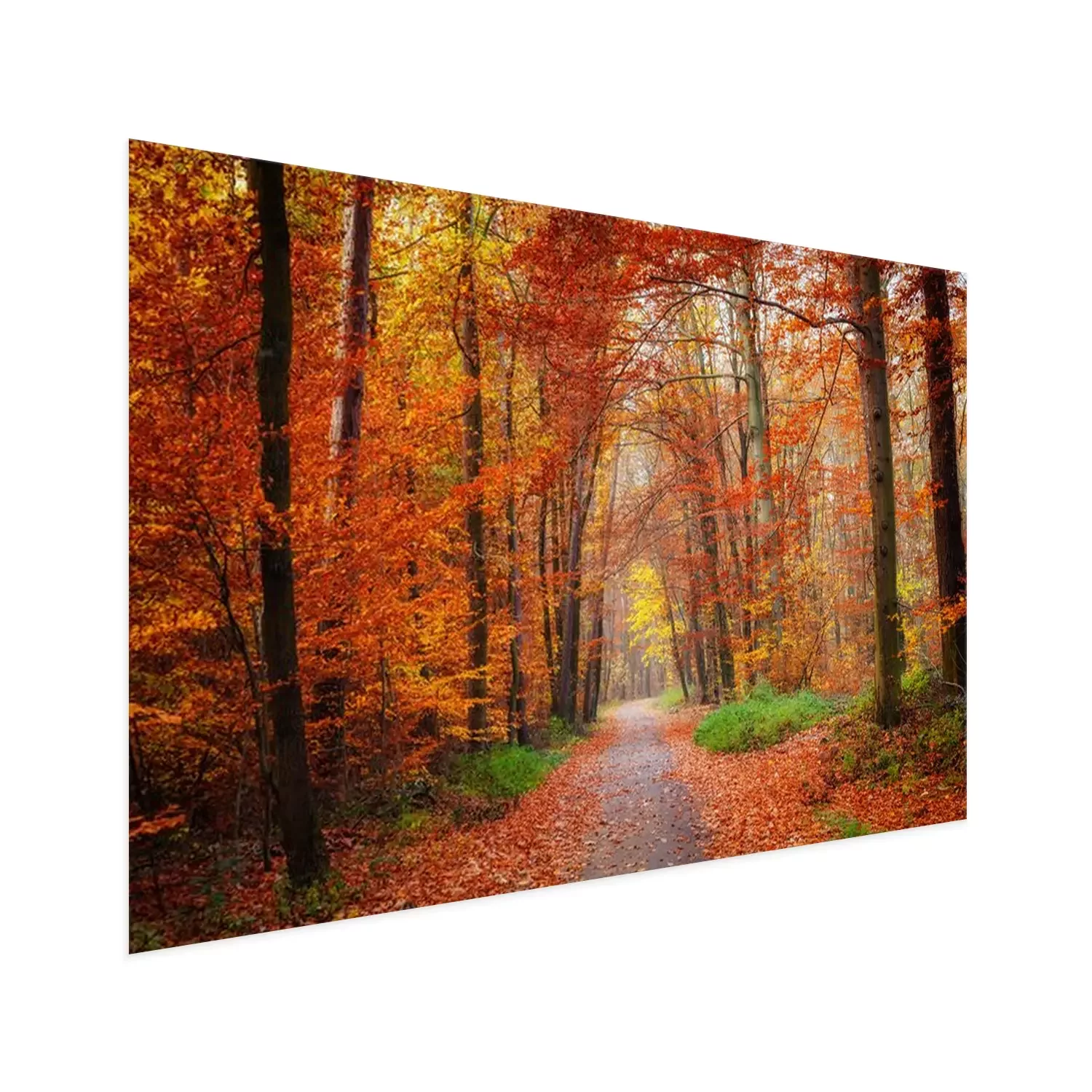 Herbstfarben in einem von einer Straße durchquerten Wald