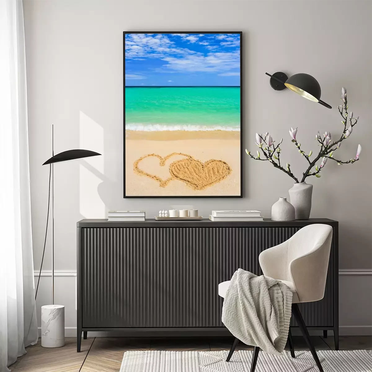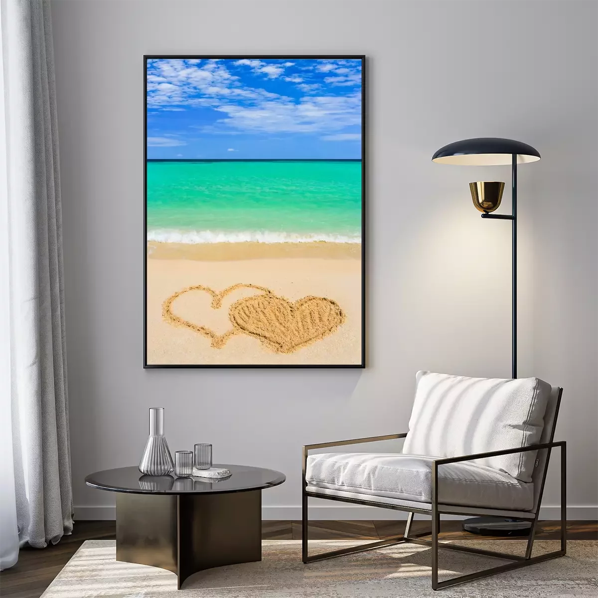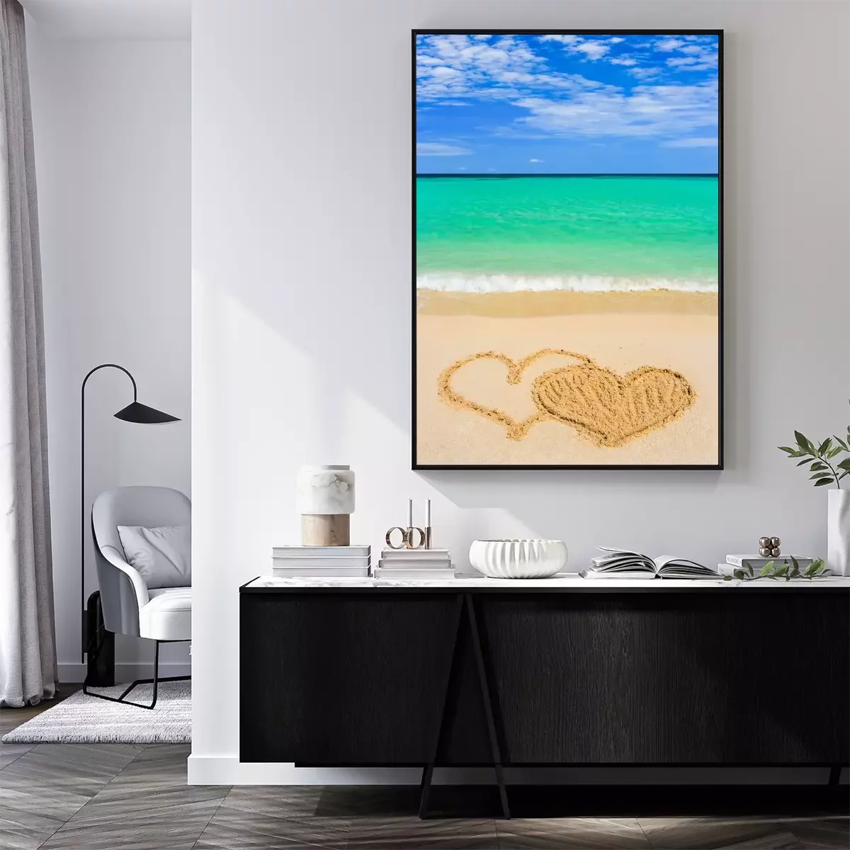 Poster: Herzen auf Sand am Strand