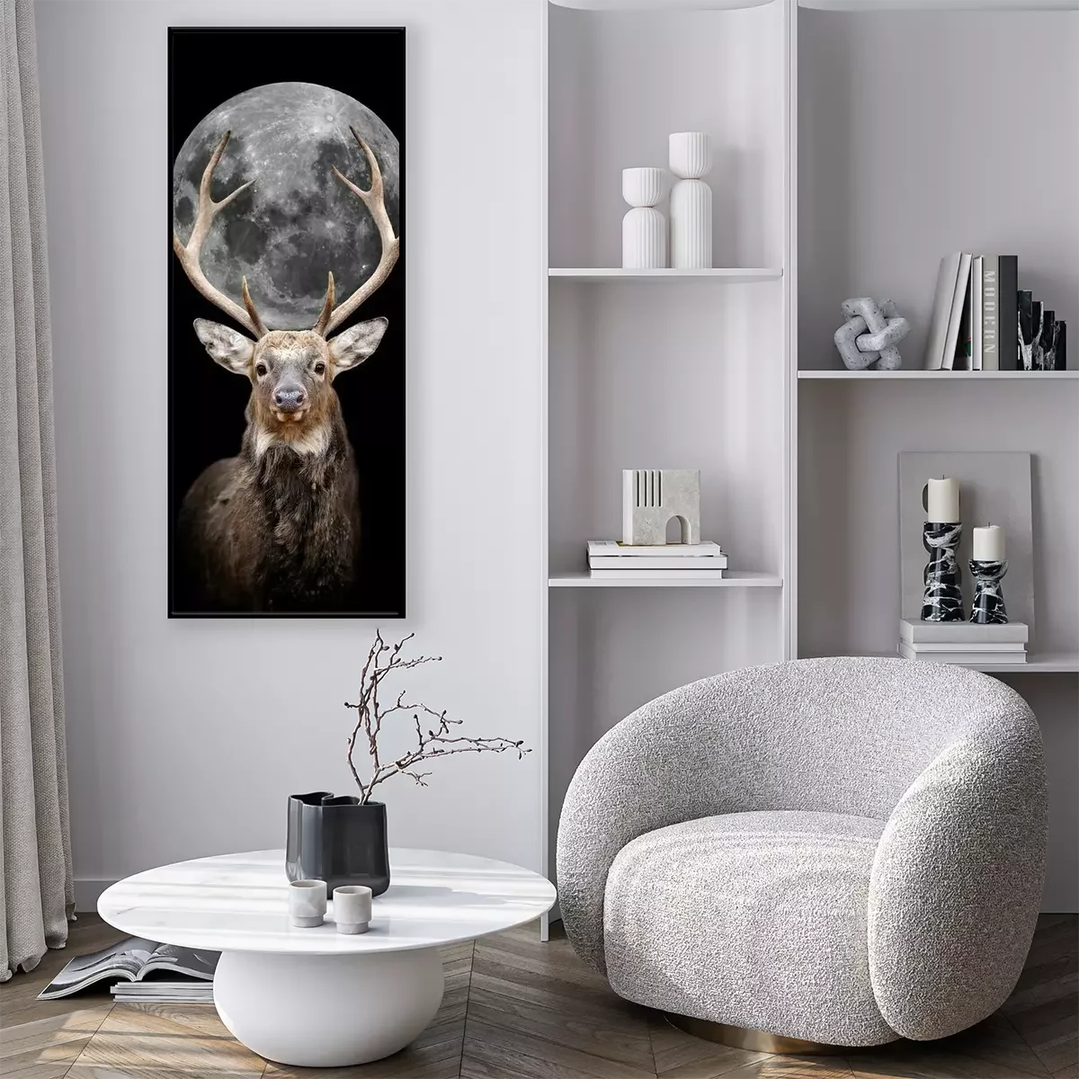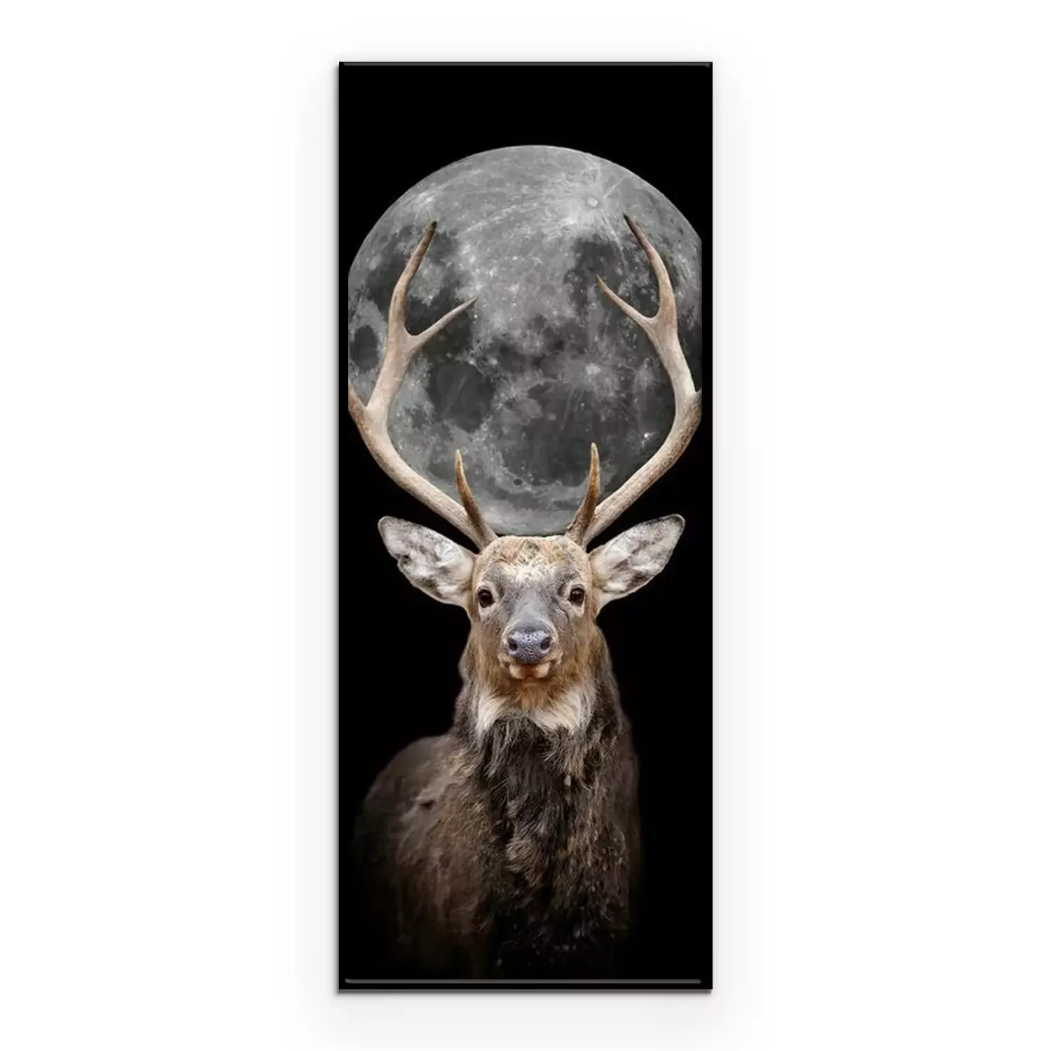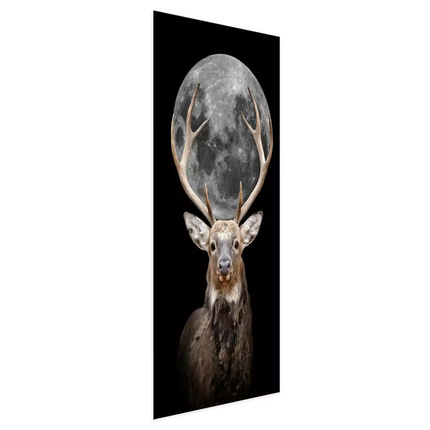 Poster: Hirsch mit Mond auf schwarzem Hintergrund