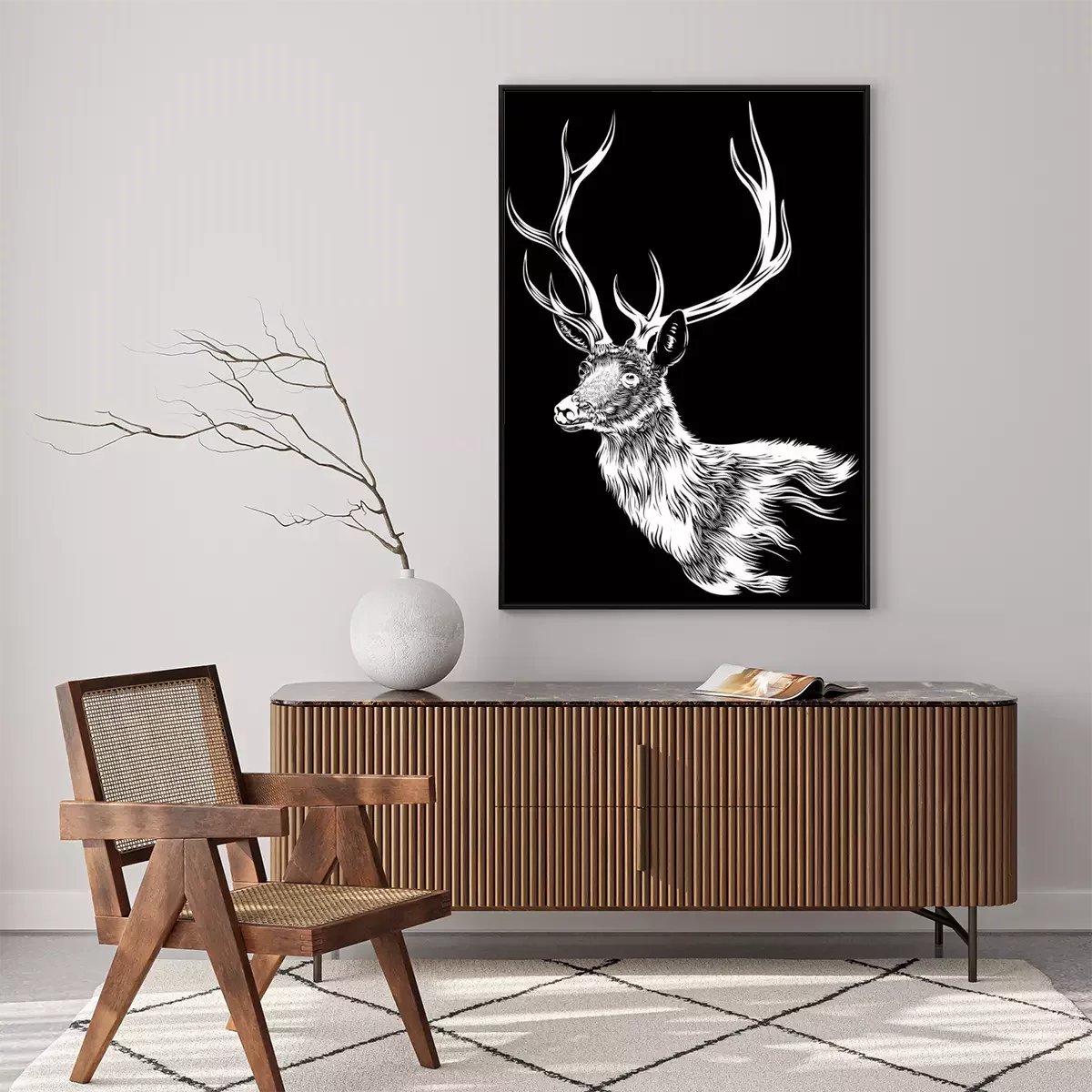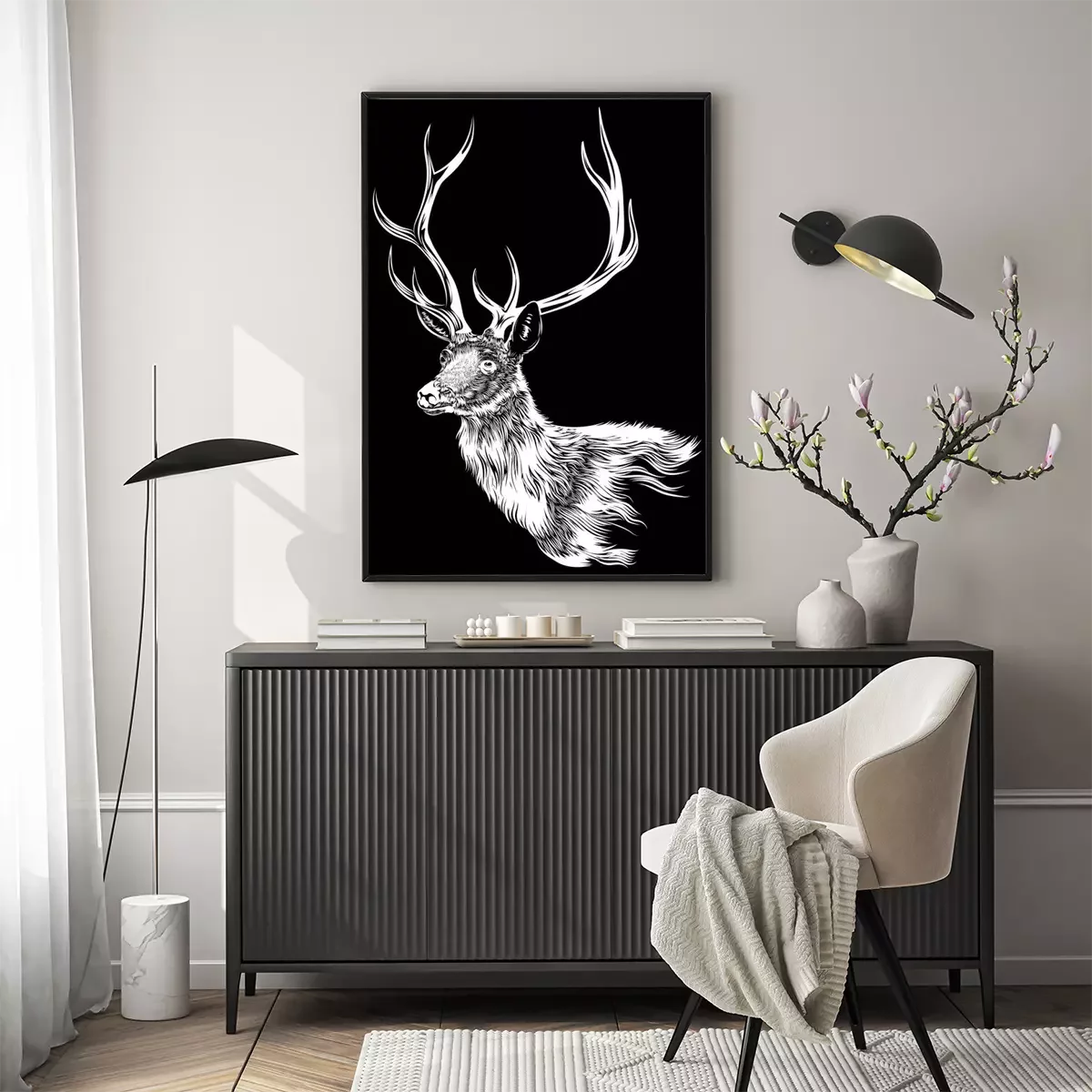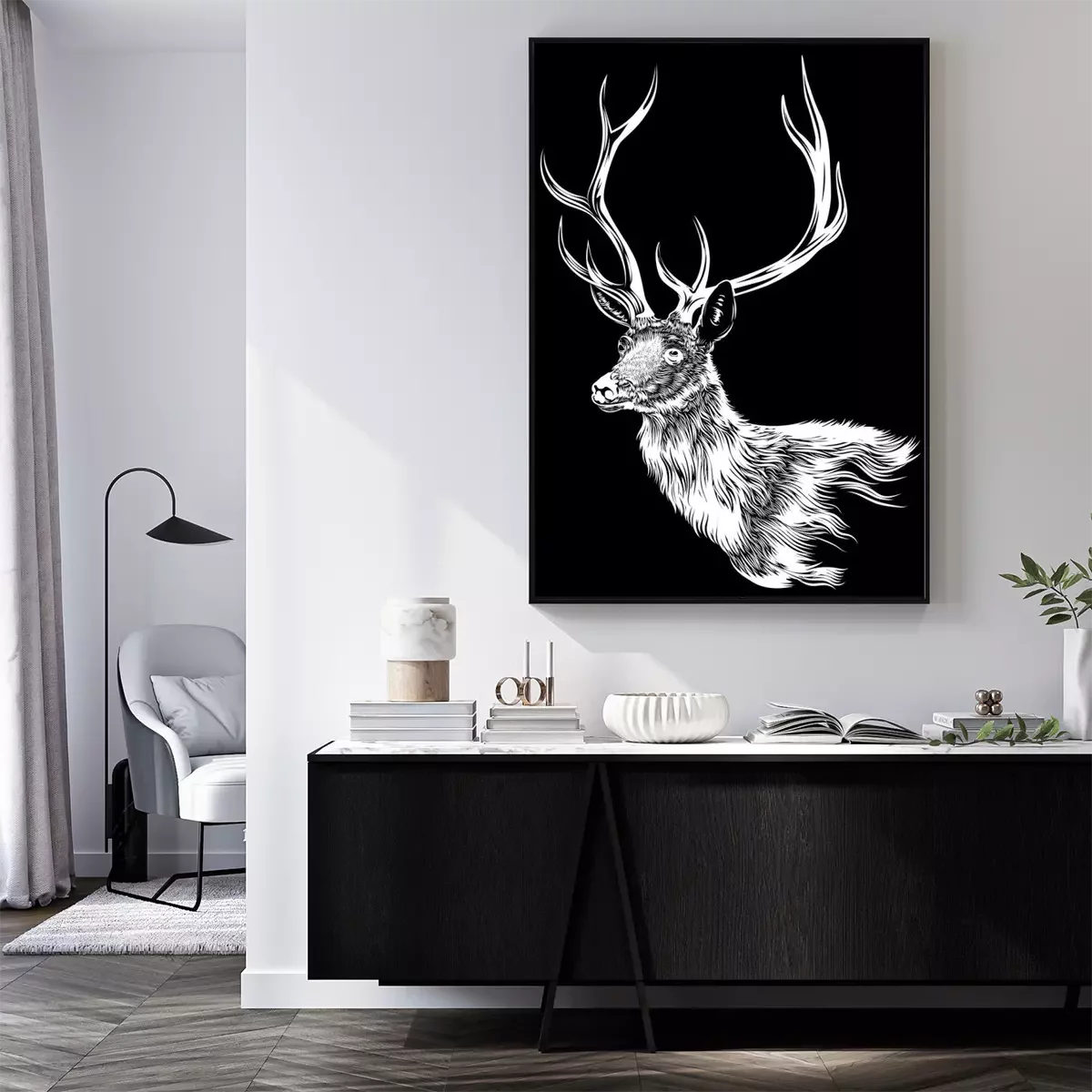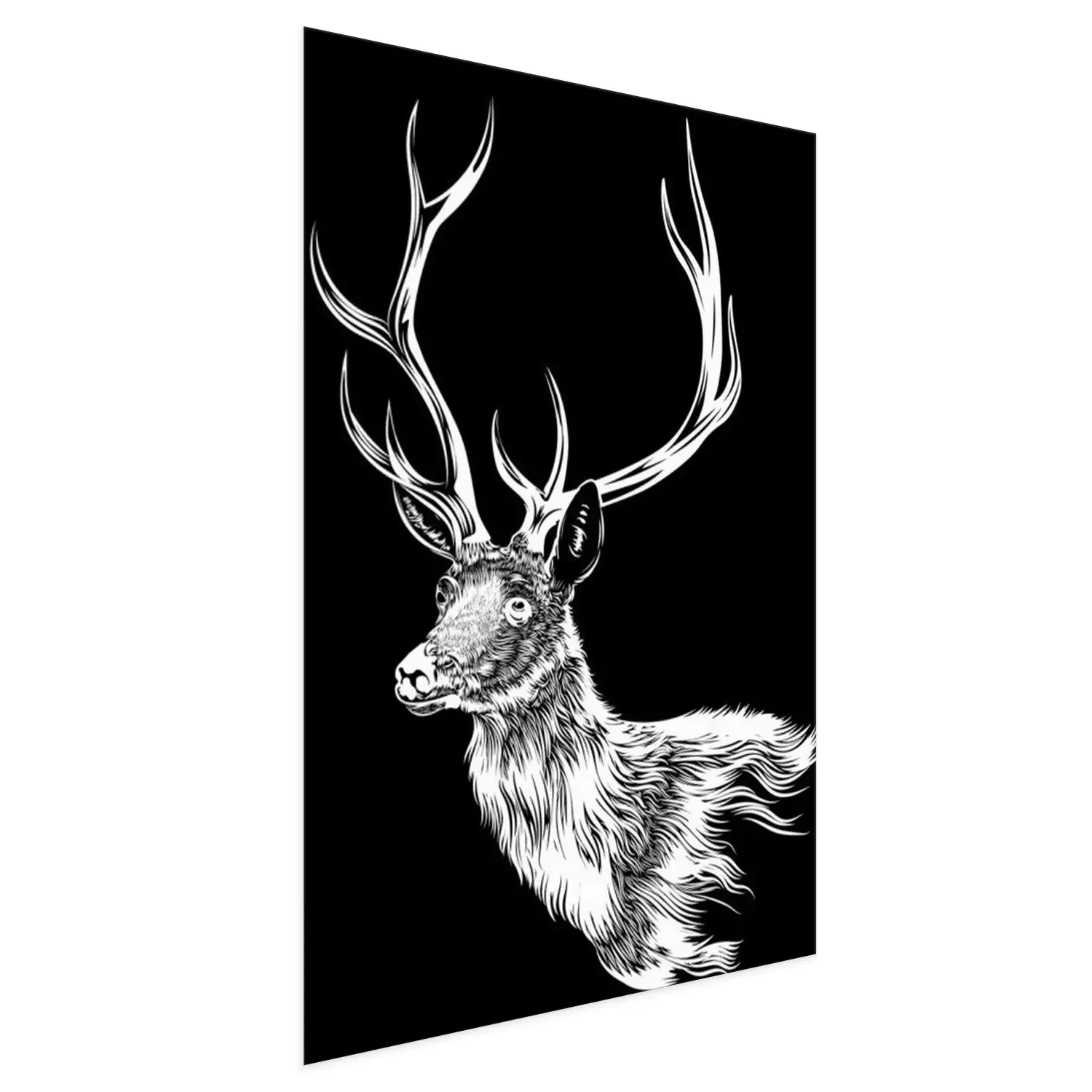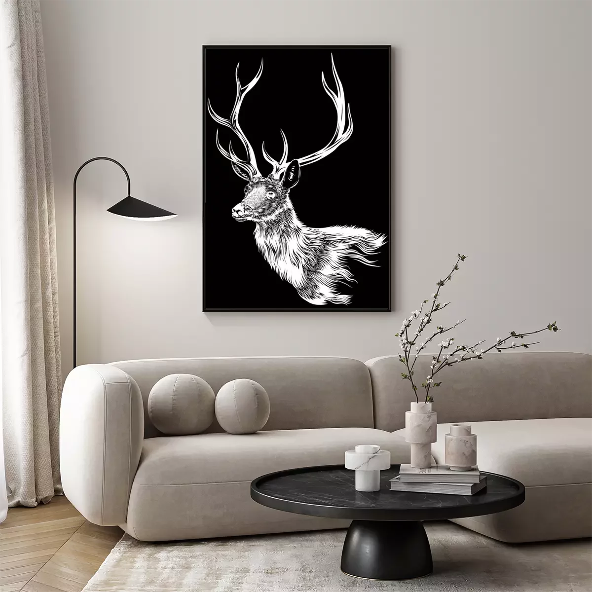Poster: Hirschkopf auf schwarzem Hintergrund