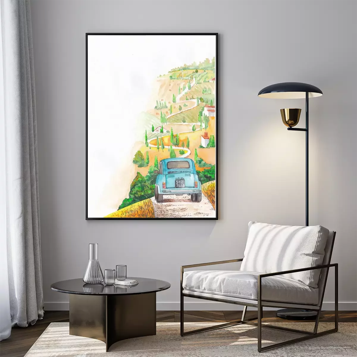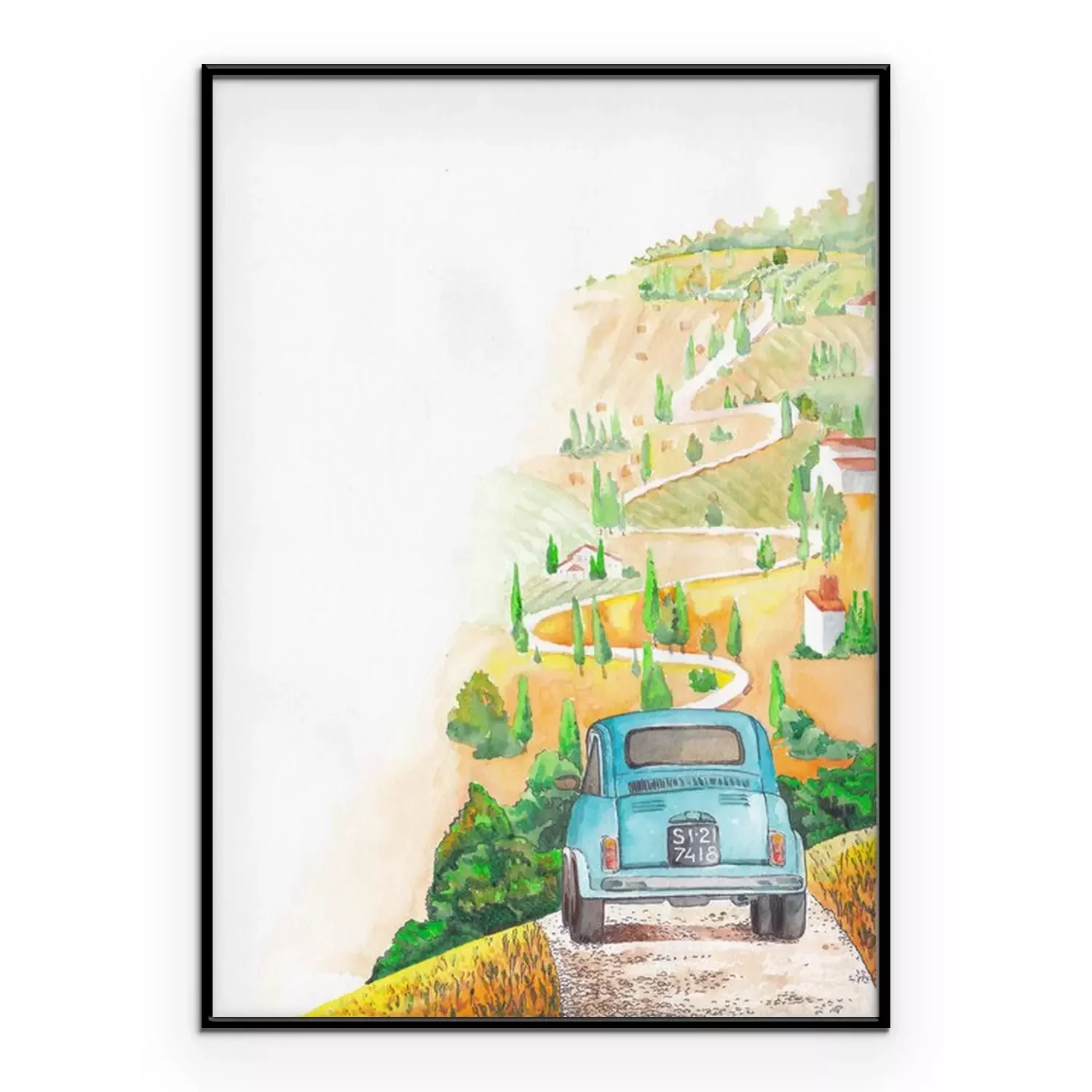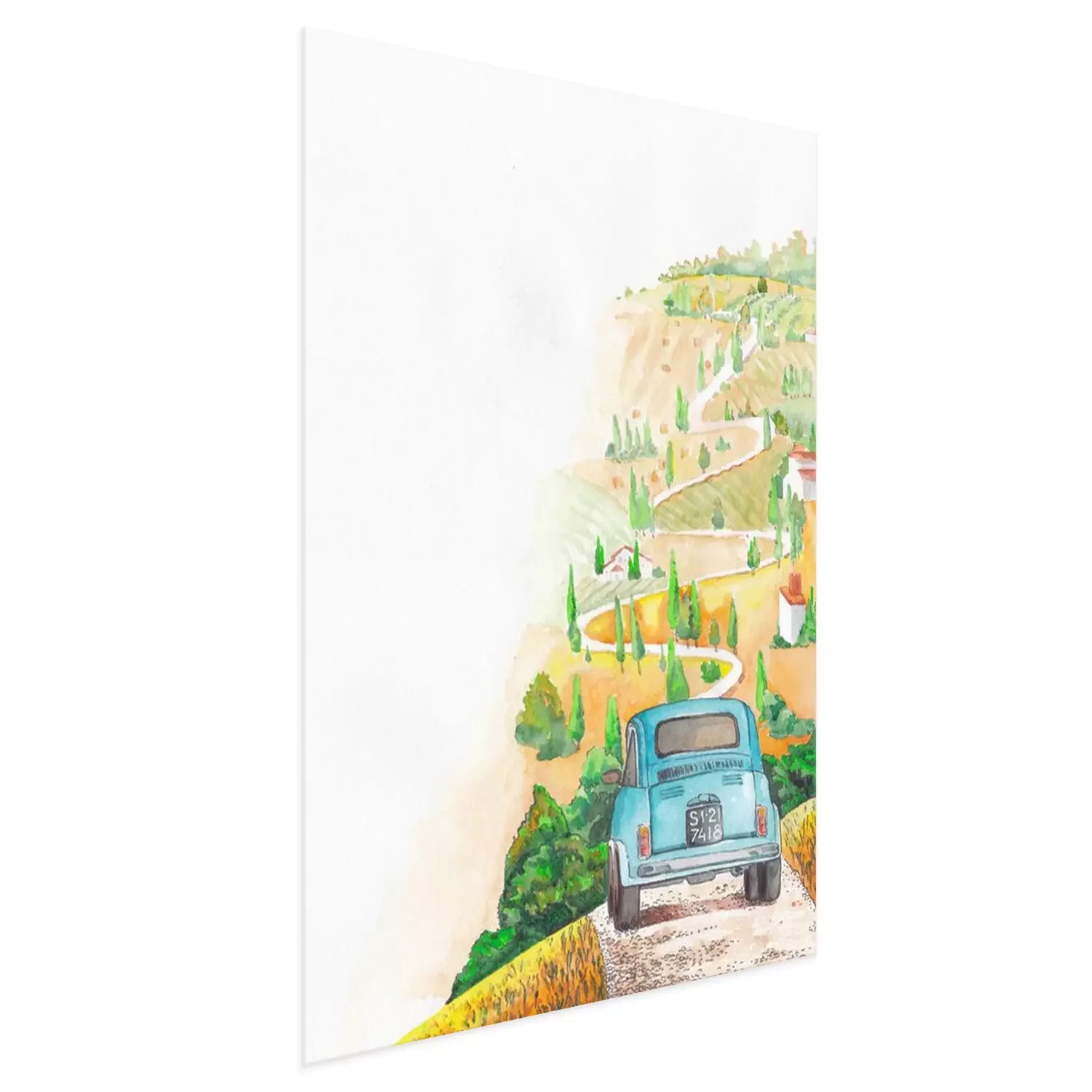 Poster: Historisches Auto auf dem Weg in der Toskana