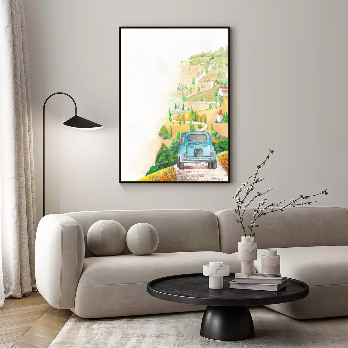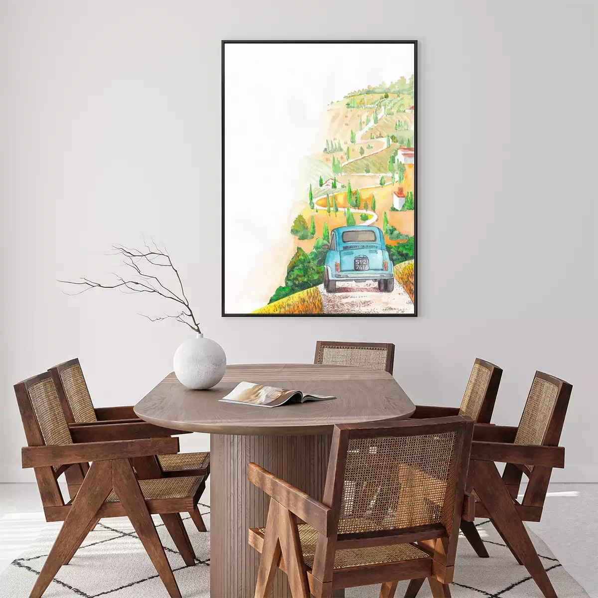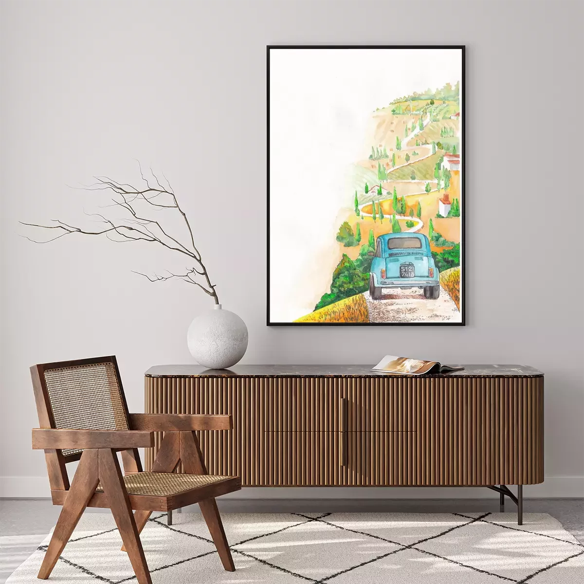 Poster: Historisches Auto auf dem Weg in der Toskana