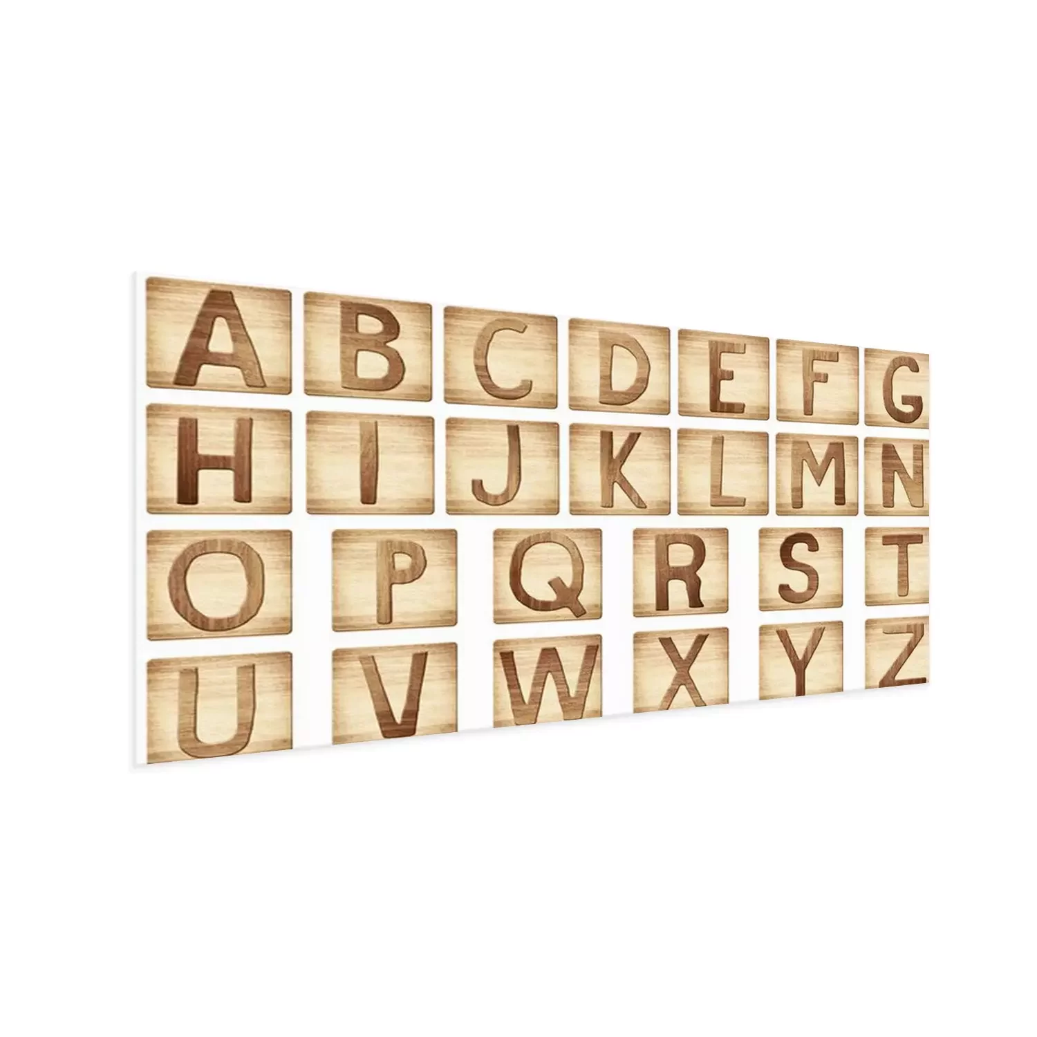Poster: Holzbausteine mit Buchstaben des Alphabets