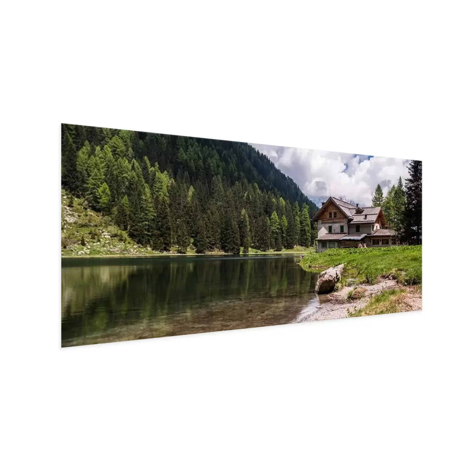 Poster: Hütte an einem See in den Bergen