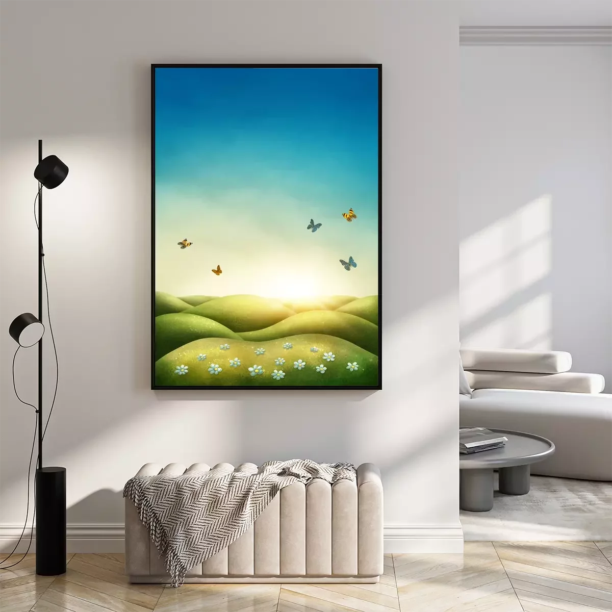 Poster: Idyllische Illustration mit Wiese