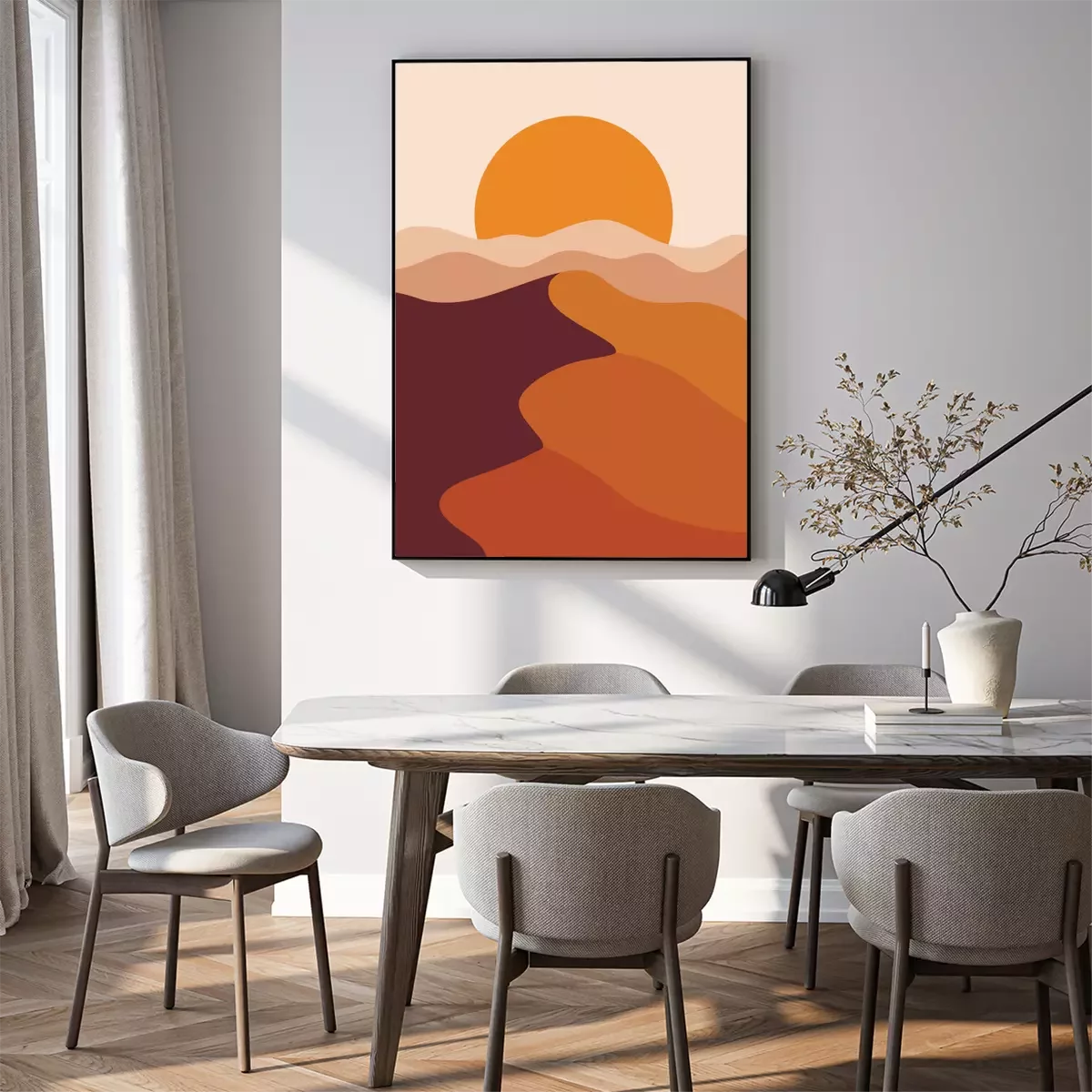 Poster: Illustration des Sonnenaufgangs in der Wüste