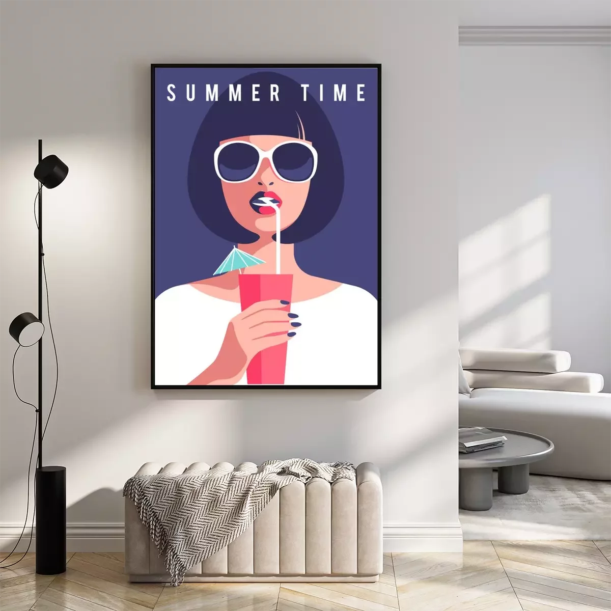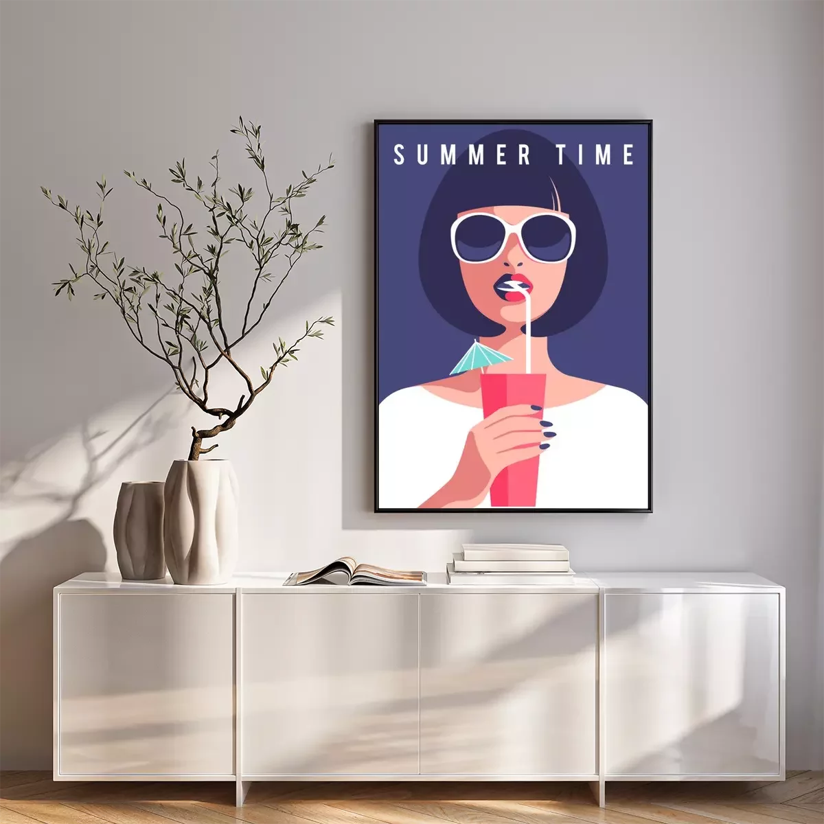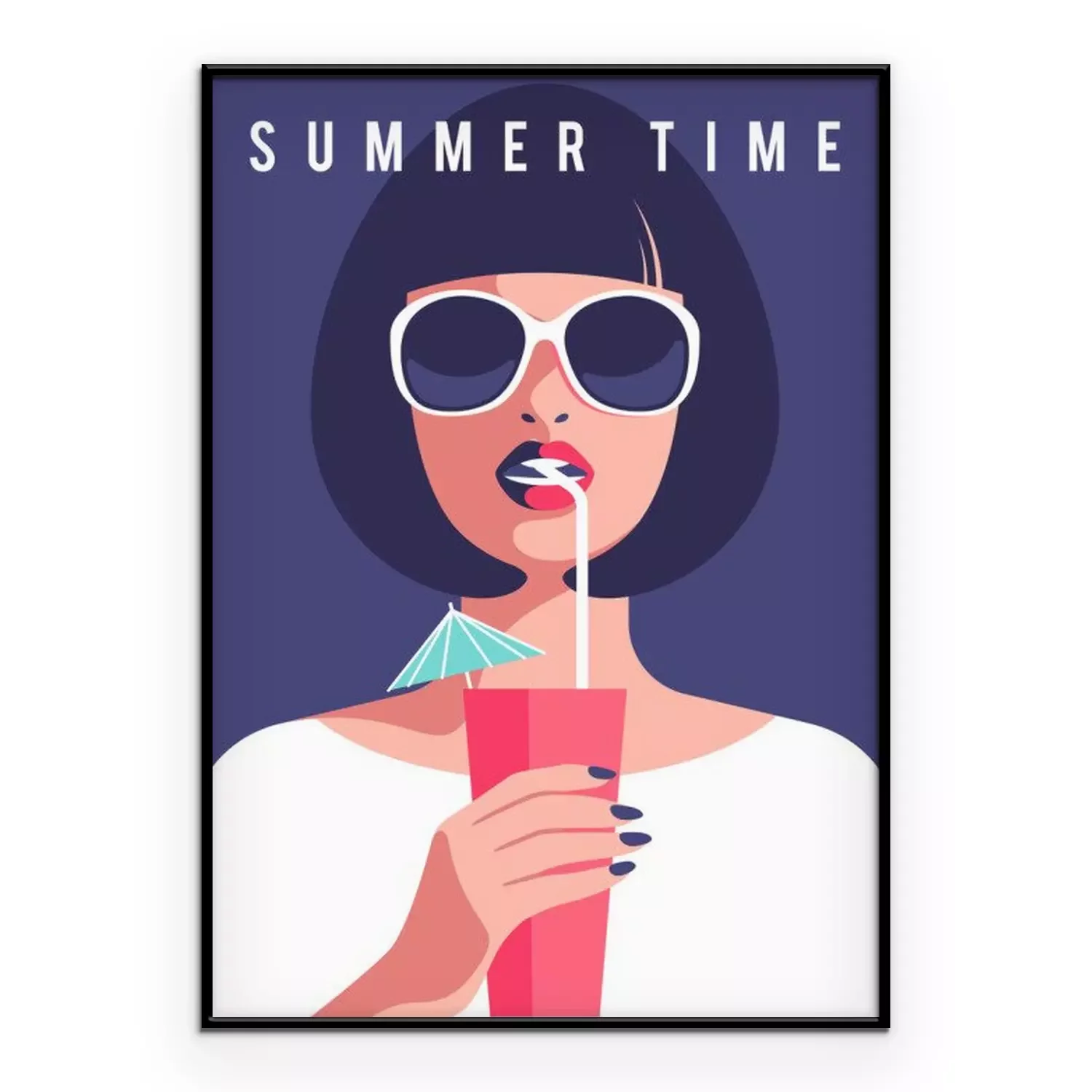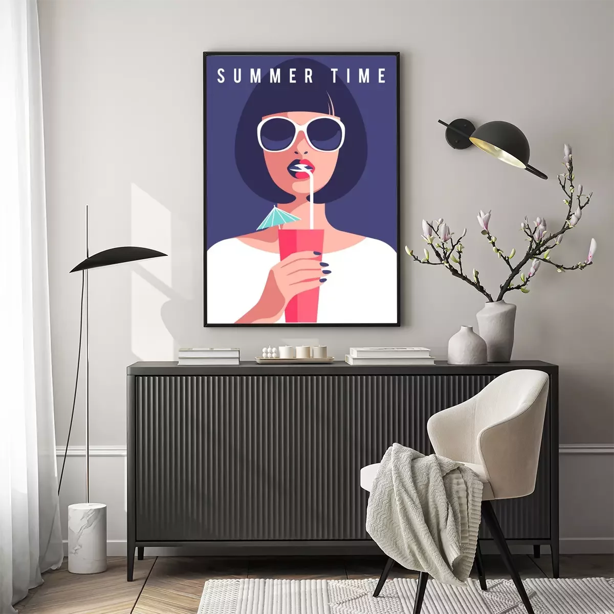 Poster: Illustration einer Retro-Frau mit einem Getränk