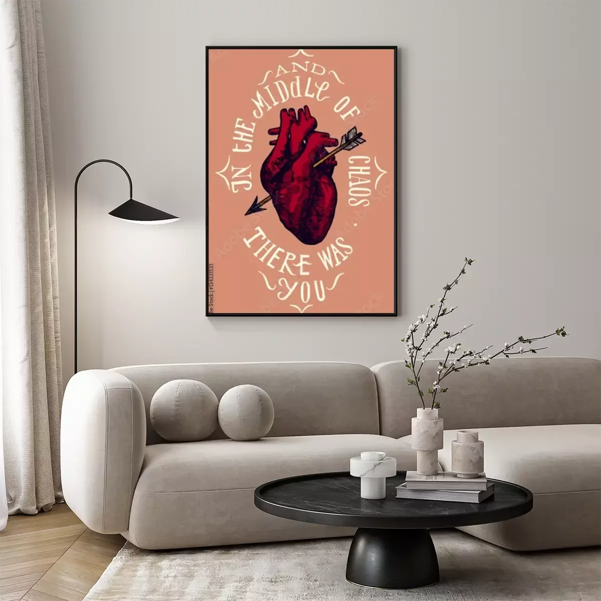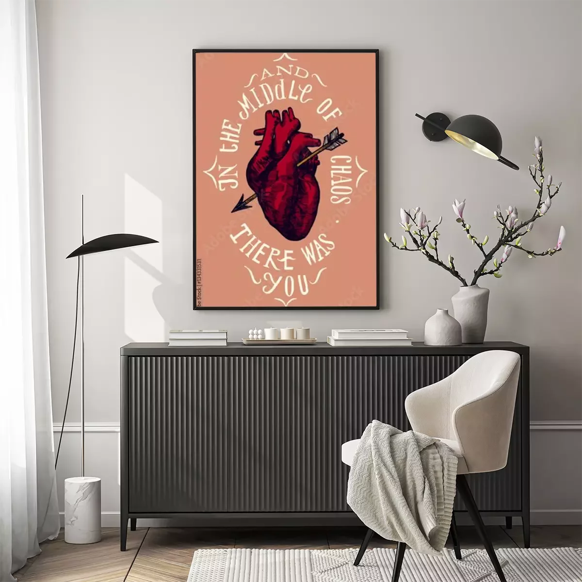 Poster: Illustration eines Herzens und weißer Schriftzug