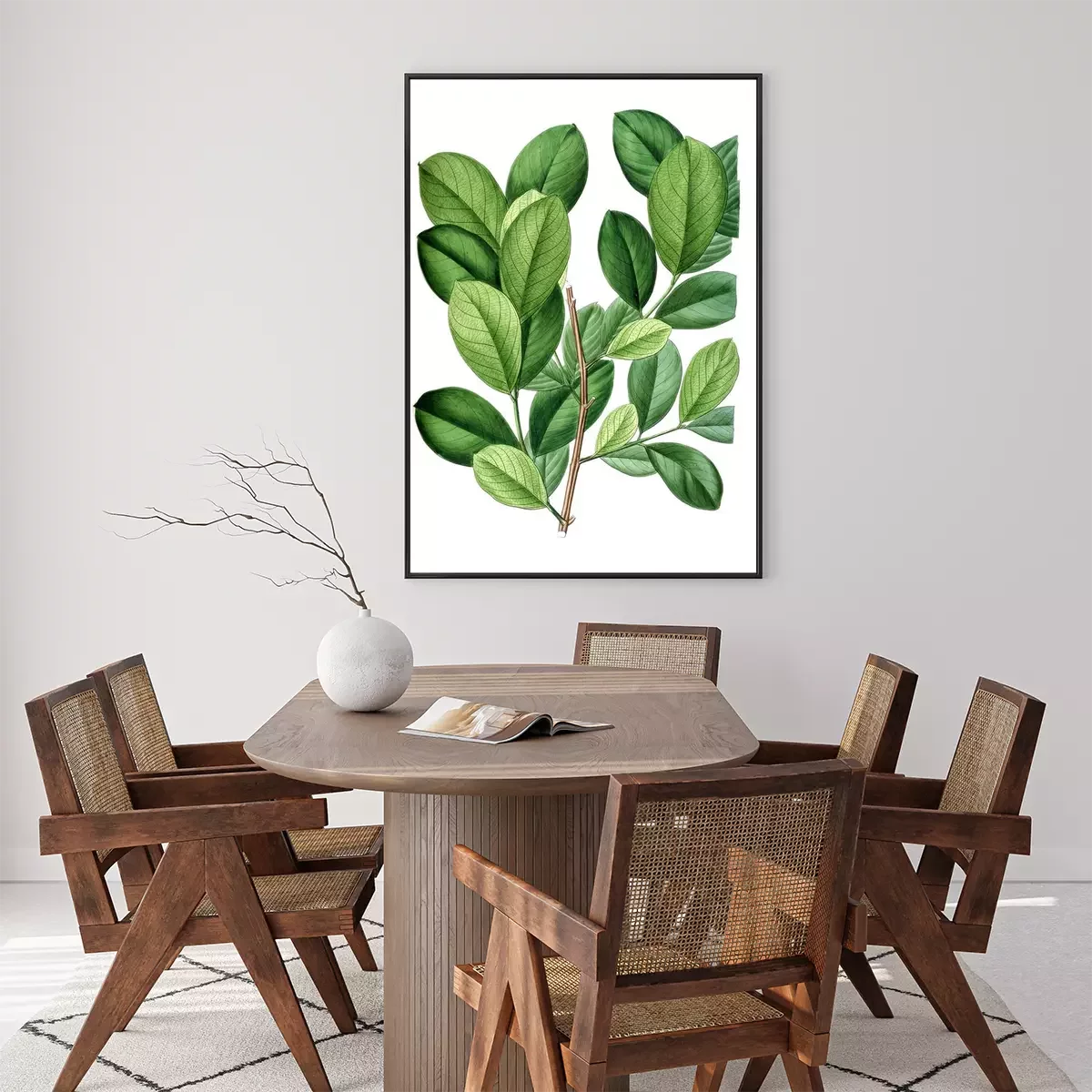 Dunkelgrüne Blätter auf einem braunen Zweig