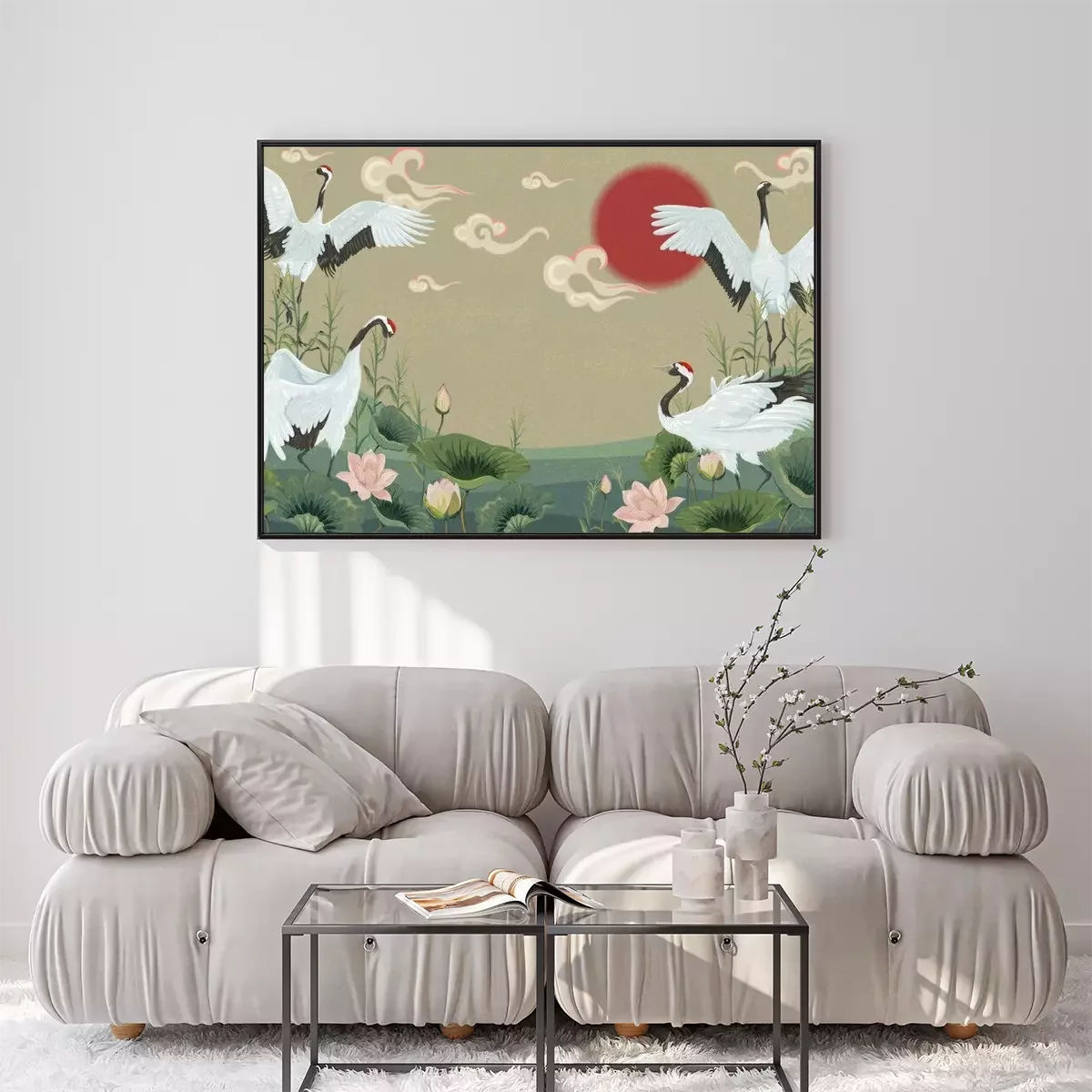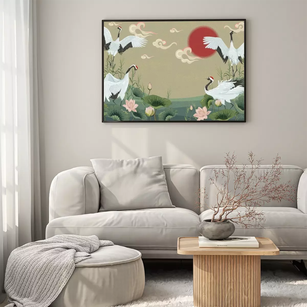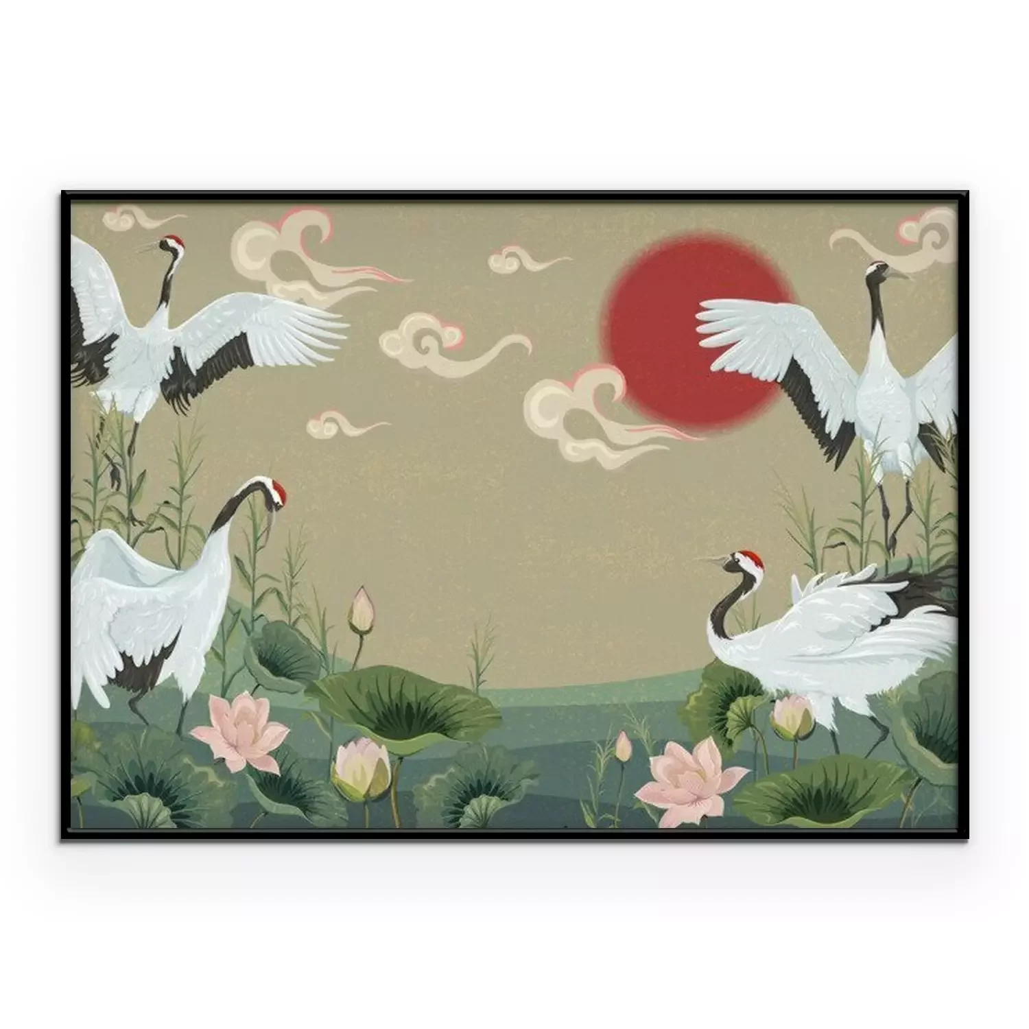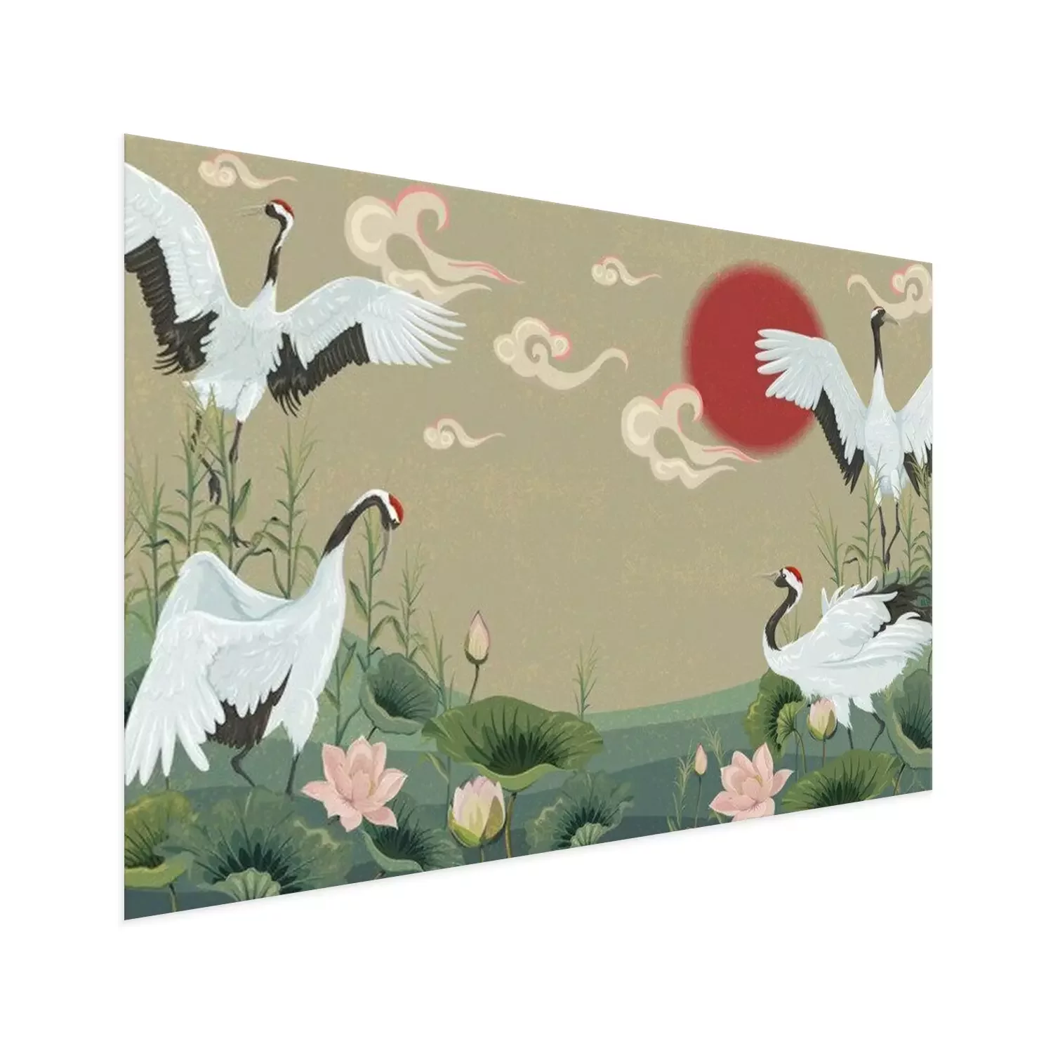 Orientalische Landschaft mit KranichenProblemlose Lieferung durch vertrauenswürdige Spediteure