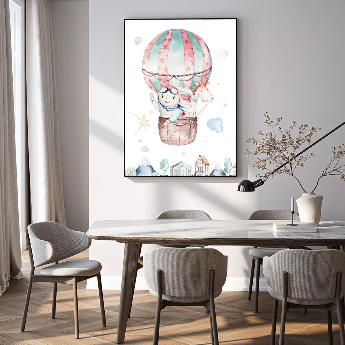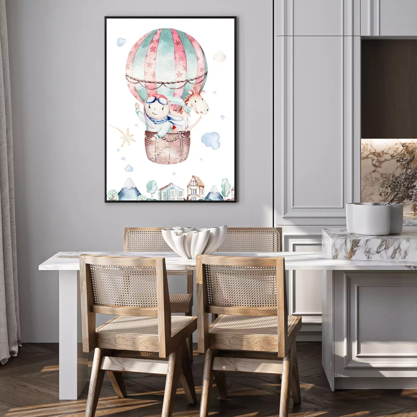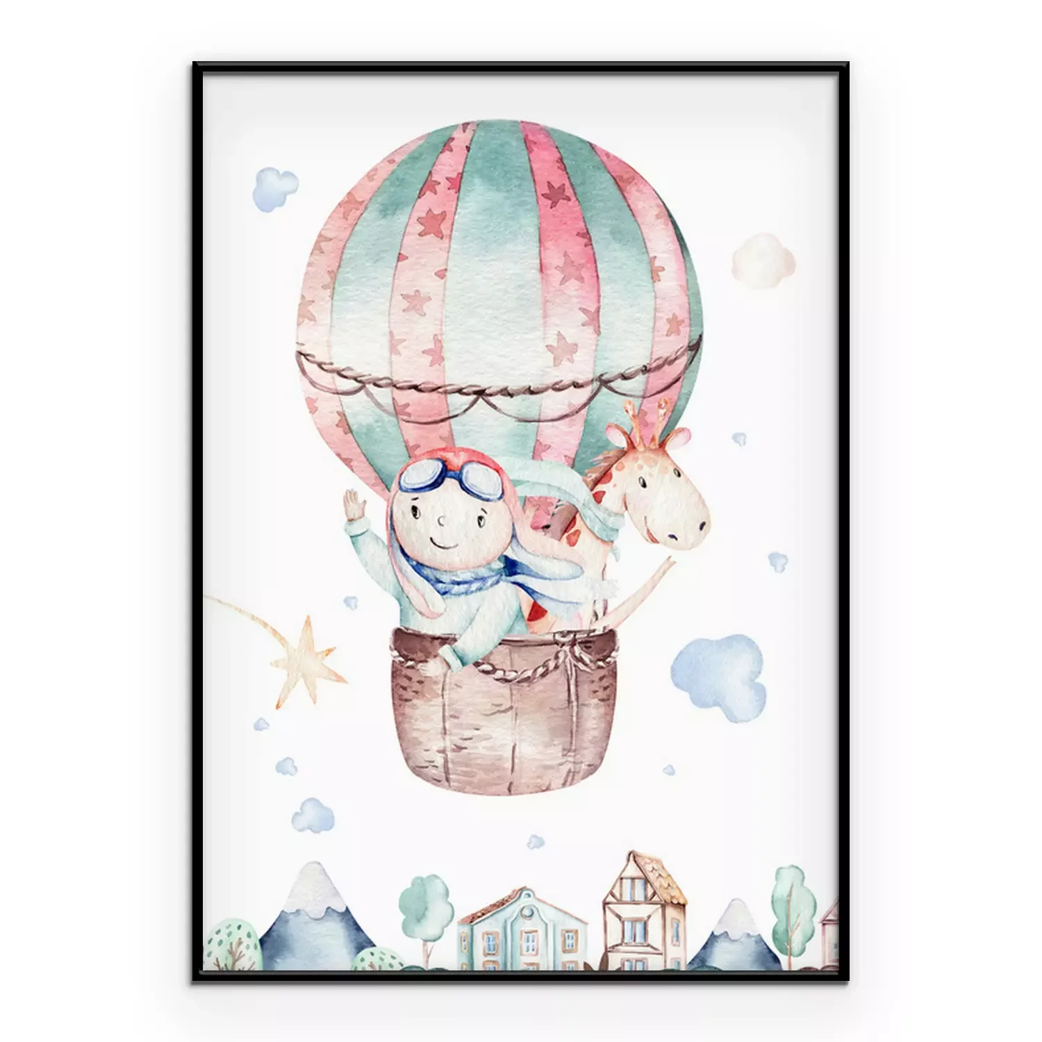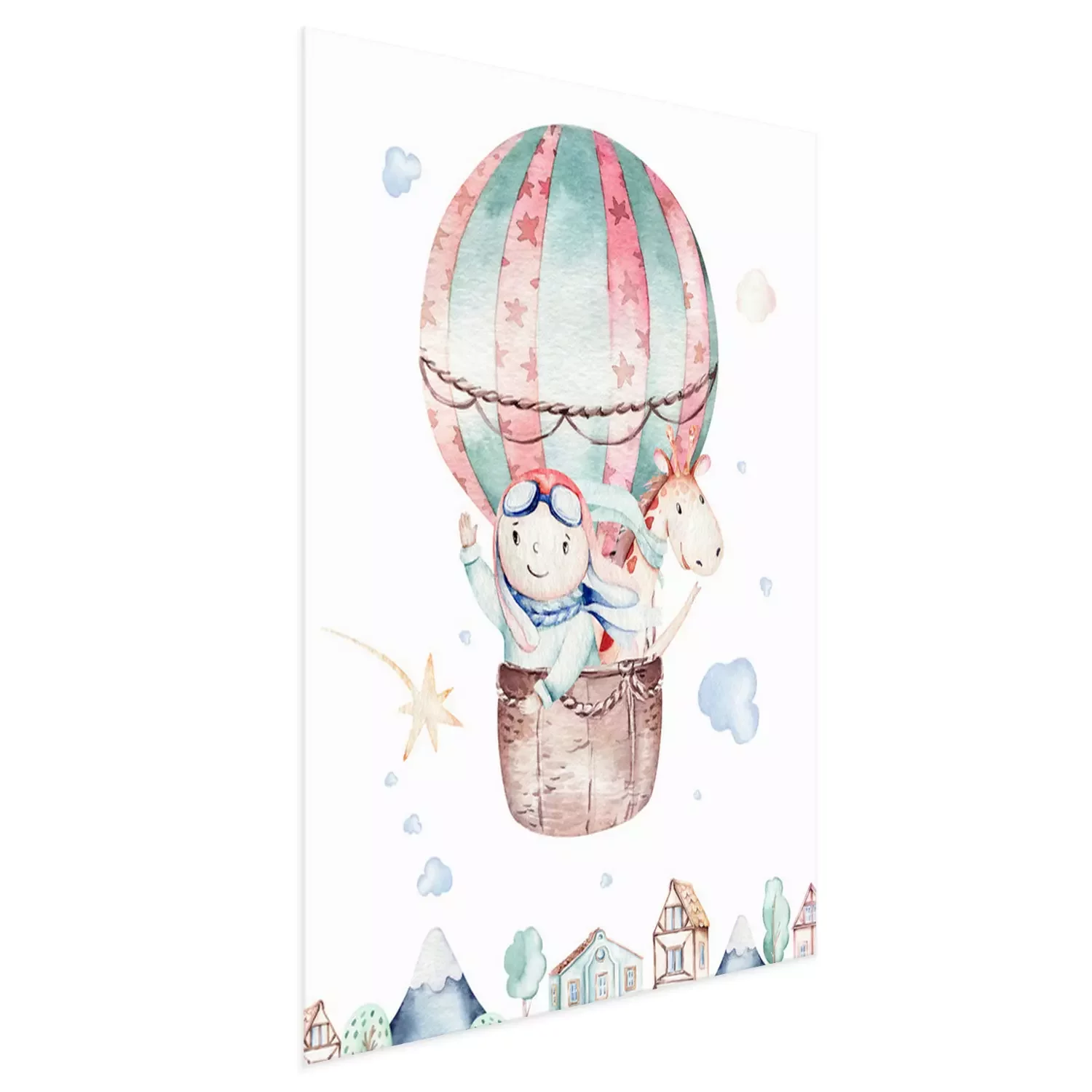 Poster: Junge und Giraffe in einem fliegenden Ballon