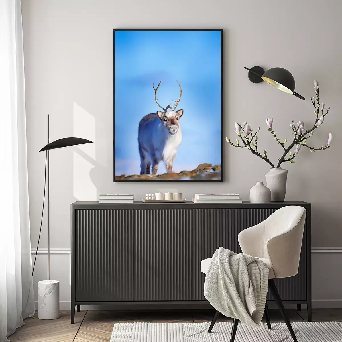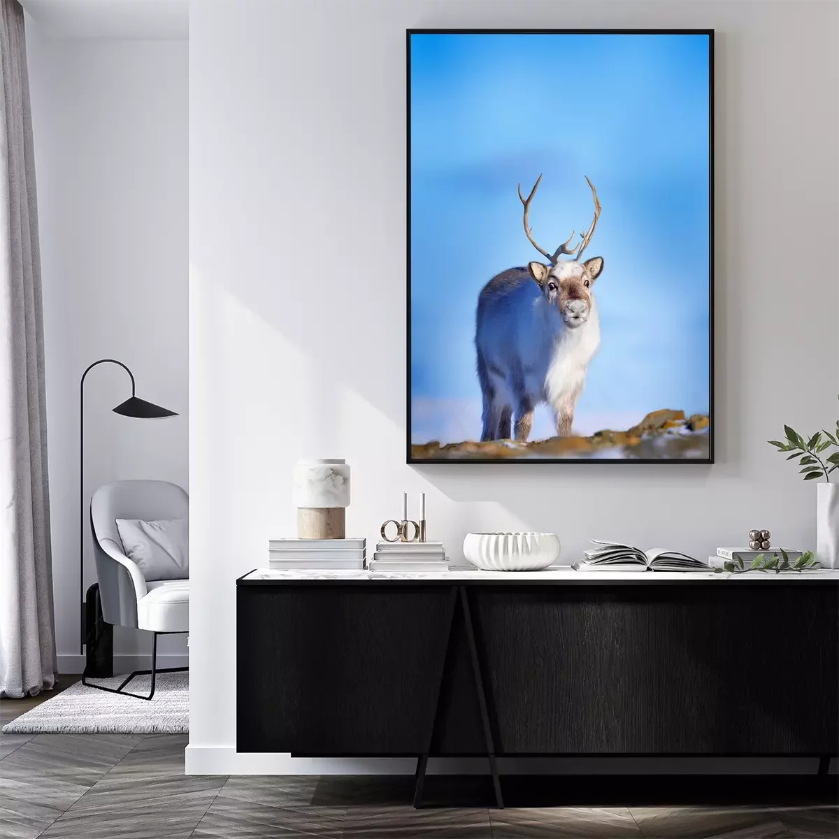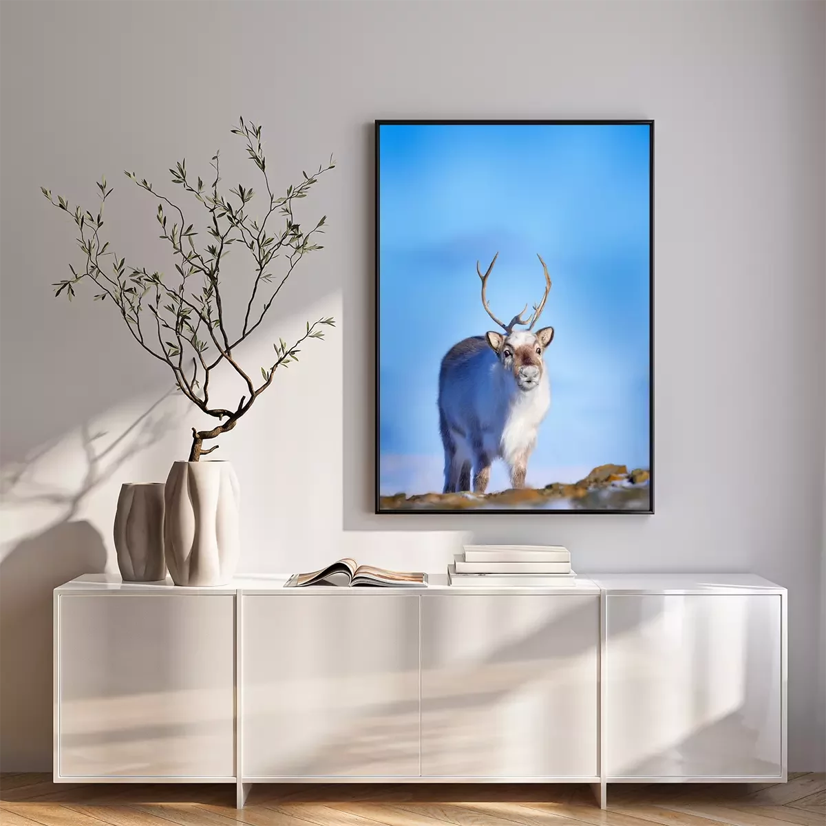 Poster: Junges Rentier inmitten von wilder Natur