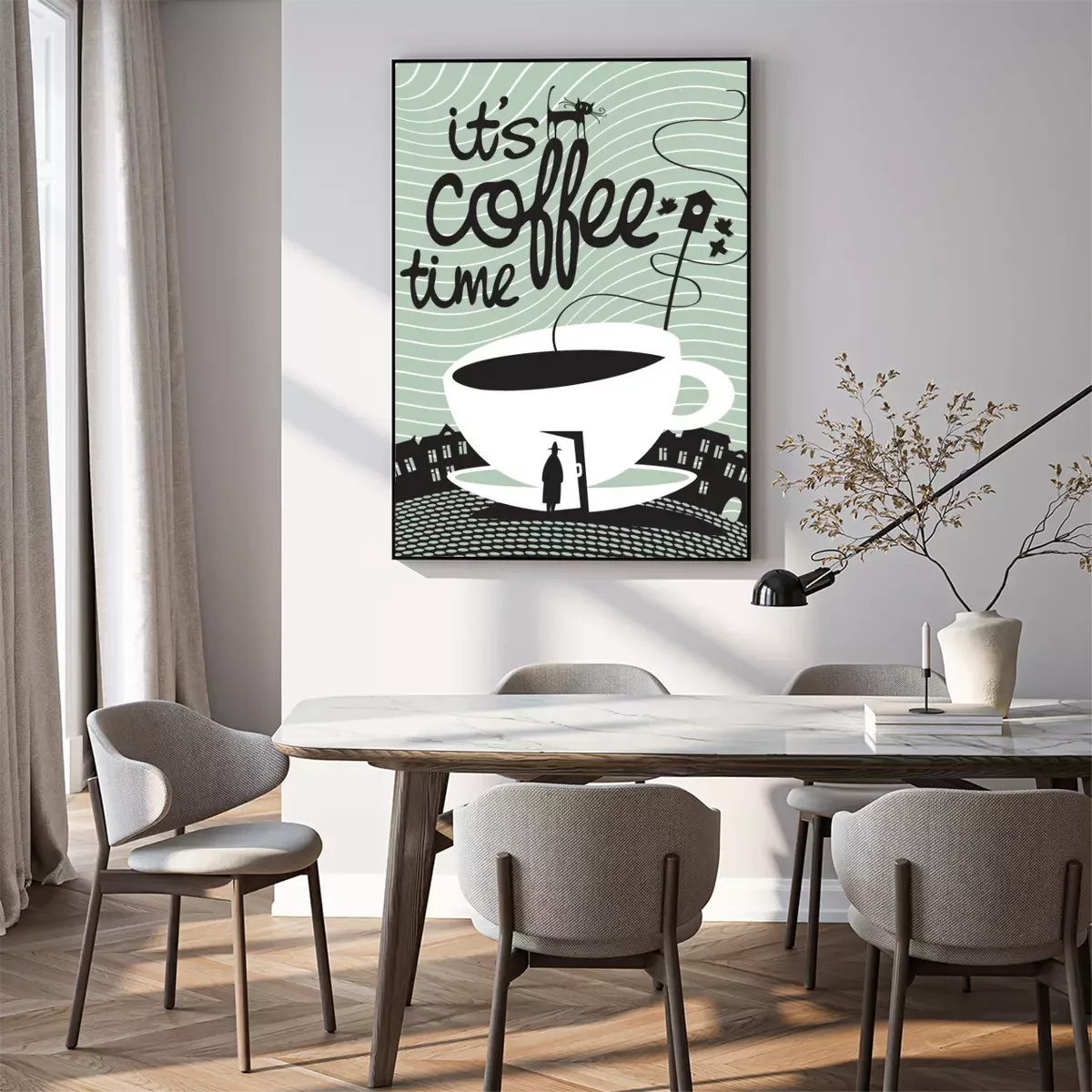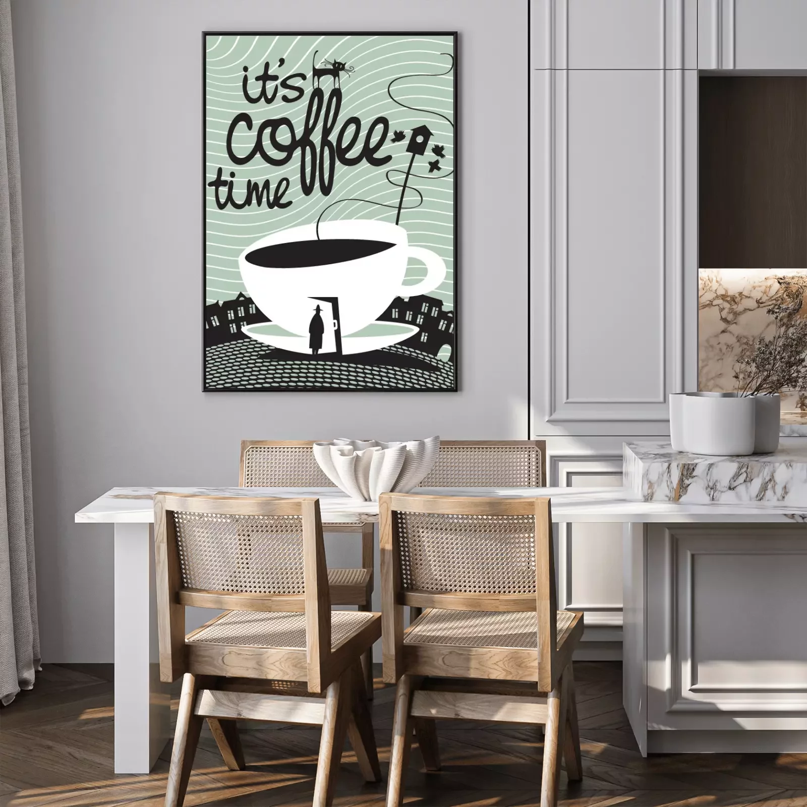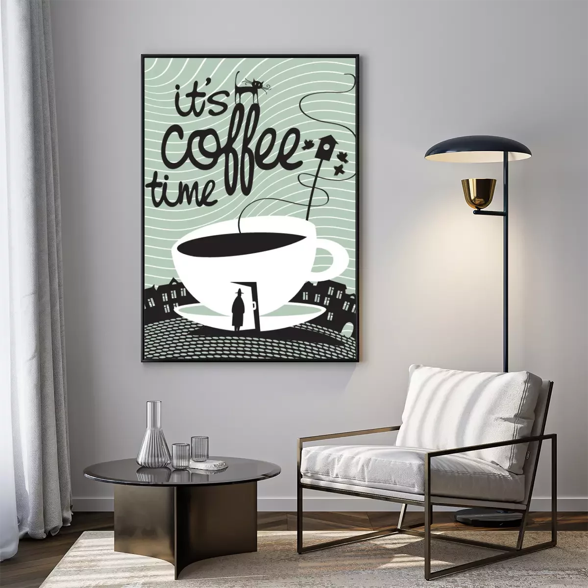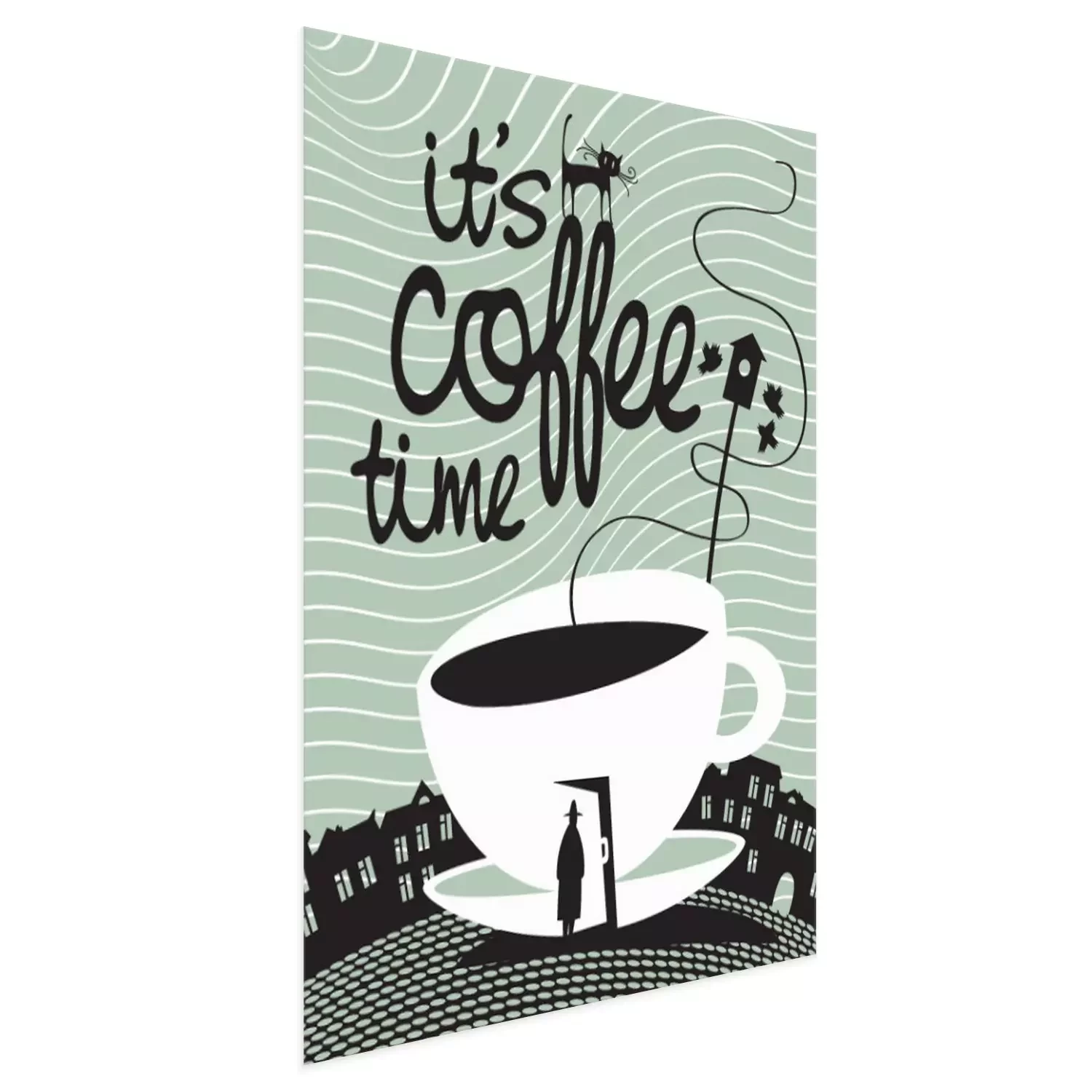 Poster: Kaffeemotiv auf geheimnisvollem Hintergrund