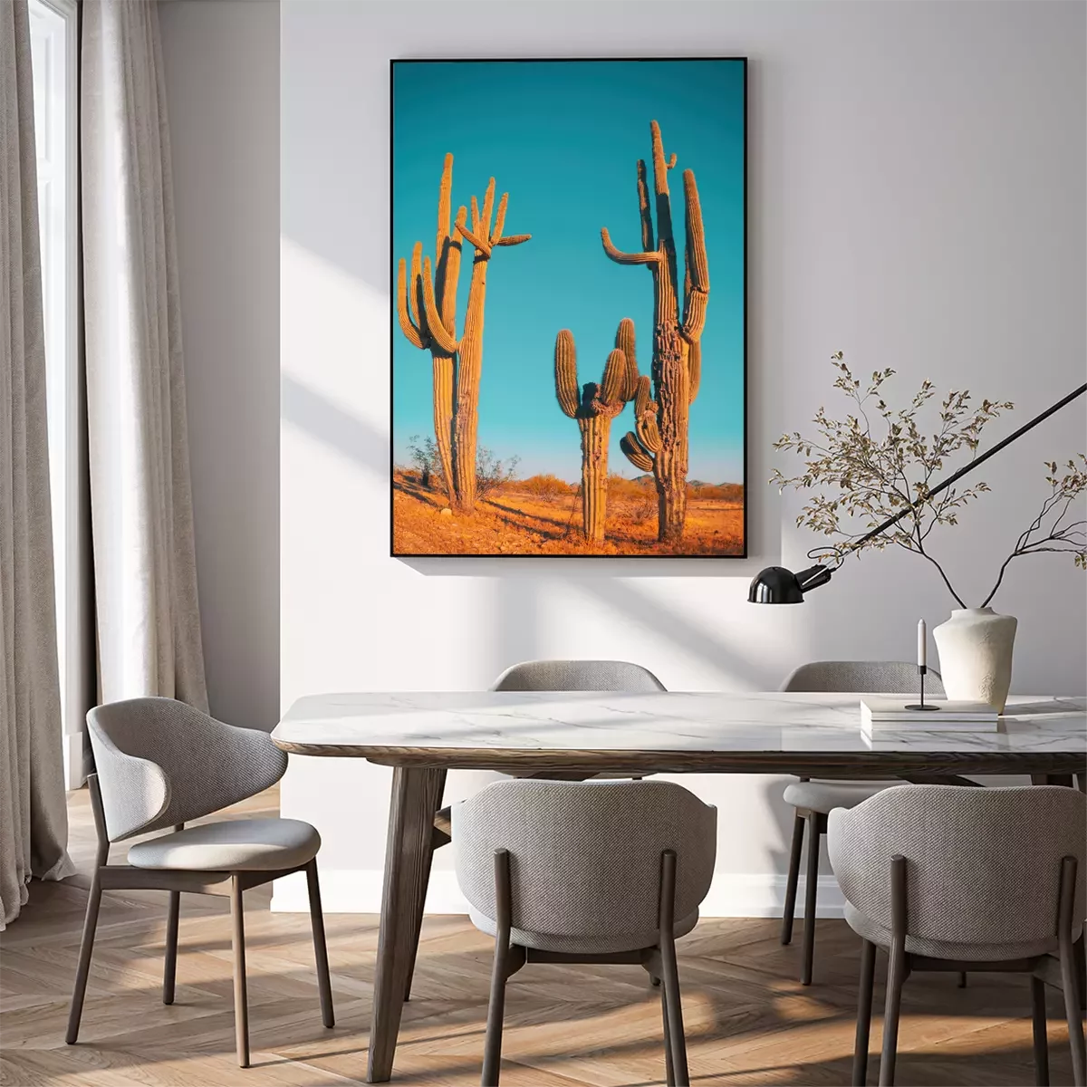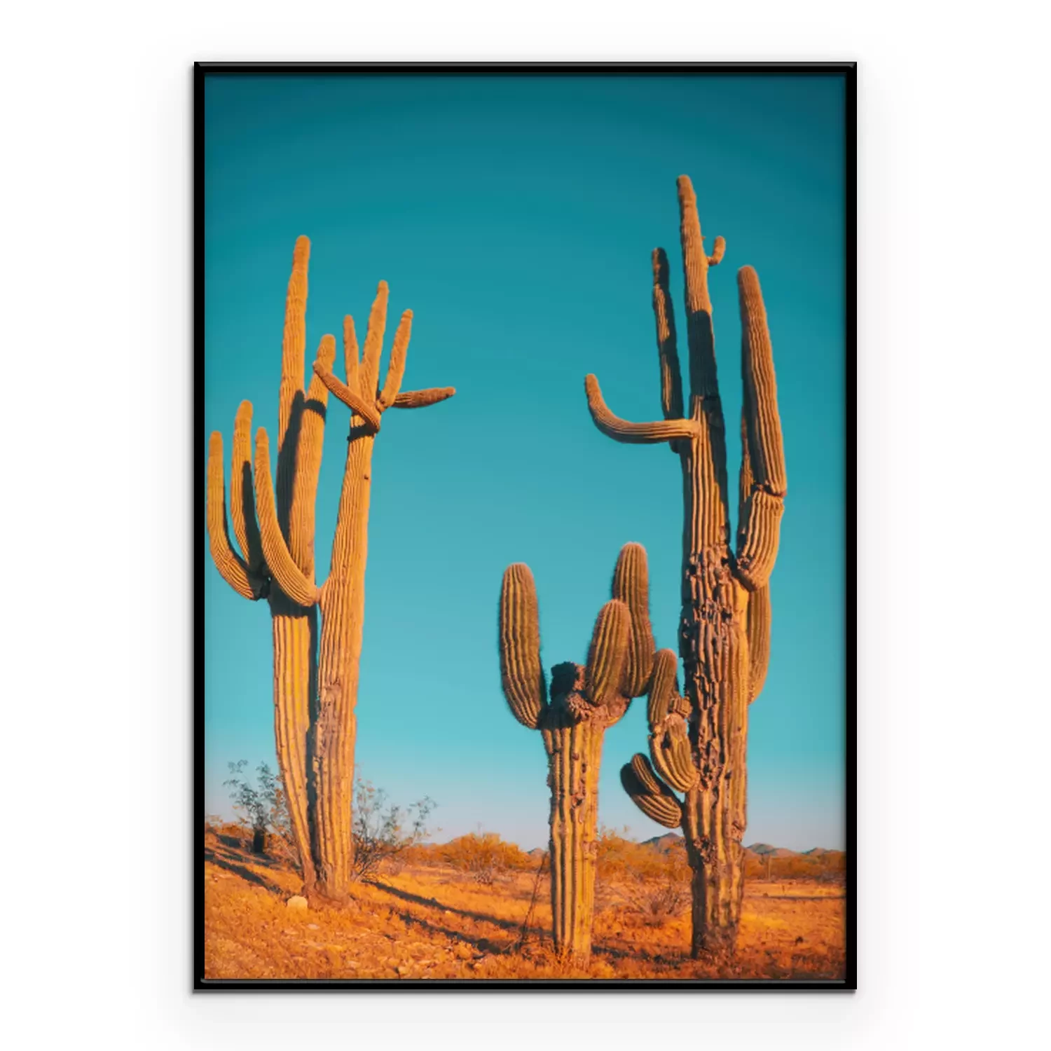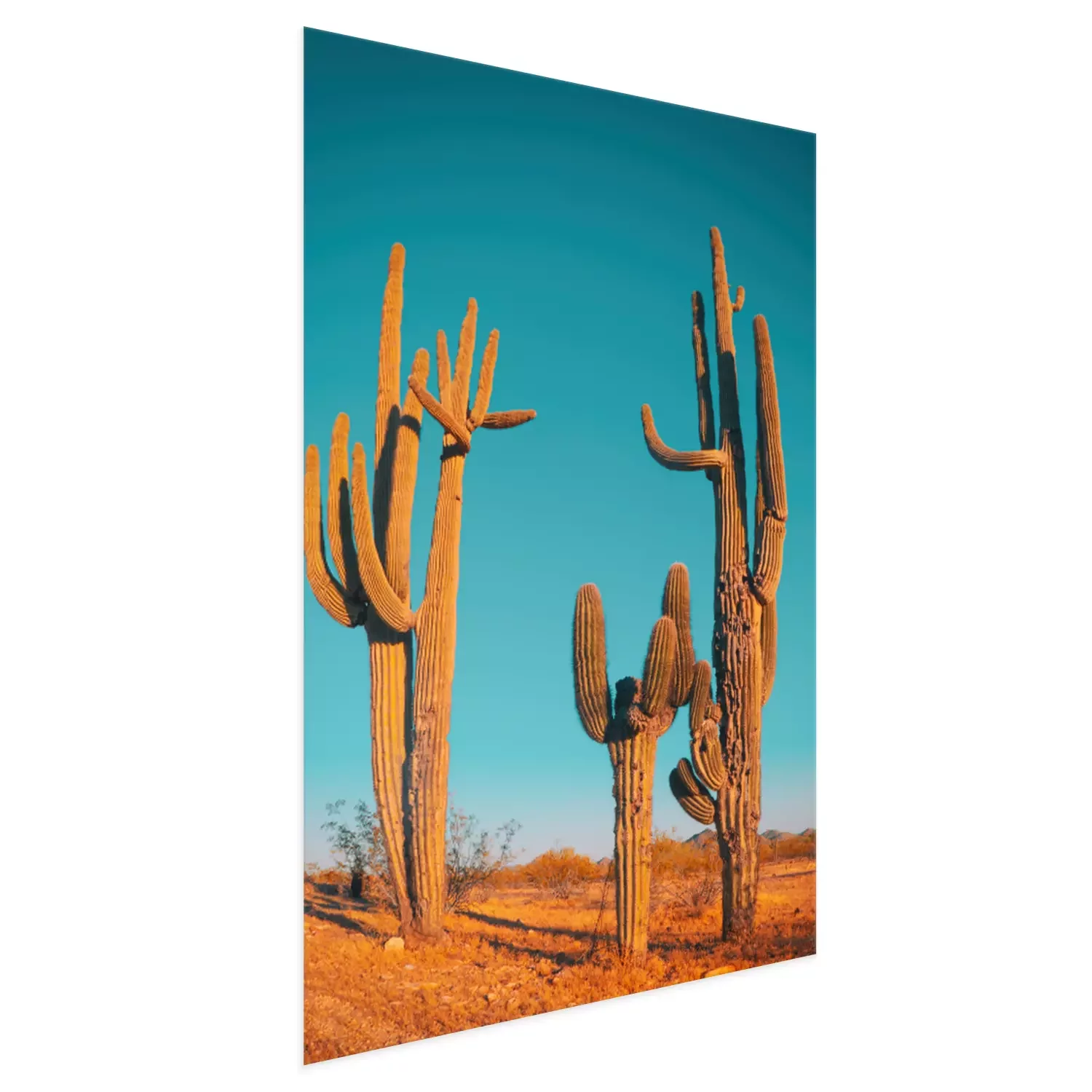 Poster: Kakteen in einer Wüstenlandschaft bei Sonnenuntergang