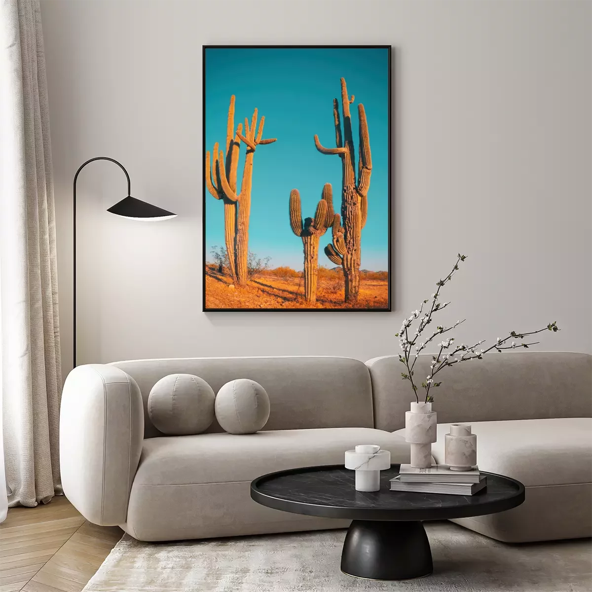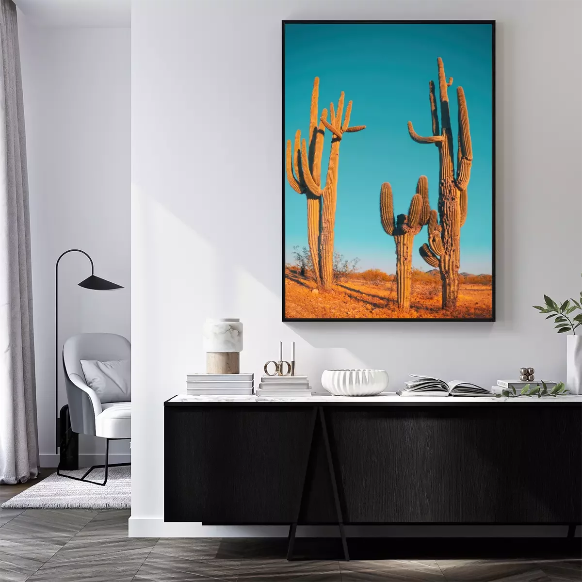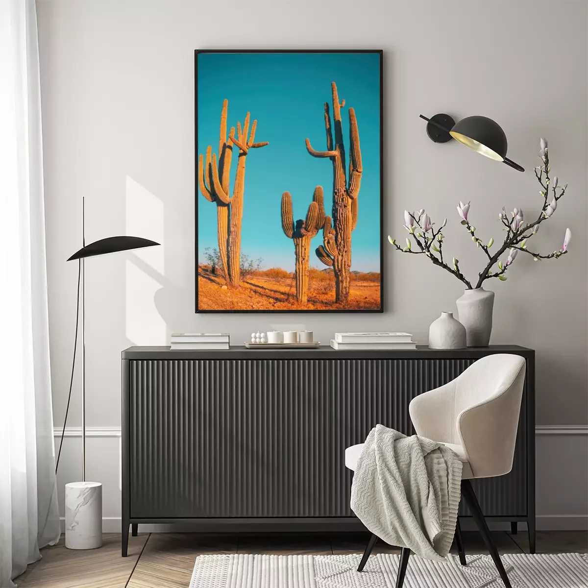 Poster: Kakteen in einer Wüstenlandschaft bei Sonnenuntergang