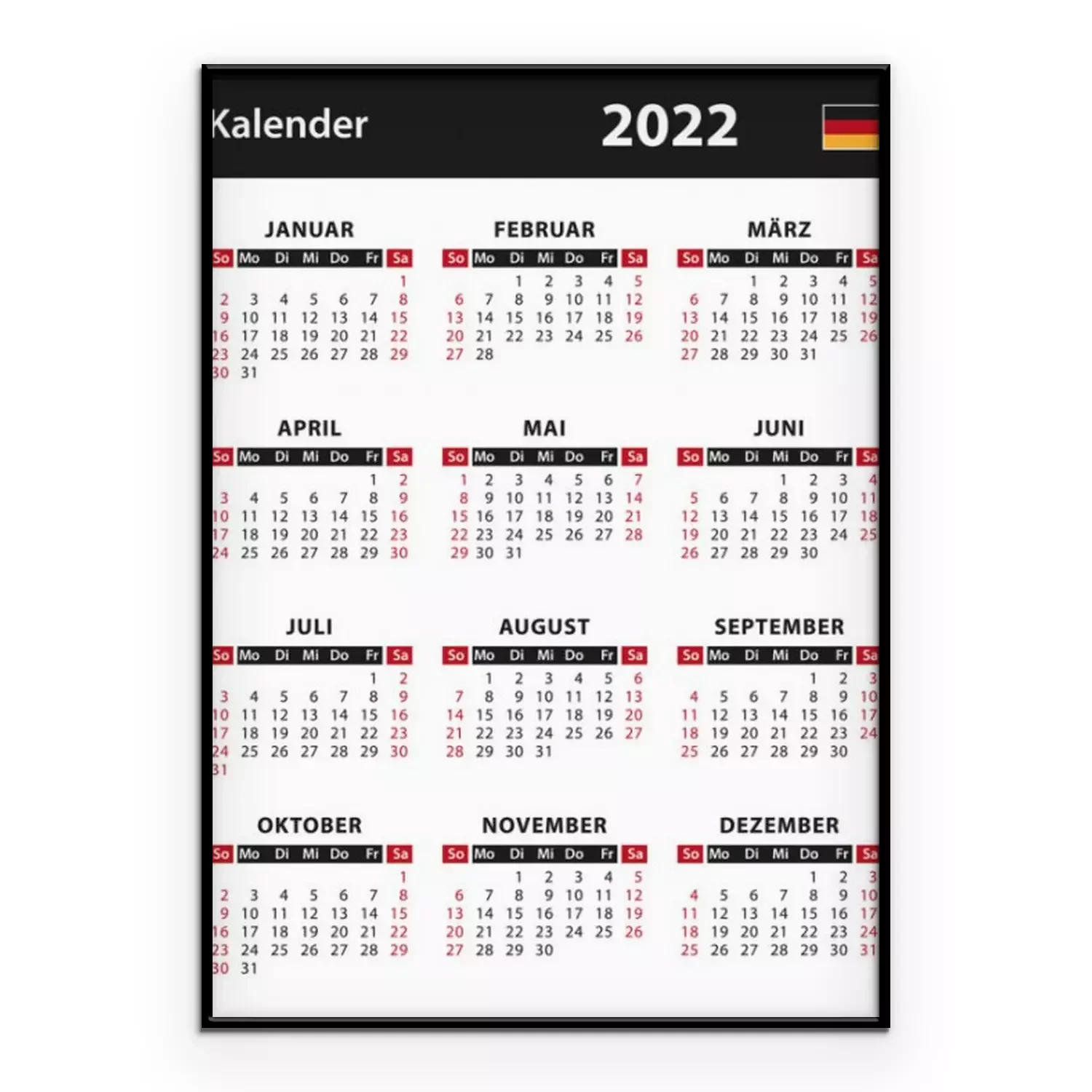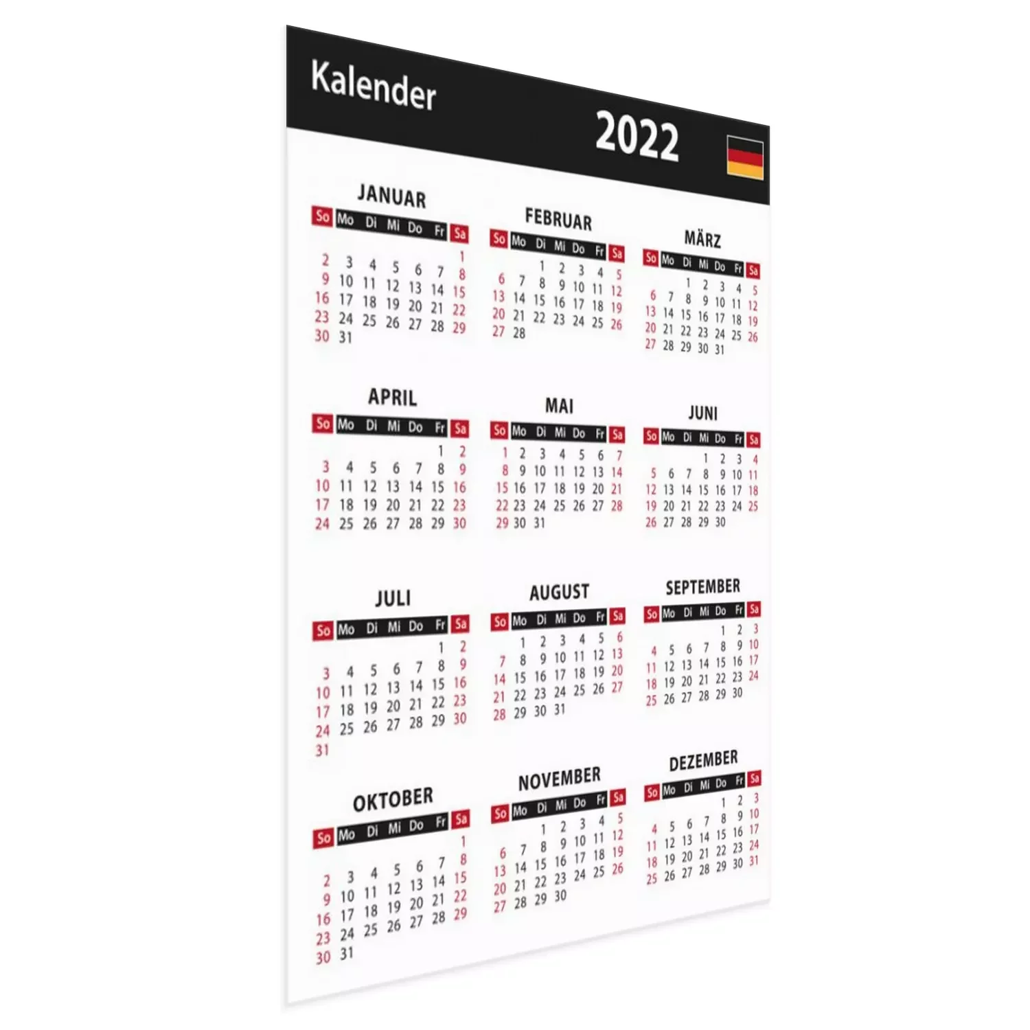 Poster Kalender mit deutscher Flagge