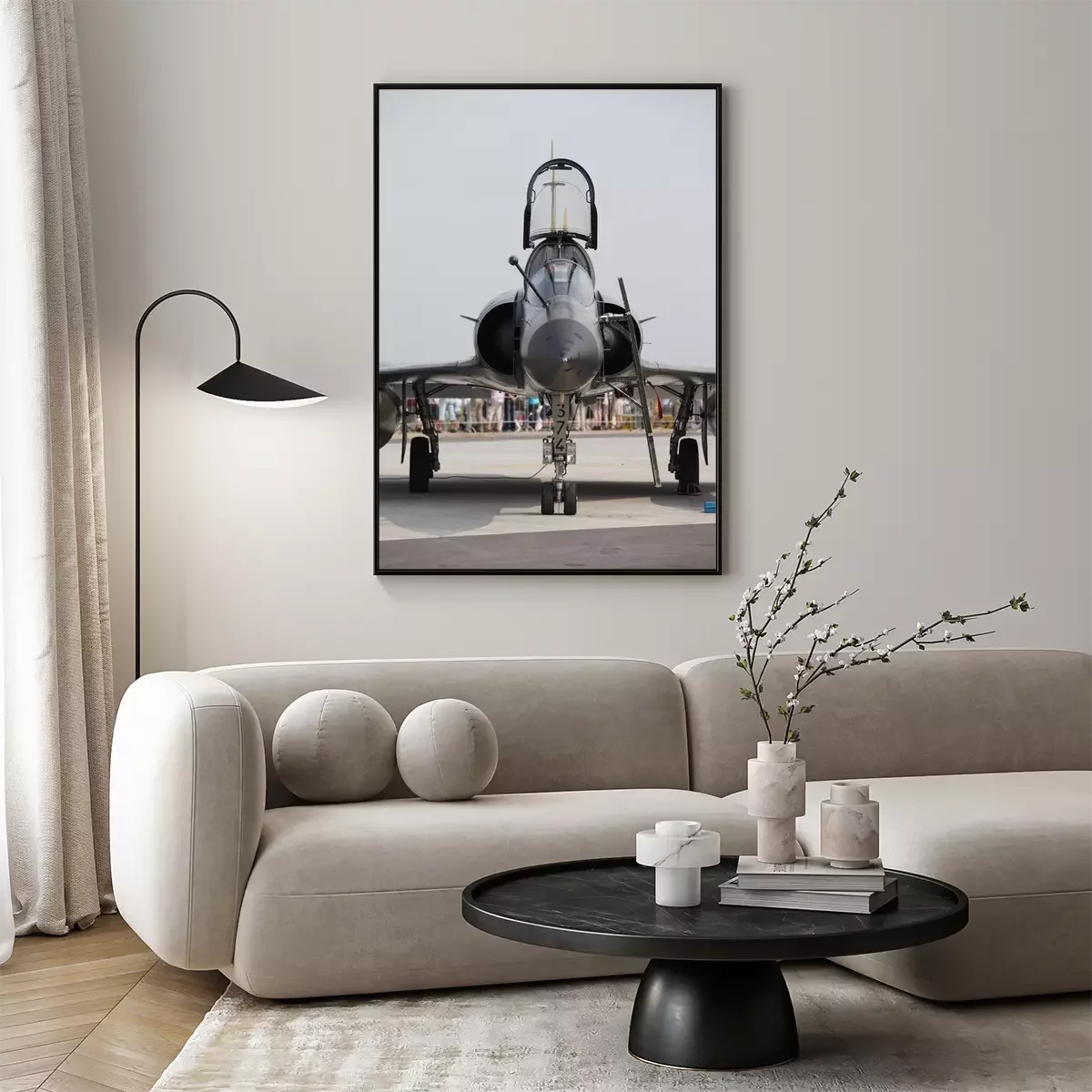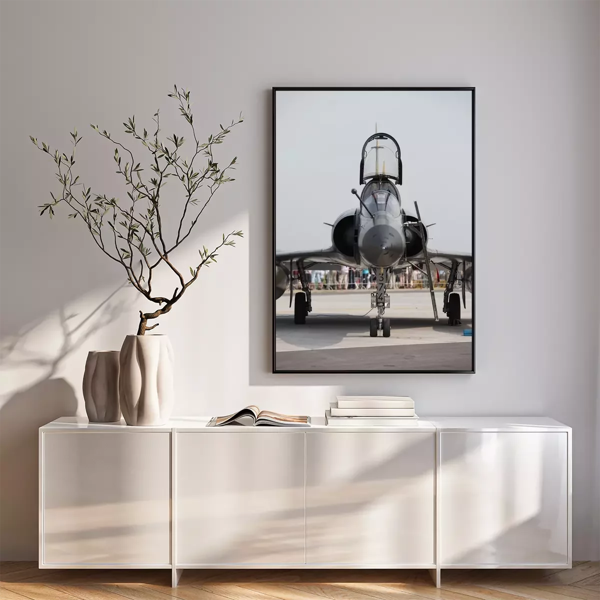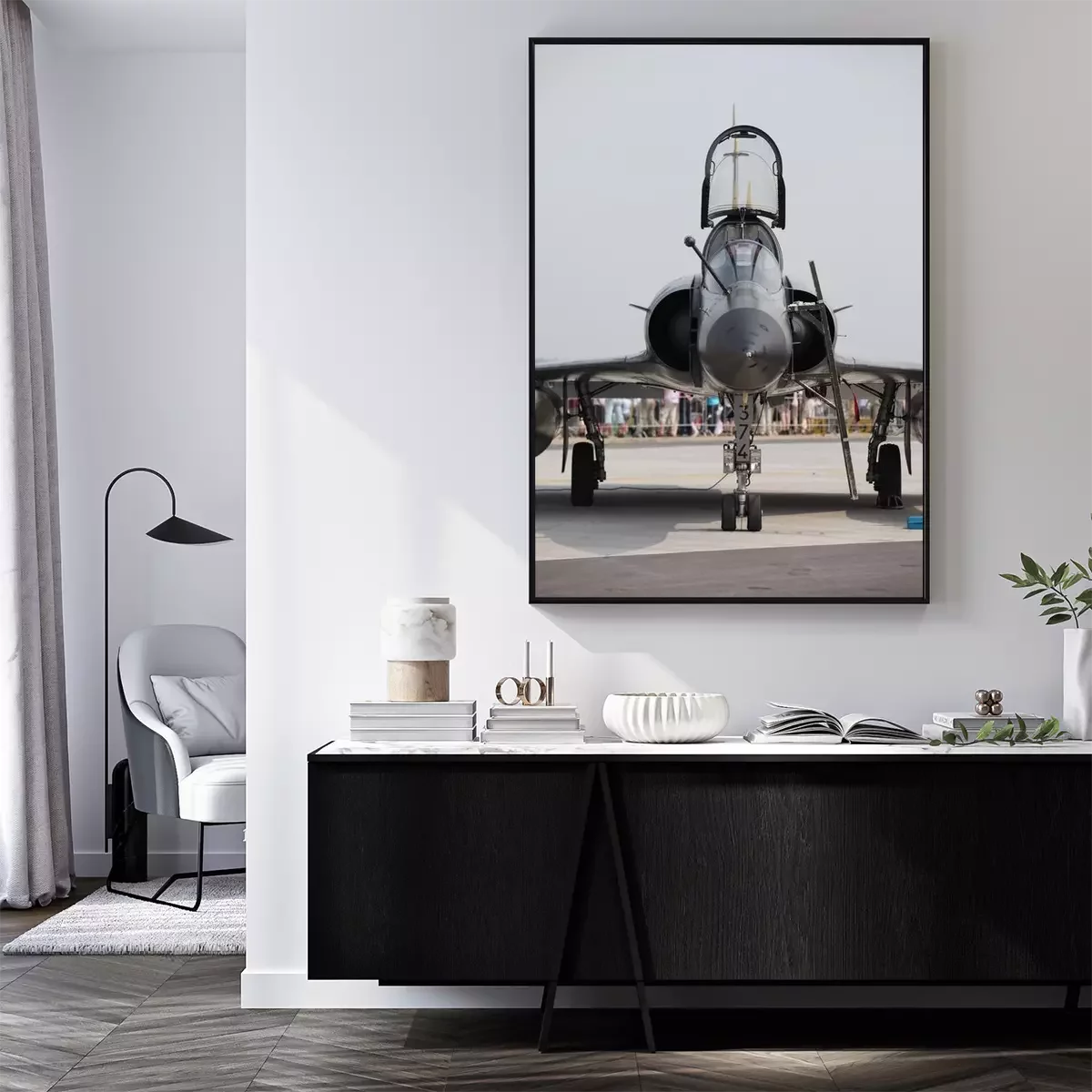 Poster: Kampfflugzeug auf einer Landebahn