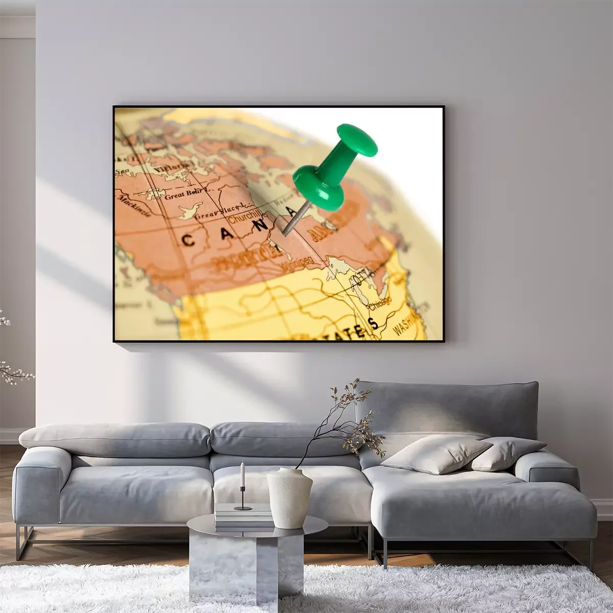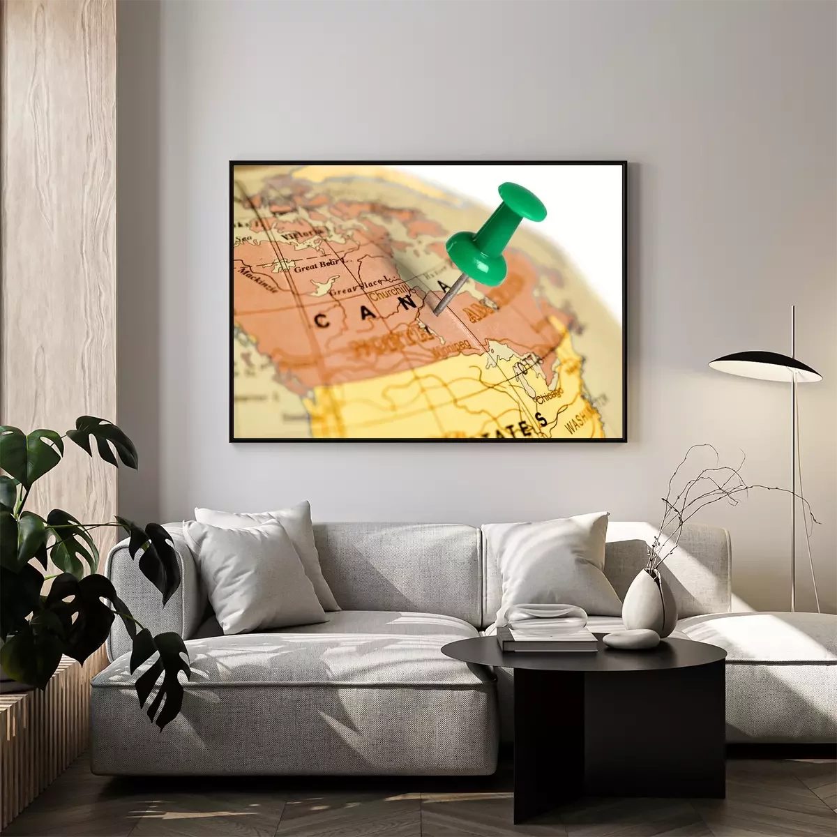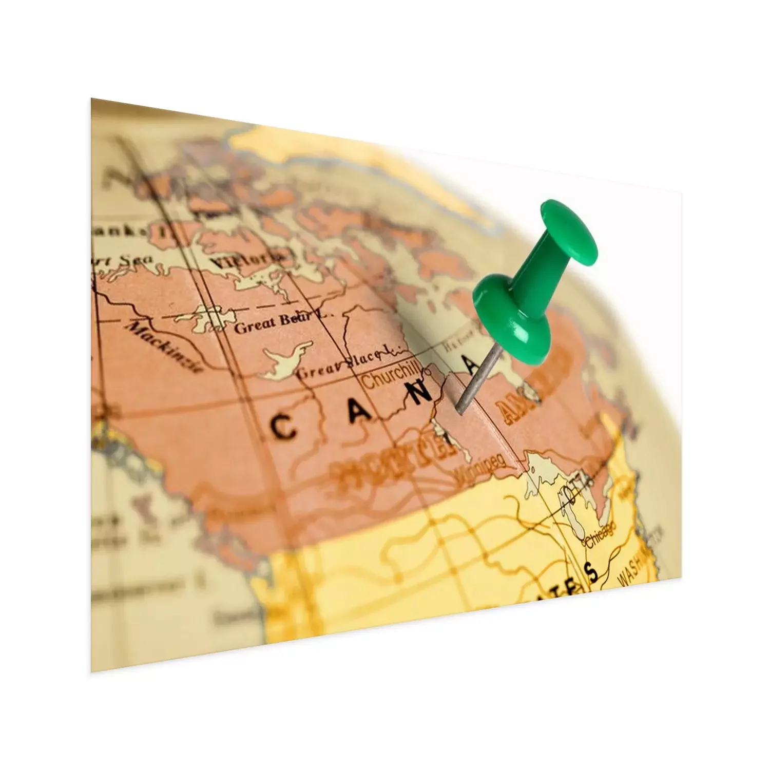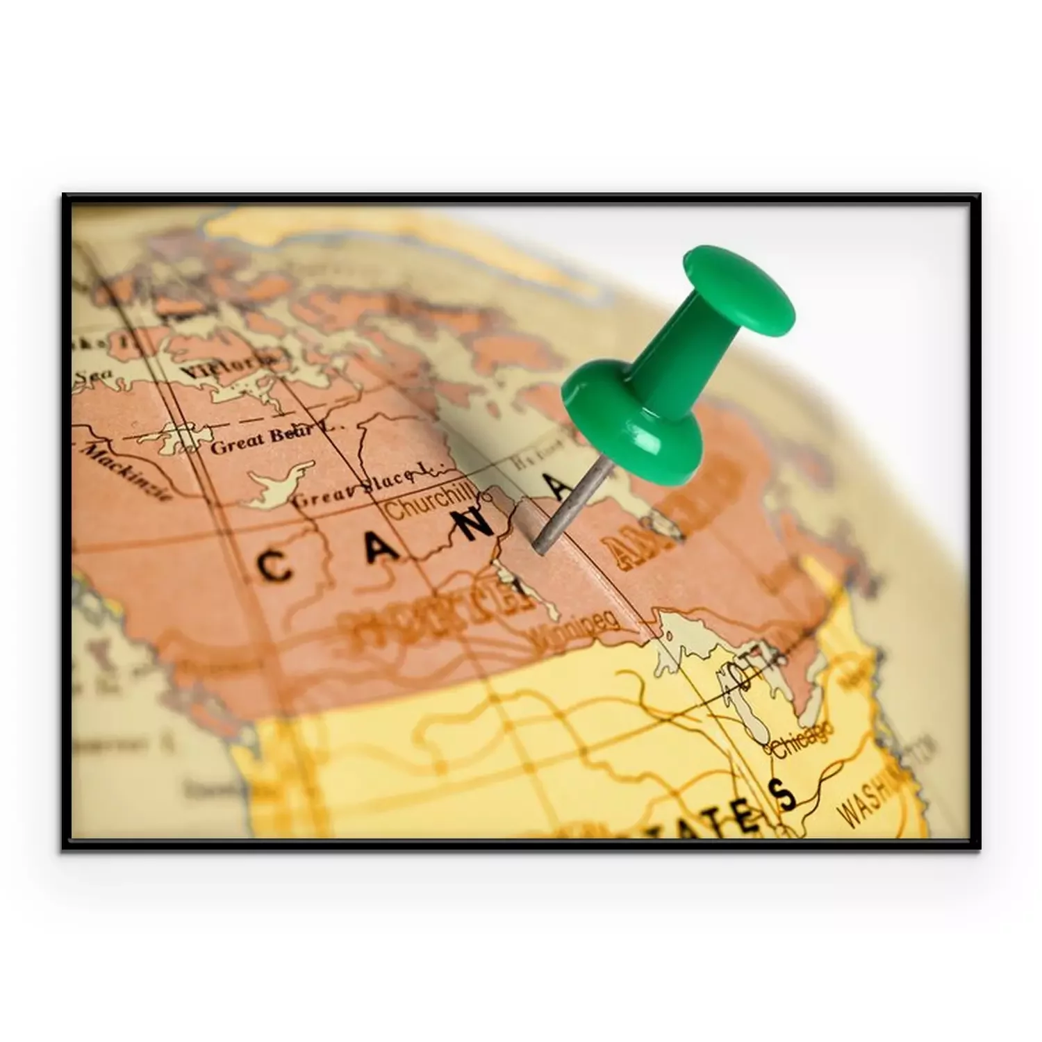 Poster: Kanada mit einer Nadel auf dem Globus markiert