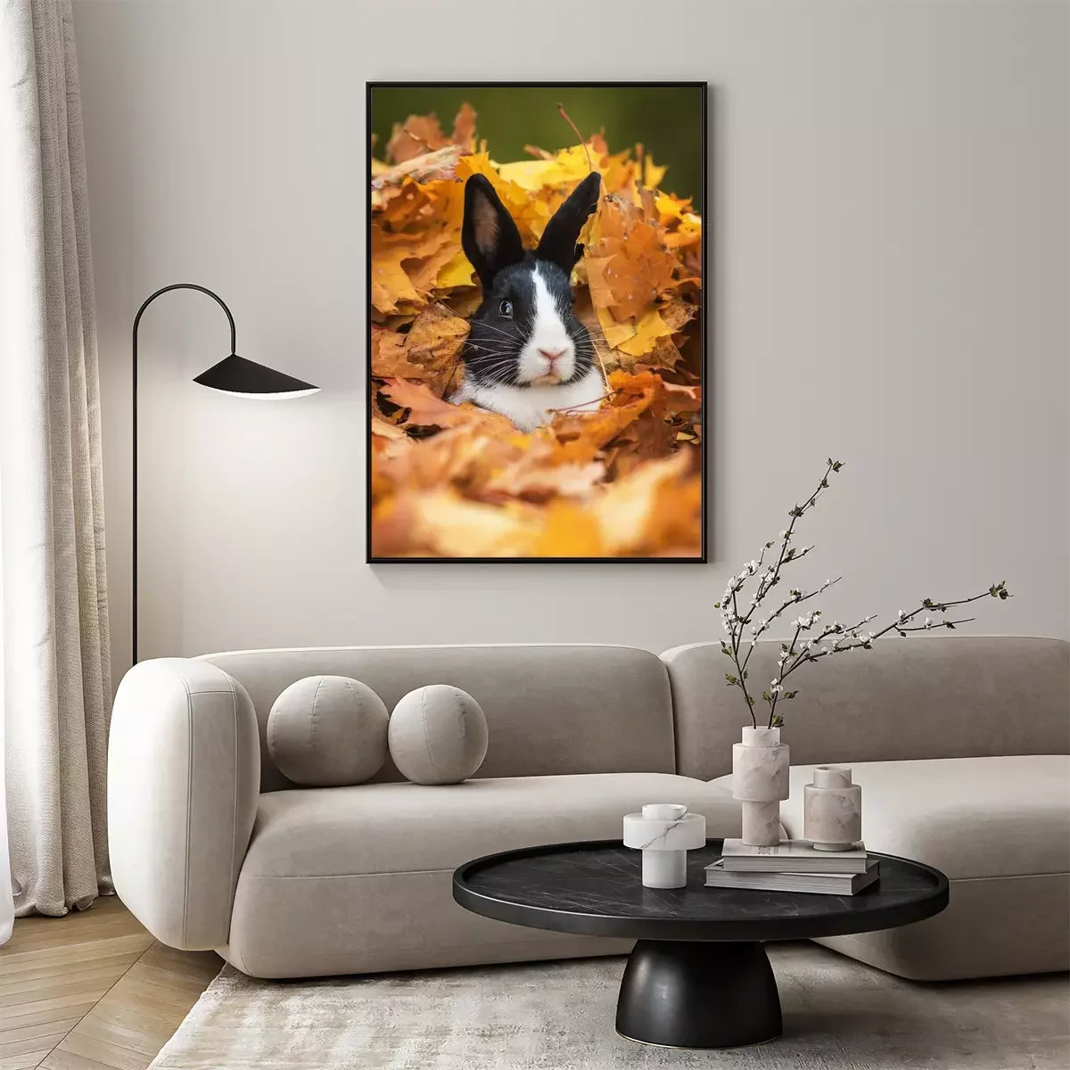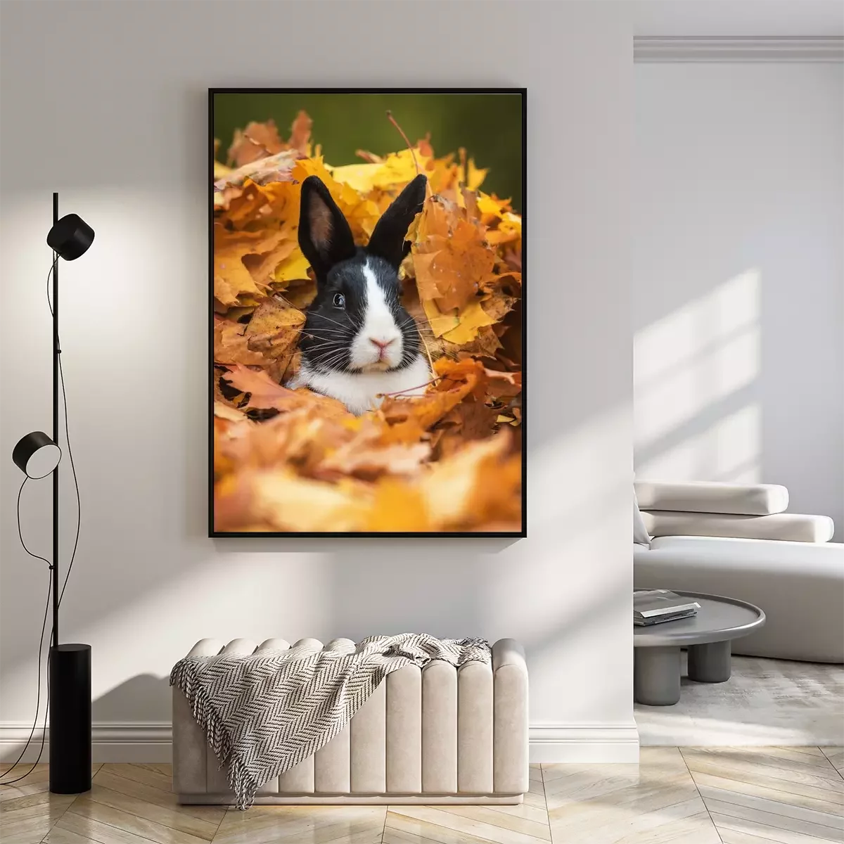 Poster: Kaninchen in Herbstblättern
