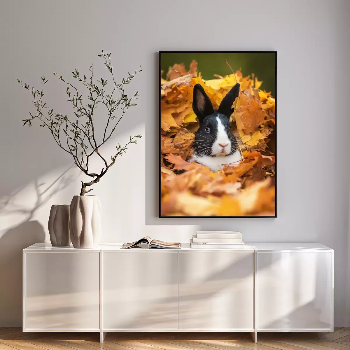 Poster Kaninchen in Herbstblättern