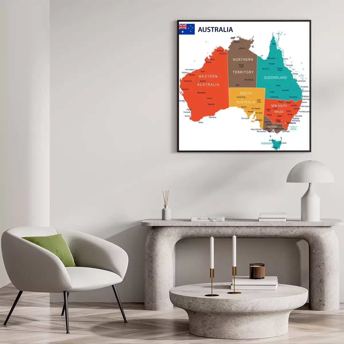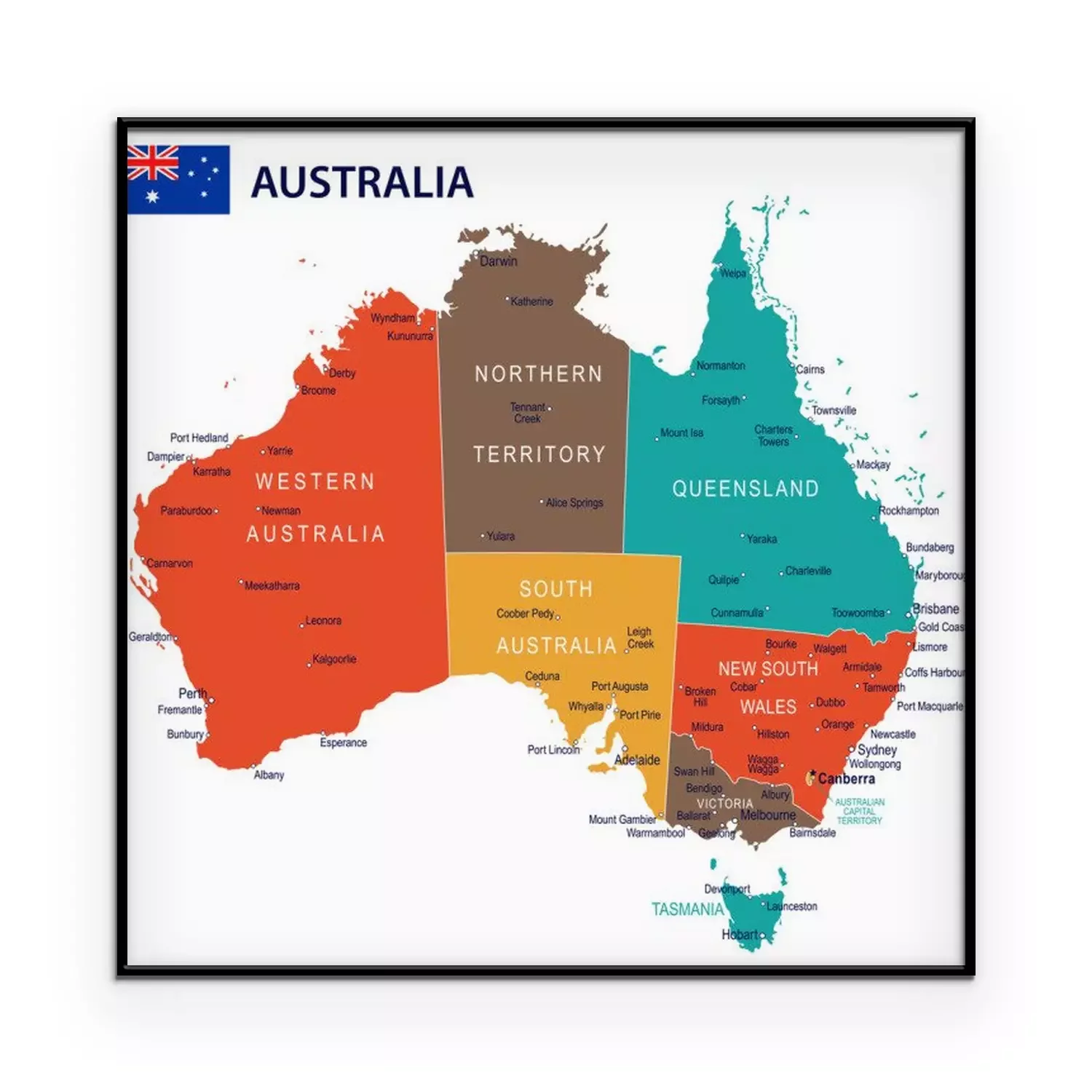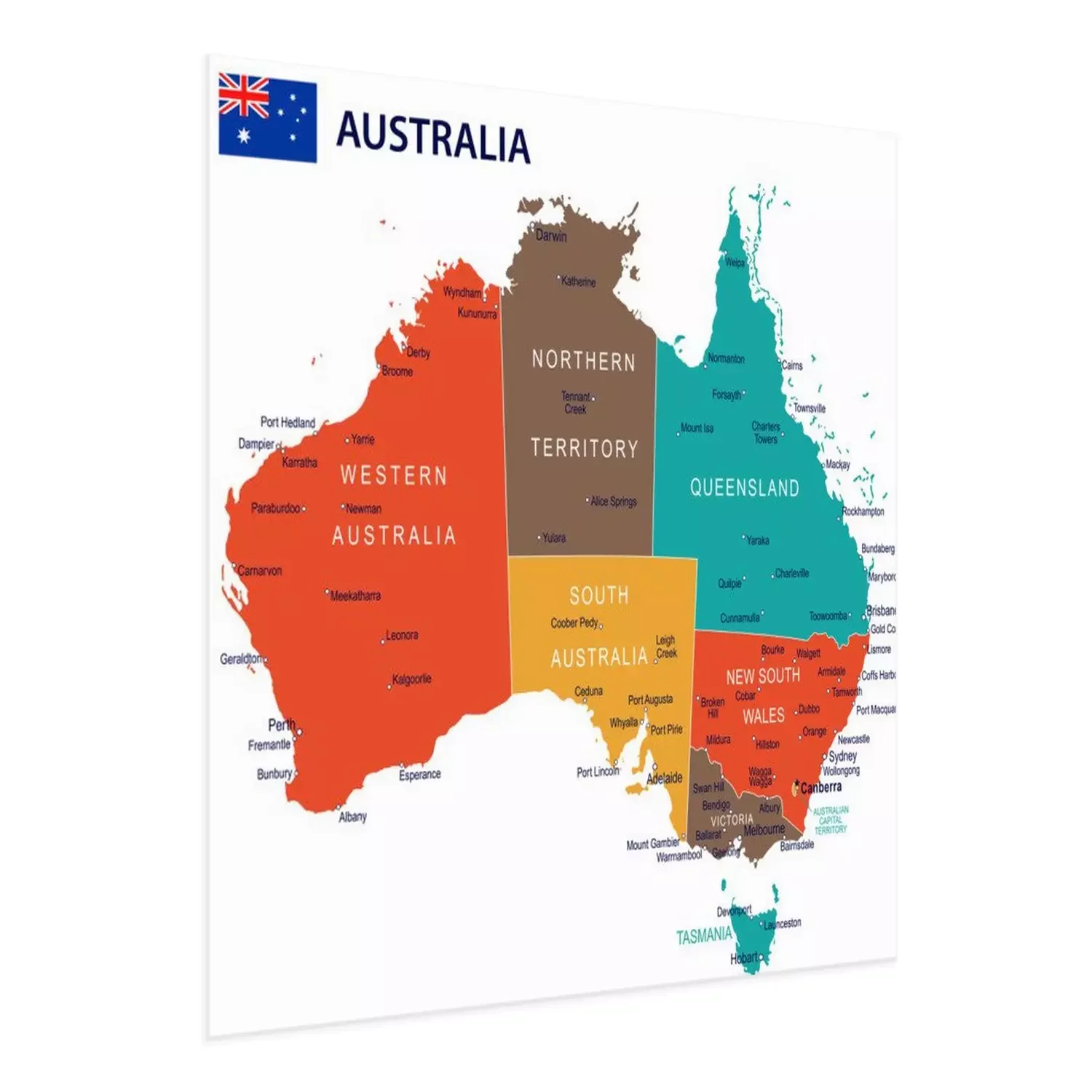 Poster: Karte von Australien mit gekennzeichneten Staaten