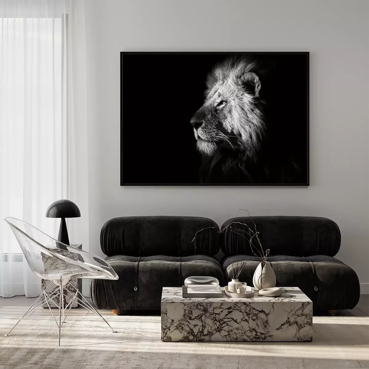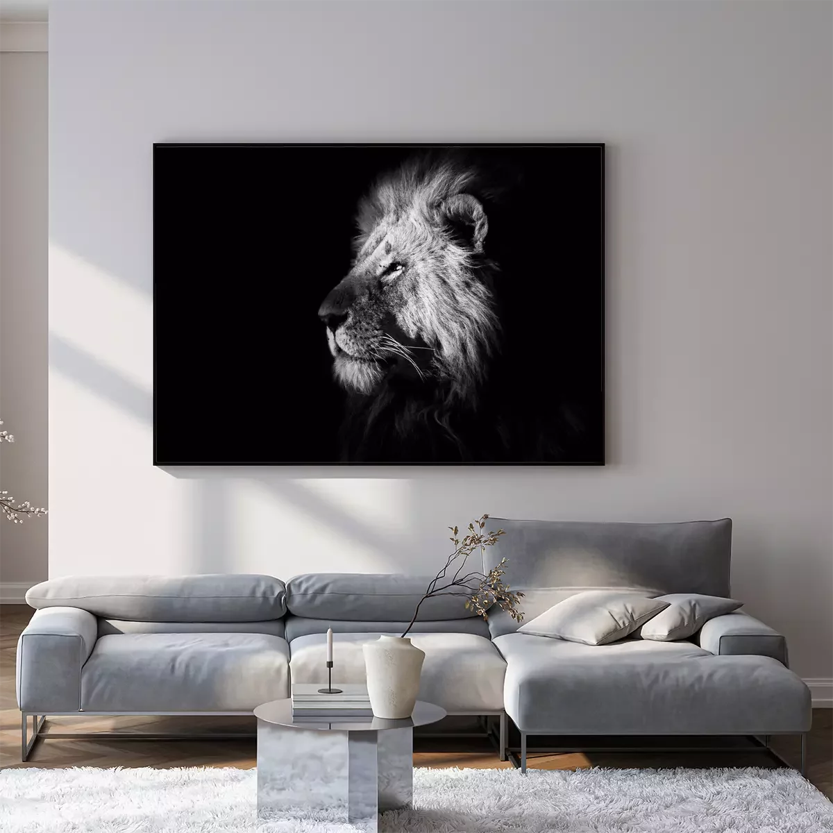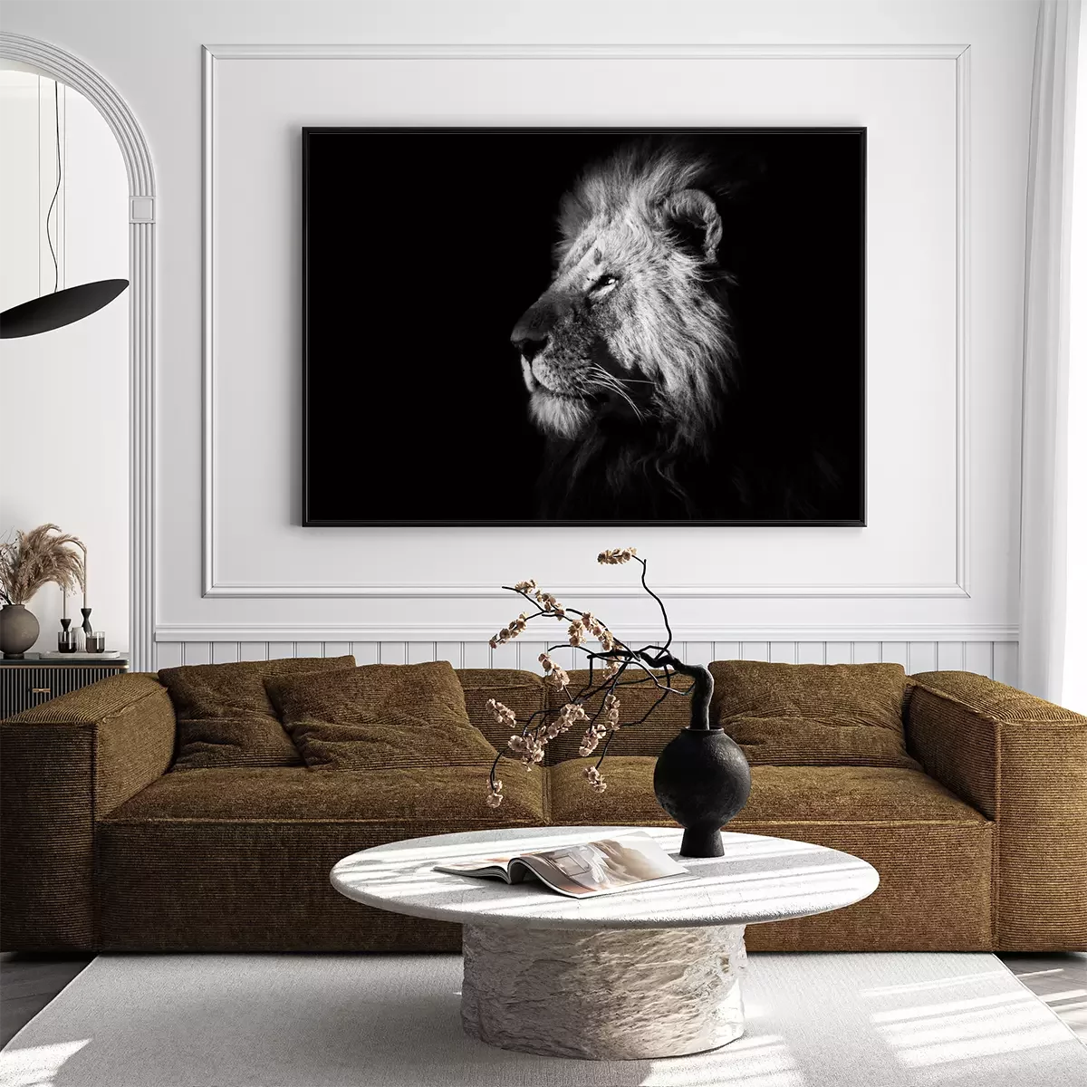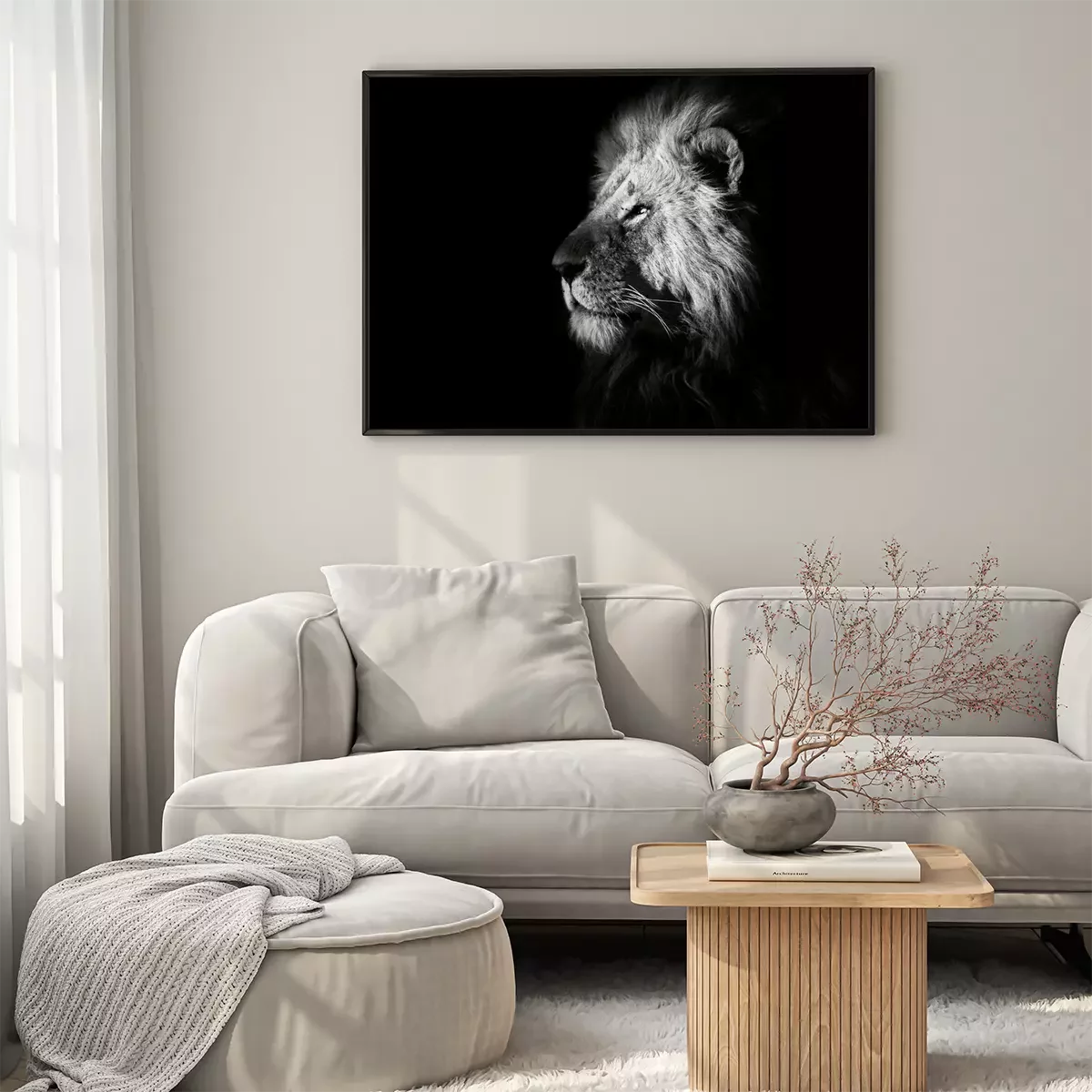 Poster: Katze Löwe auf schwarzem Hintergrund