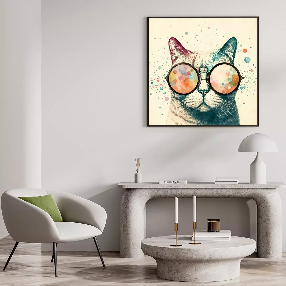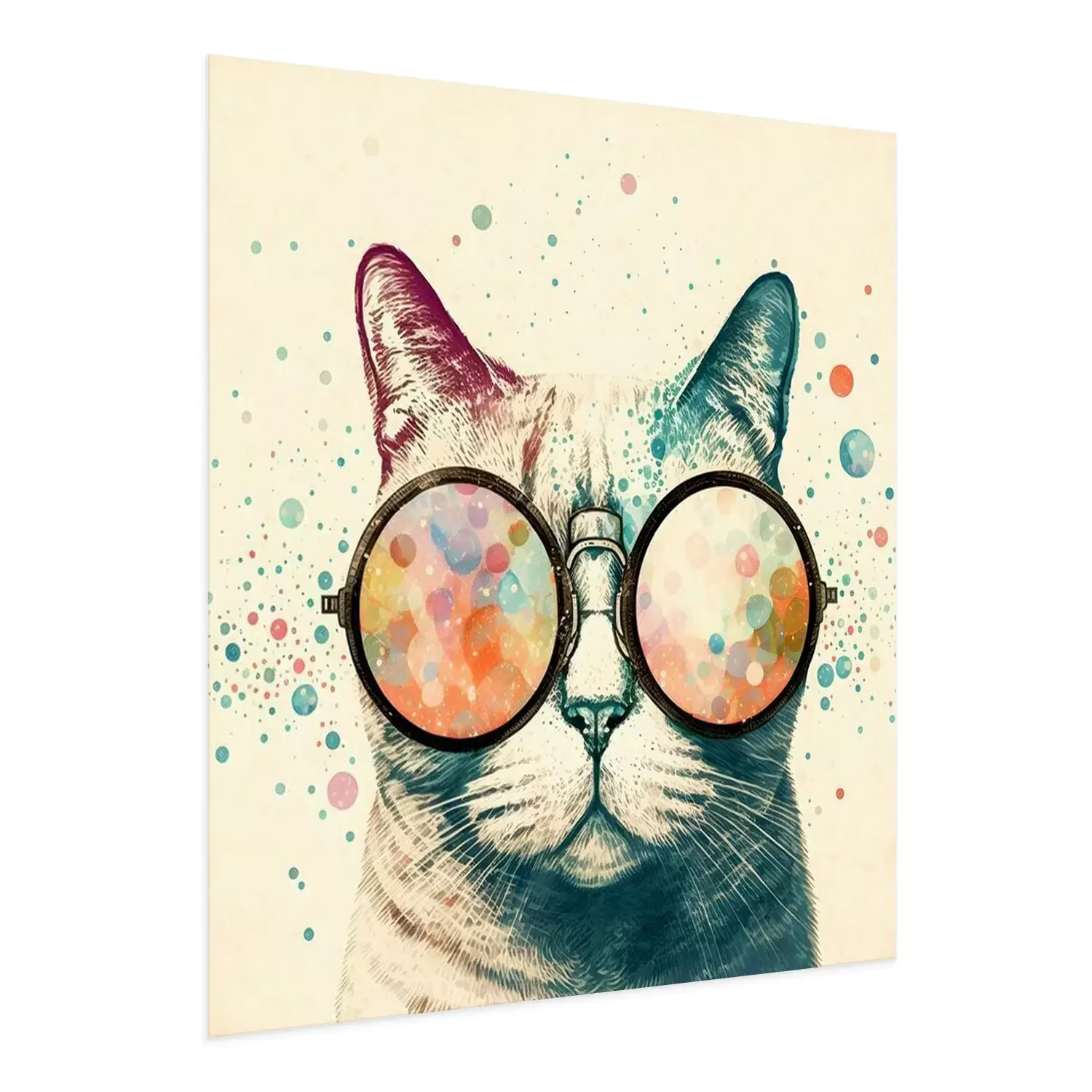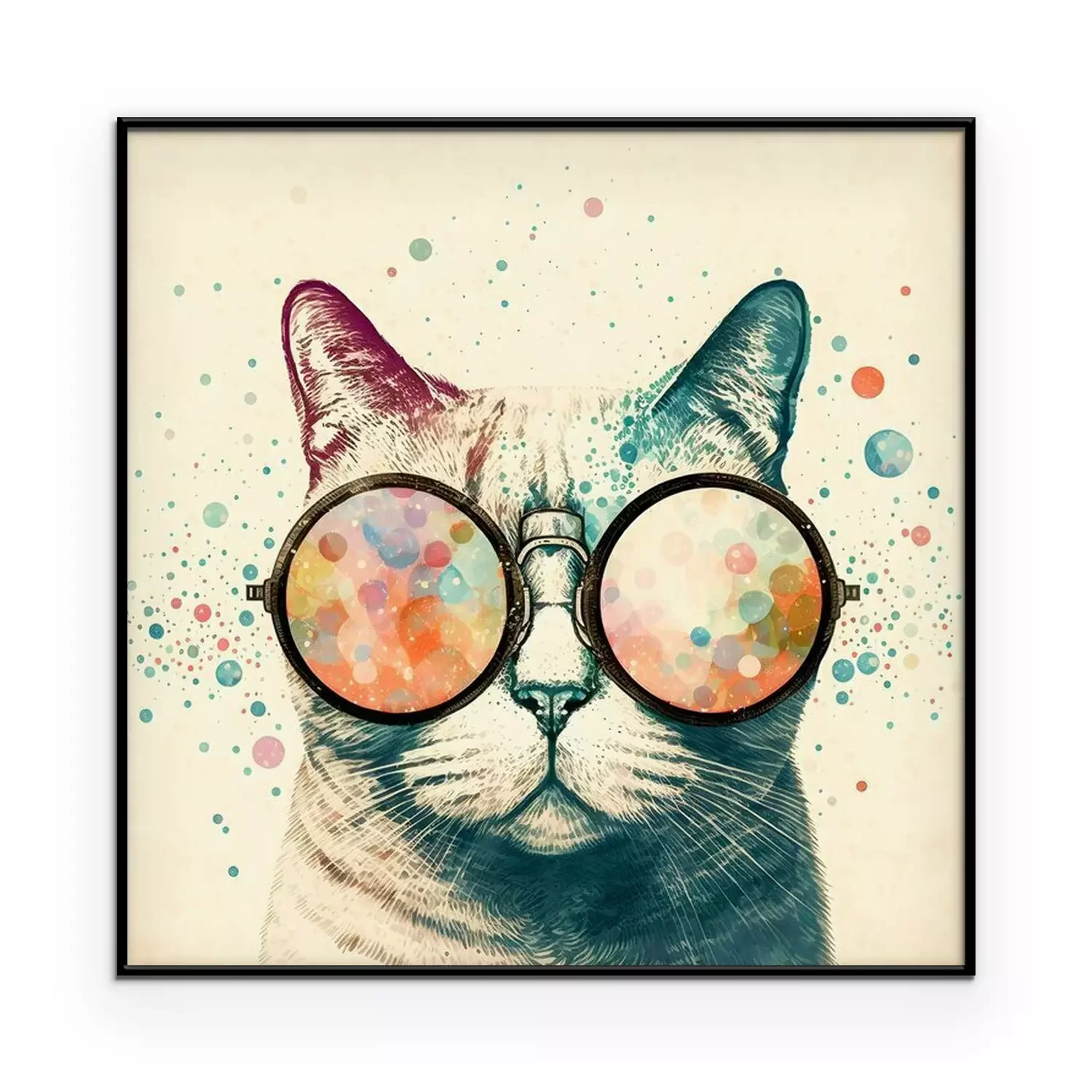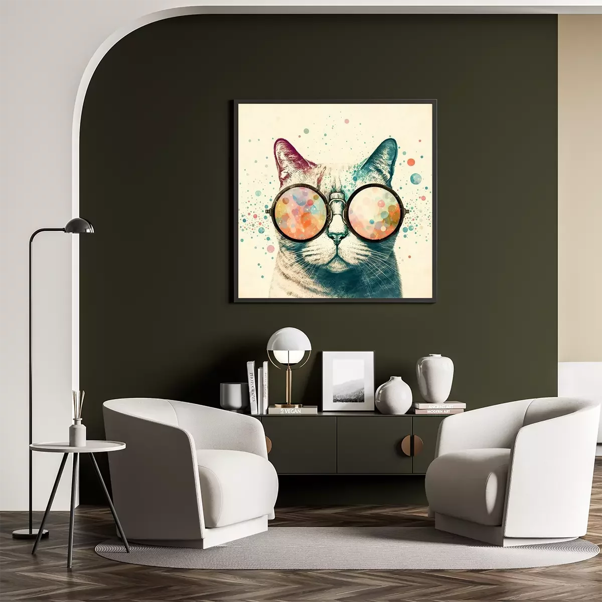 Hier ist ein ganz besonderes Katzenposter für dich! Wenn du Katzen liebst, darf eine solche Wanddekoration in deiner Einrichtung nicht fehlen. Für viele von uns sind Tiere vollwertige Familienmitglieder, und wir denken, dass es sich lohnt, ihre Anwesenheit in der Raumgestaltung zu betonen. So ist das Poster Katze nicht nur eine Dekoration für das Wohn- oder Schlafzimmer, sondern auch eine tolle Möglichkeit, zu zeigen, dass uns diese flauschigen Begleiter wichtig sind. Dadurch ist das Design mehr als nur eine vorübergehende Dekoration – es fügt sich über Jahre hinweg nahtlos in die Einrichtung ein und erfreut die Augen aller Bewohner. Ein weiterer Vorteil unseres Katzenposters ist, dass es zu vielen verschiedenen Stilen passt, da es viele unterschiedliche Ästhetiken in sich vereint. Auf der einen Seite handelt es sich um ein realistisches Porträt, auf der anderen Seite trägt die Katze eine "John-Lennon"-Brille auf der Nase, was es zu einem lustigen Katzenposter macht. Die Farbgebung ist dezent, aber gleichzeitig ist das Design mit bunten Tupfen wie Konfetti verziert, die vom Himmel fallen und das Poster Katze lebendig machen. Eine solche Katze kann zum Beispiel in einem modernen Wohnzimmer erscheinen und den minimalistischen und zurückhaltenden Charakter der Einrichtung durchbrechen. Sie bewährt sich aber auch in einem Retro-Ambiente, das von den 70er Jahren des letzten Jahrhunderts inspiriert worden ist. Liebhabern ausdrucksstarker Stylings empfehlen wir ein solches Poster Katze für das Schlafzimmer, da es – über dem Kopfteil des Bettes angebracht – der Einrichtung eine neue Qualität verleiht. Wir empfehlen es auch für den Boho- und Kawaii-Stil, der auf Pastellfarben und Möbeln mit weichen, runden Formen basiert. Ein idealer Ort für ein Poster Katze ist auch die Einrichtung eines Jugendzimmers. Die Brille im Stil von John Lennon, die das Tier auf der Nase trägt, erinnert an den berühmten Sänger der Beatles, daher ist dies eine großartige Möglichkeit, die Liebe zu Tieren und Musik zu verbinden! Um den besten visuellen Effekt zu erzielen, lohnt es sich, über einen schwarzen Rahmen nachzudenken, in den das Poster über Katzen eingefasst werden kann. Eine Katze, die auf einem lustigen Porträt dargestellt wird, ist auch eine großartige Option für das Kinderzimmer. Alle kleinen Kinder lieben Tiere, daher sind Poster mit Katzen für die Wand eine gute Alternative, wenn das Kind von einem Haustier träumt, aber noch zu klein ist, um sich darum zu kümmern. Katzen werden zu Spielkameraden des Kindes und verleihen der Einrichtung eine gemütliche und ansprechende Atmosphäre. Und da es sich, wie bereits betont, nicht um ein kindliches Design handelt, wird es dem Kind viele Jahre lang dienen, denn es wird nicht so schnell aus ihm herauswachsen.