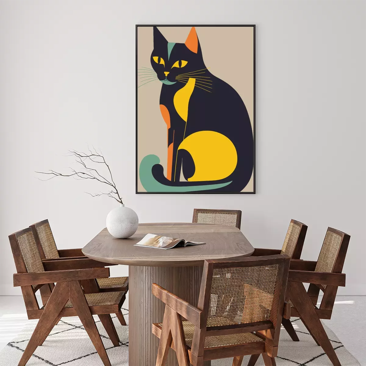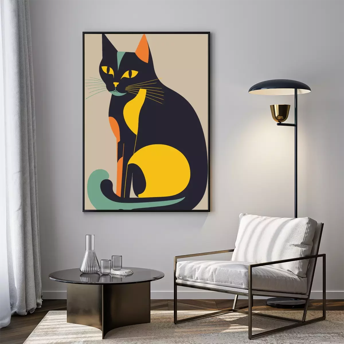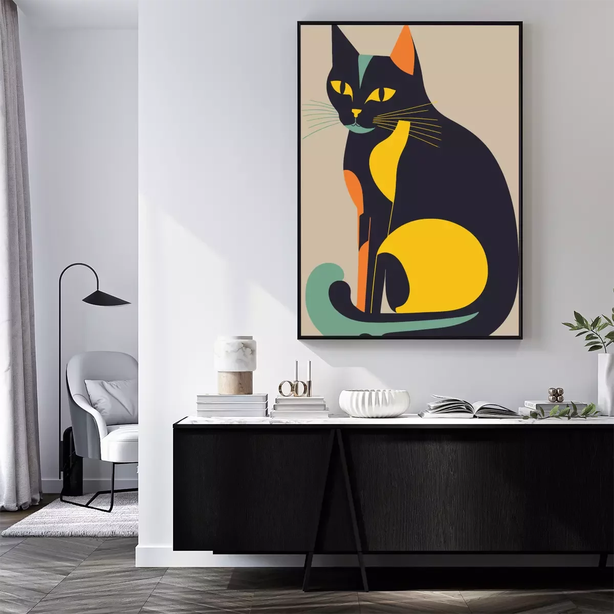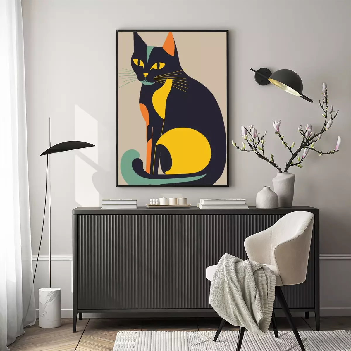 Poster: Katze und Farbblöcke