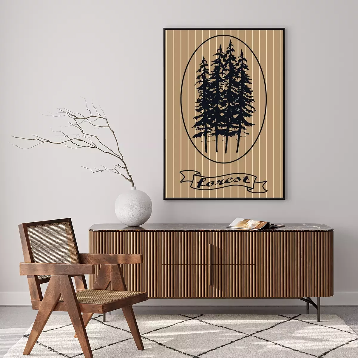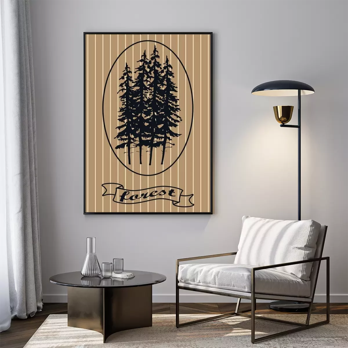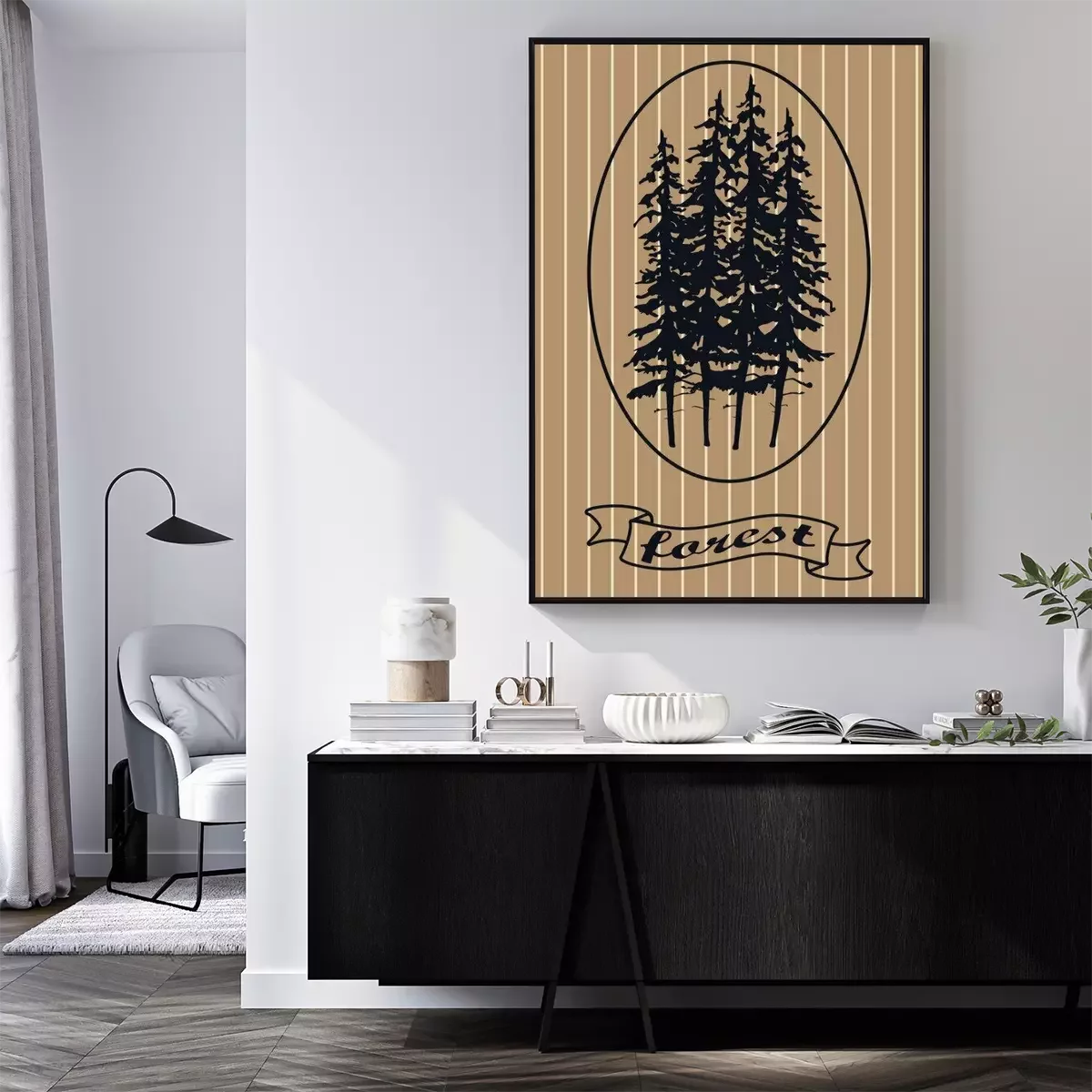Poster: Kiefer Wald Design-Vorlage. Skizze Vektor-Illustration