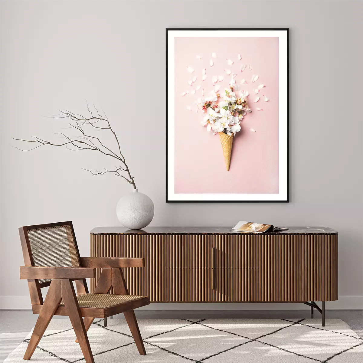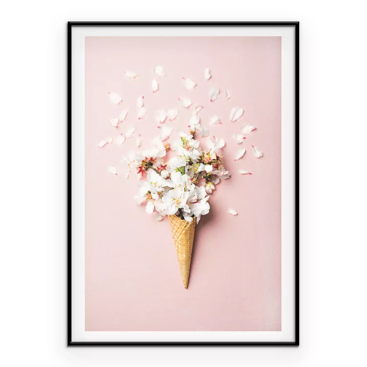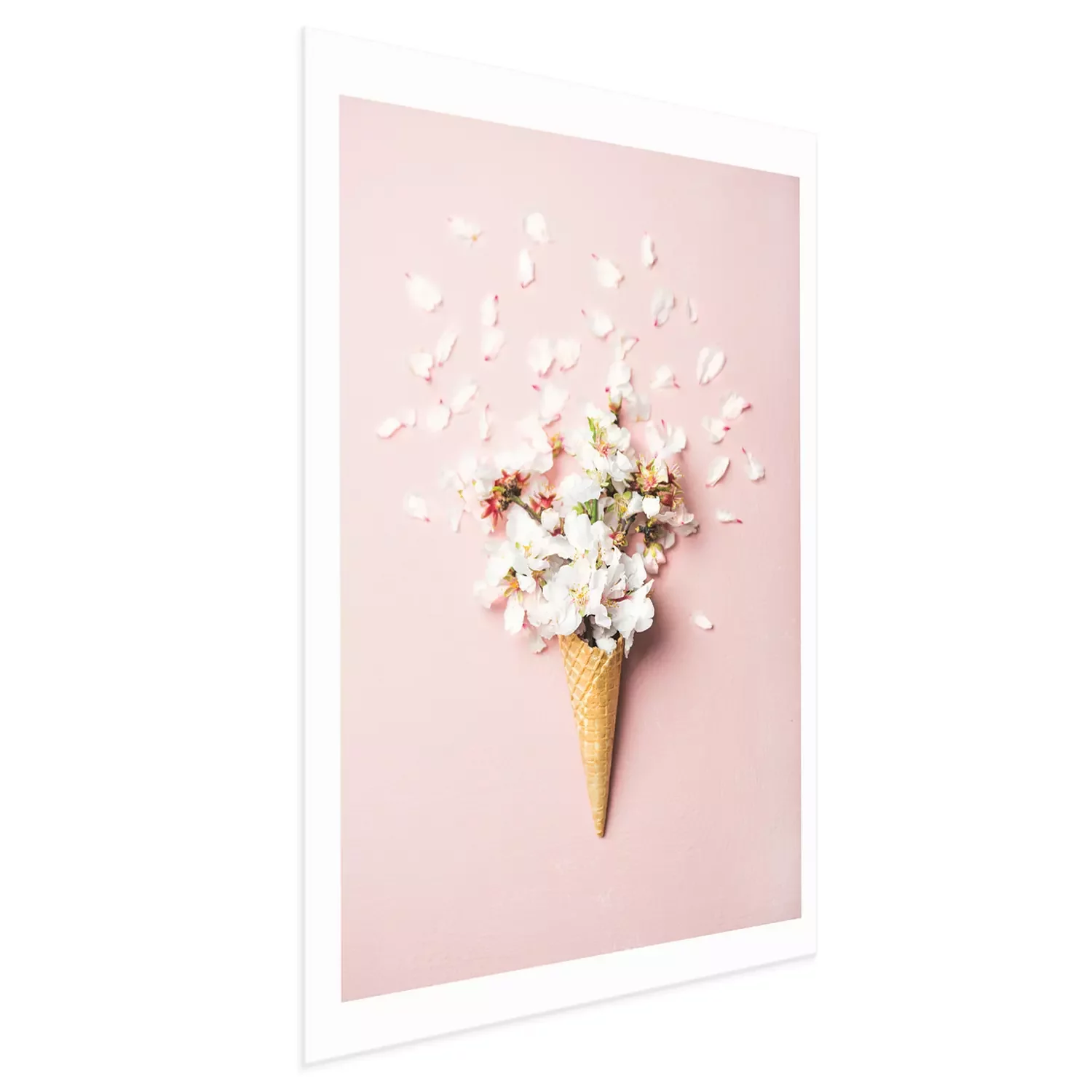 Poster: Kirschblüten in einer Waffeltüte auf rosa Hintergrund