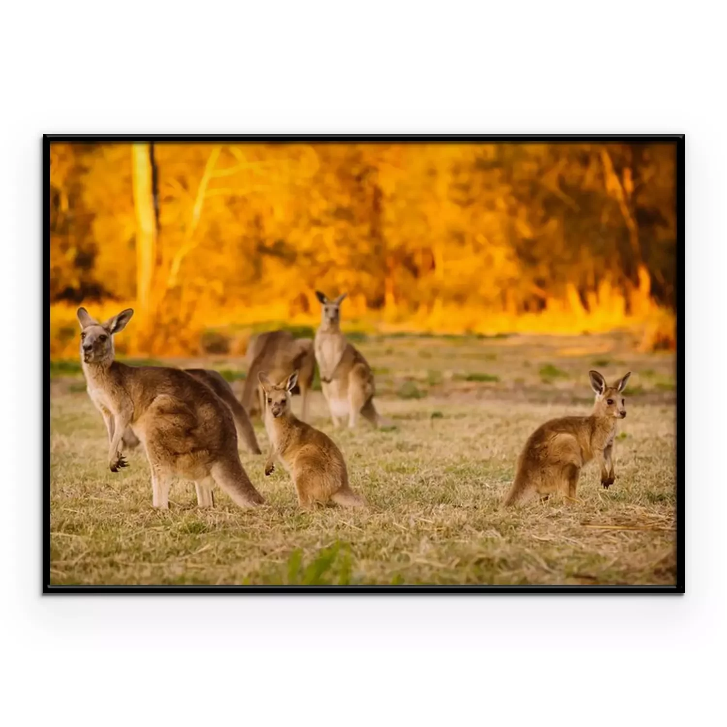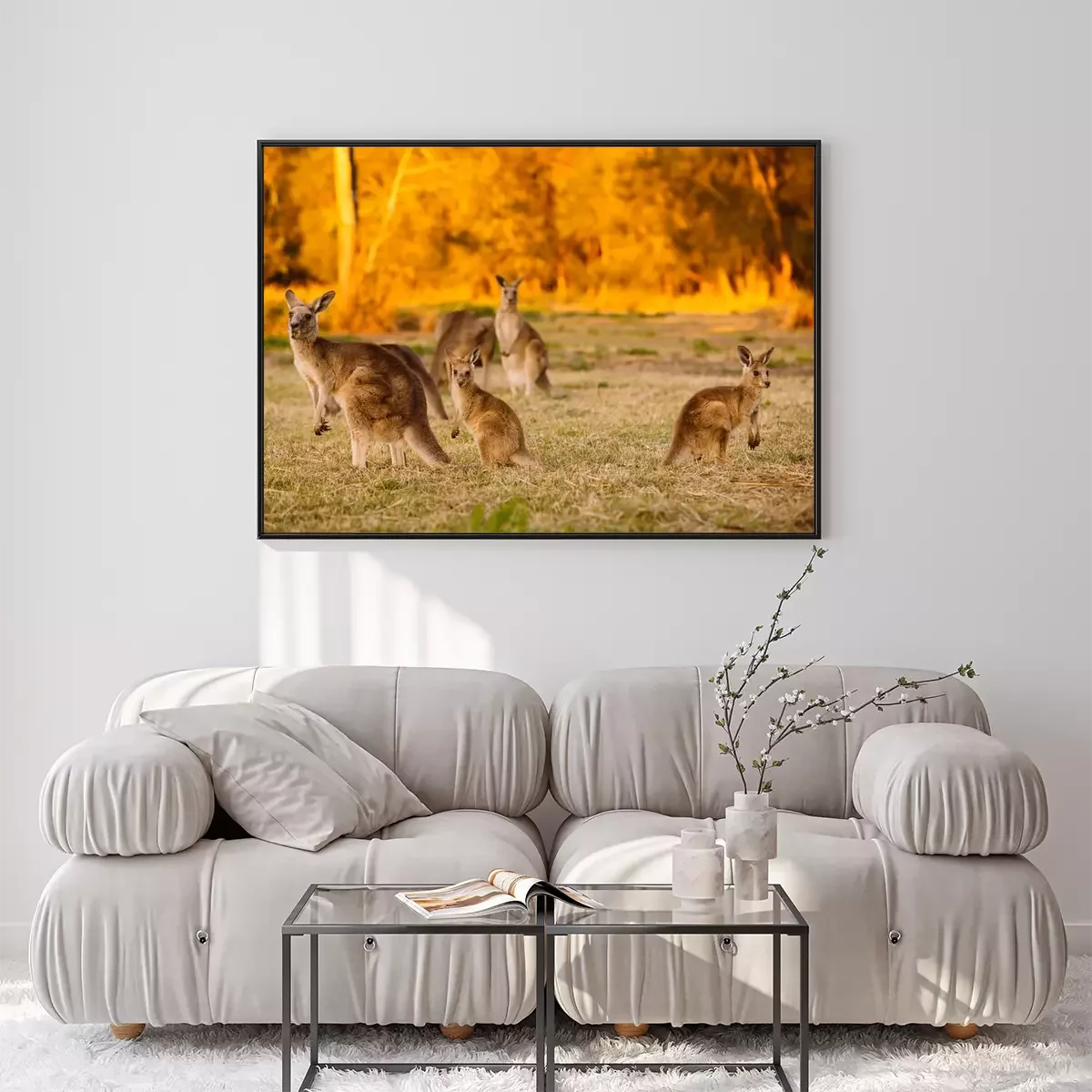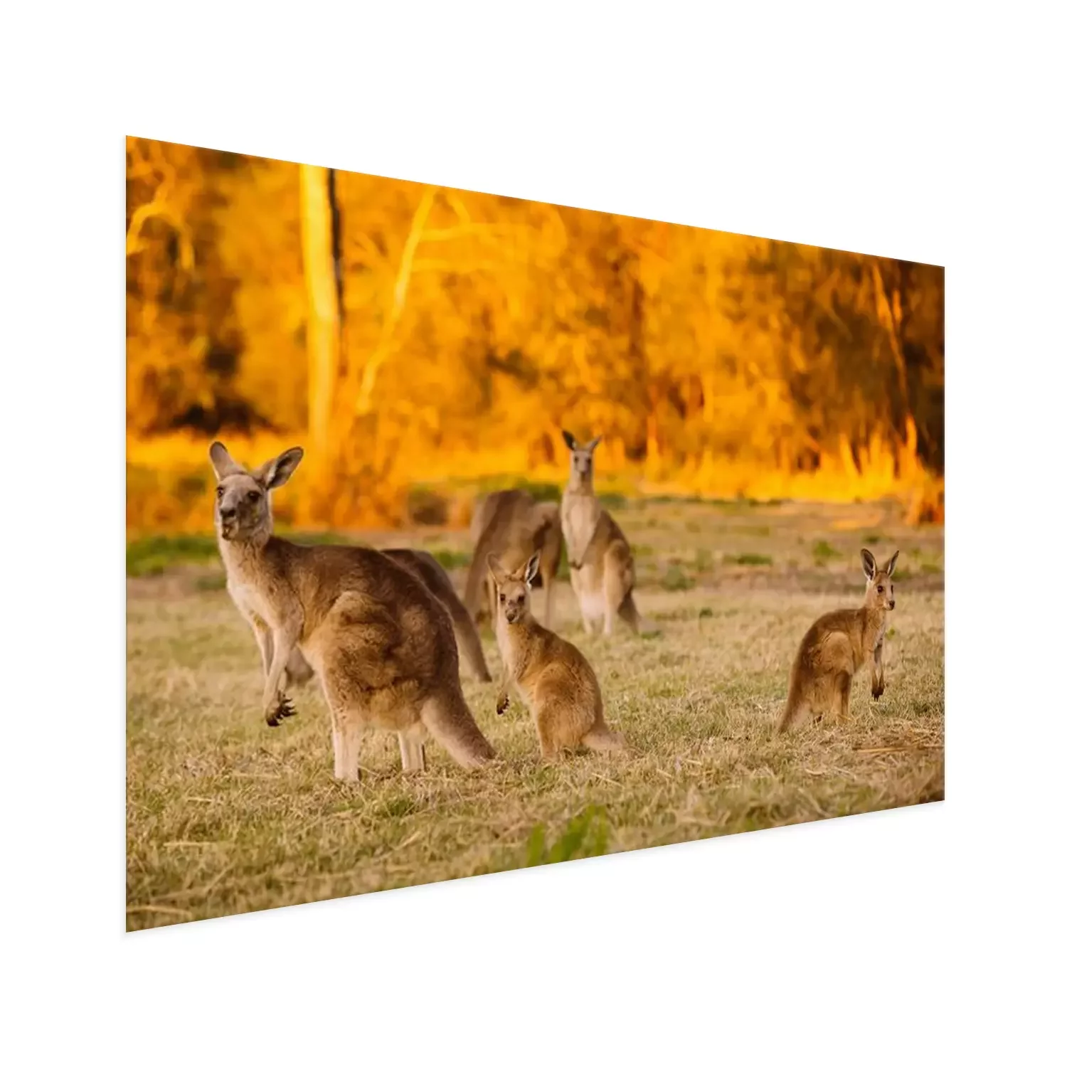 Poster: Kleine Herde von Kängurus im Hintergrund der Bäume