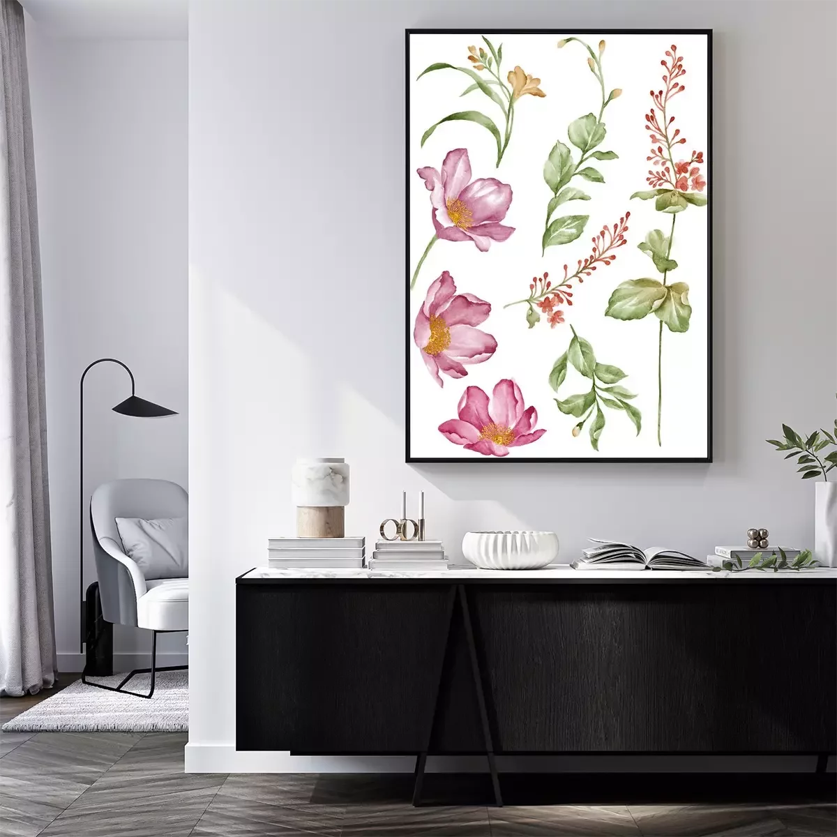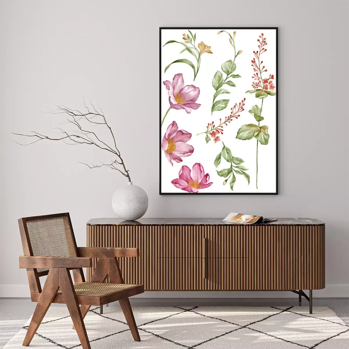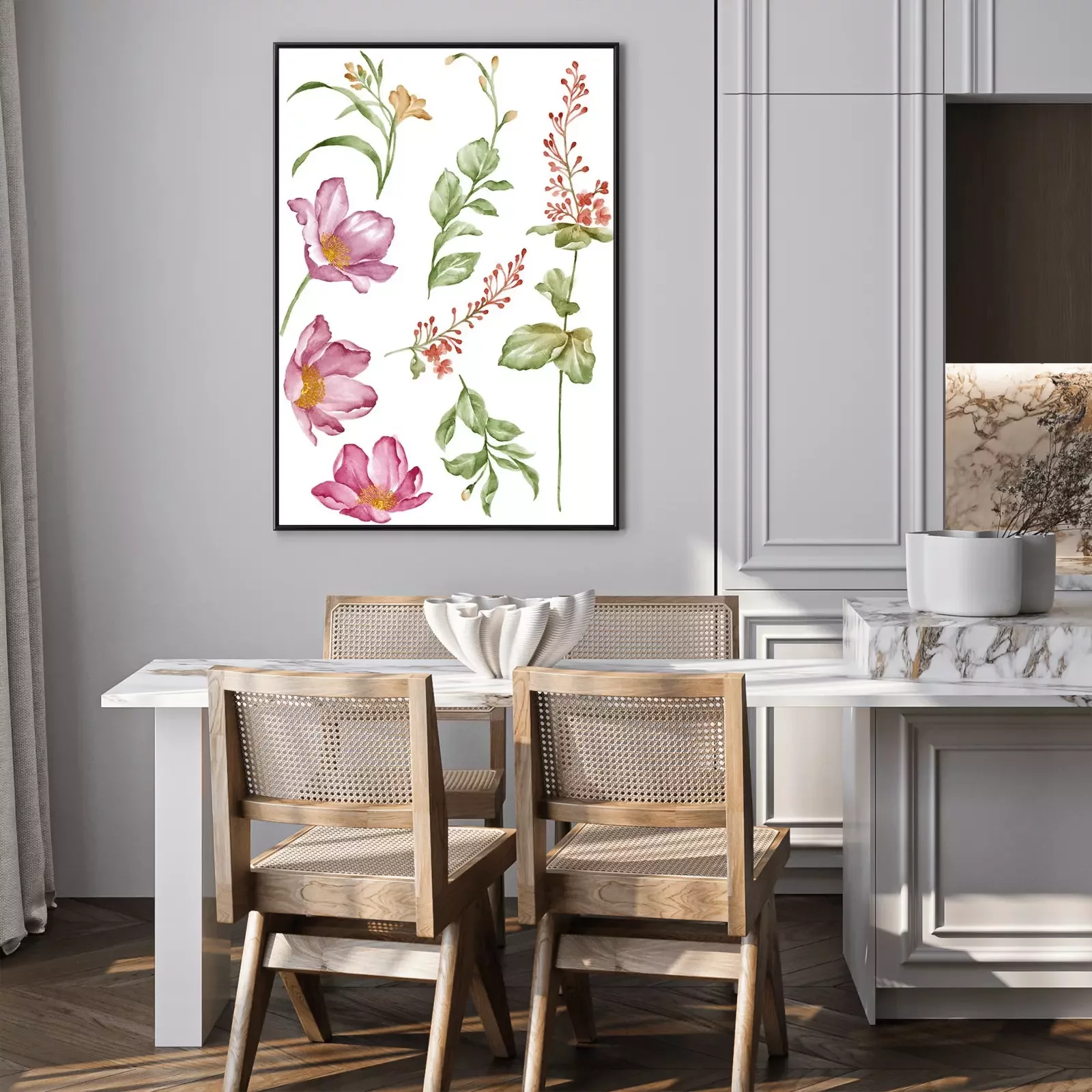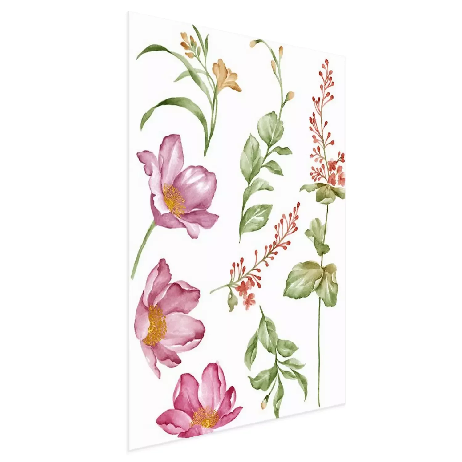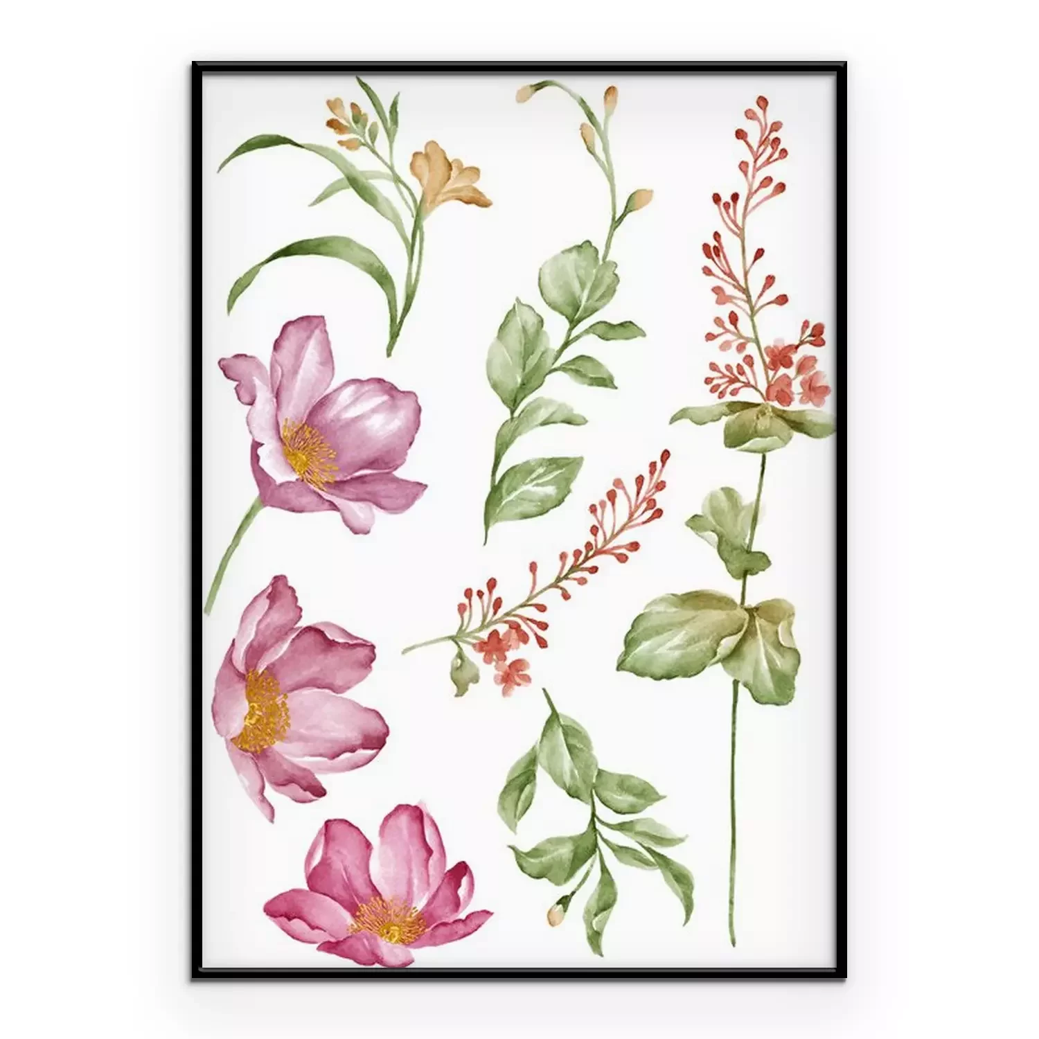 Poster: Kombination aus Aquarellblumen und Zweigen