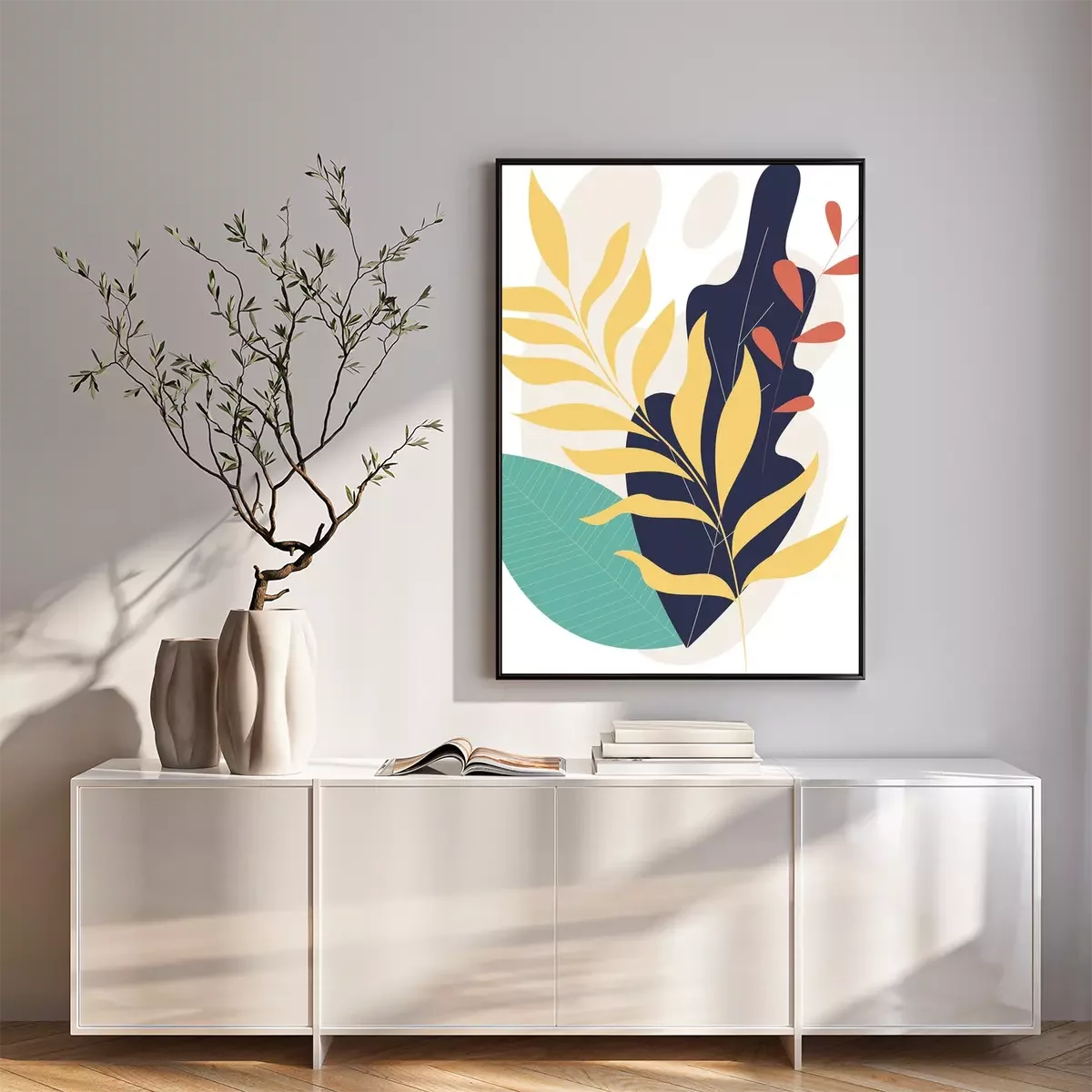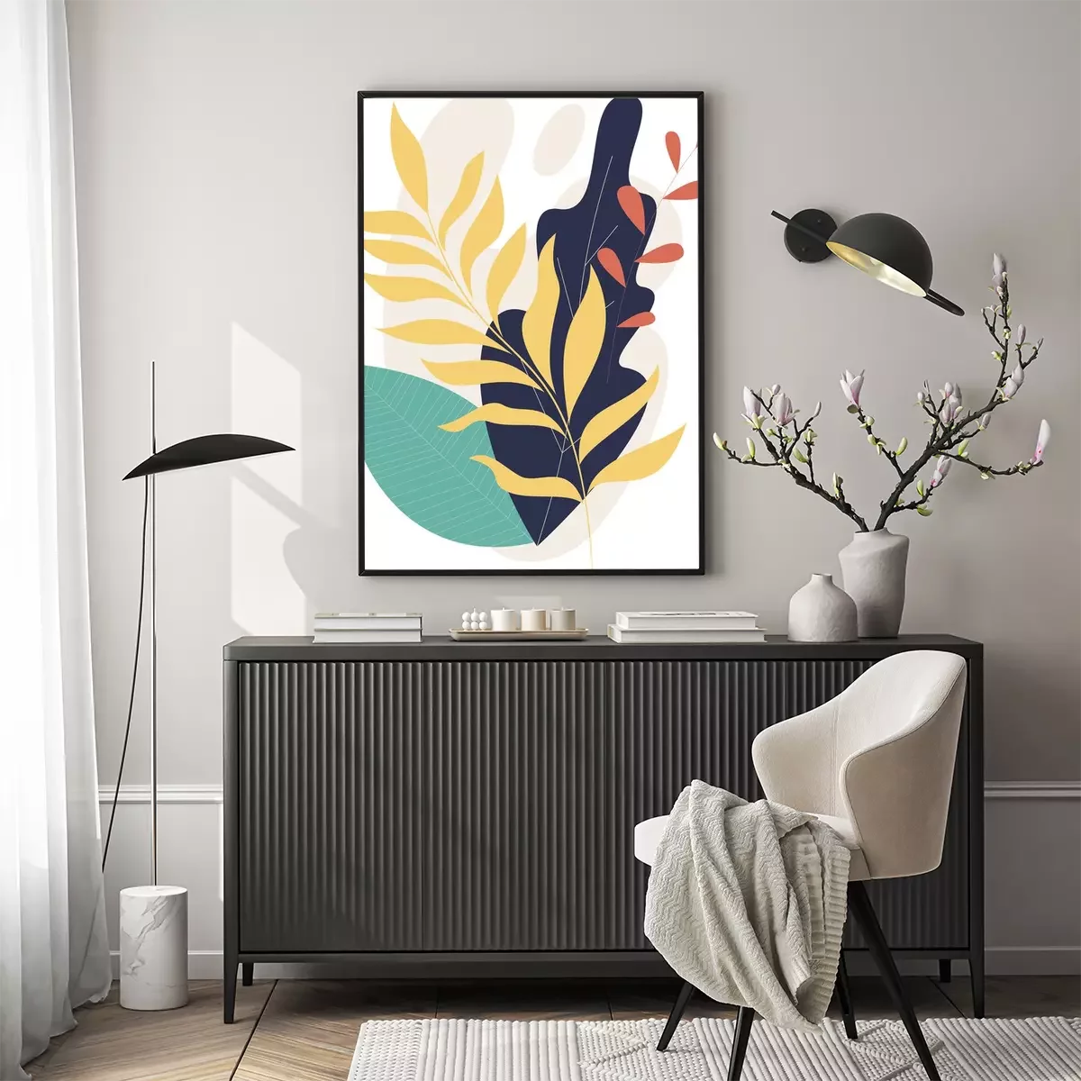 Poster: Komposition aus bunten Blättern mit schwarzem Akzent