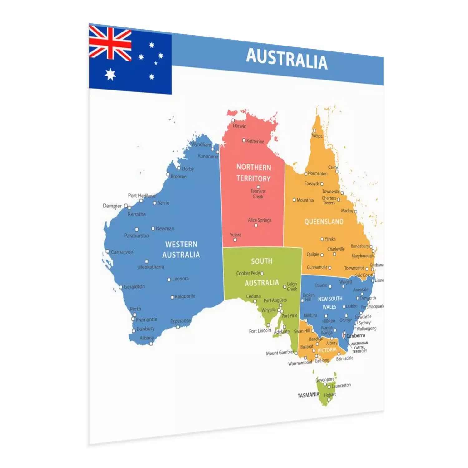 Poster Kontinente Grafik mit administrativer Karte von Australien