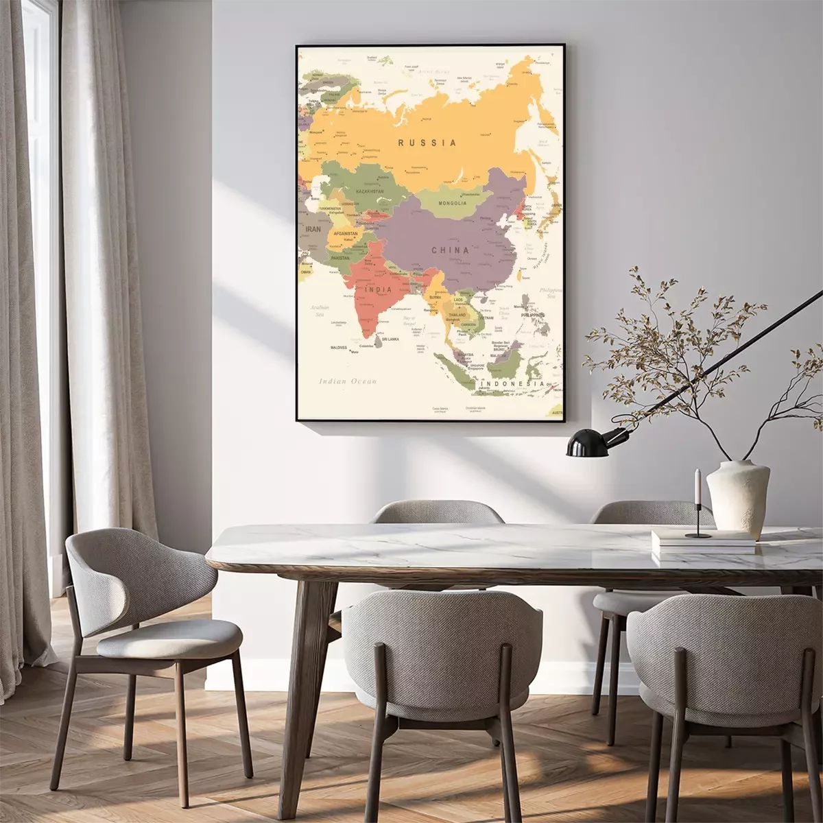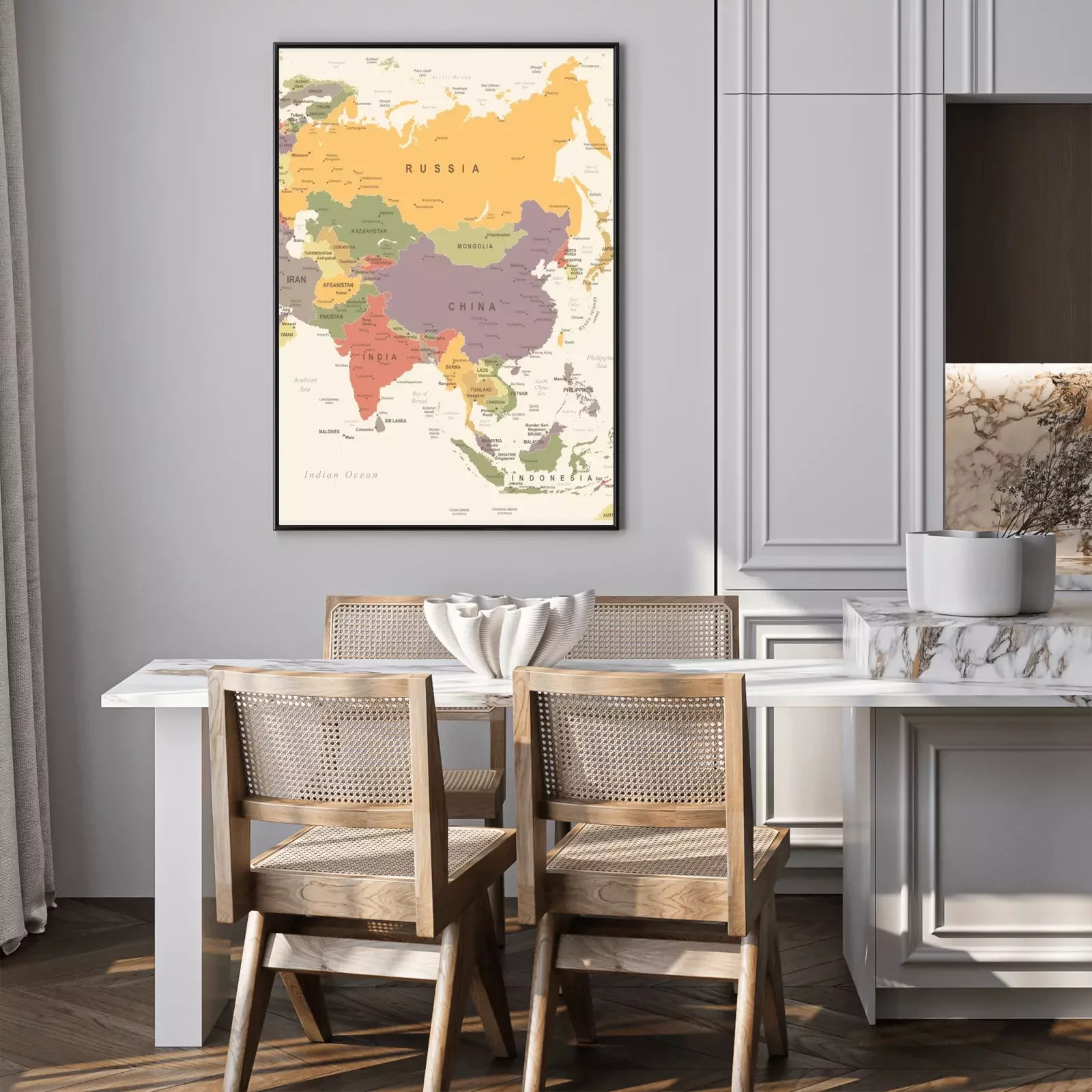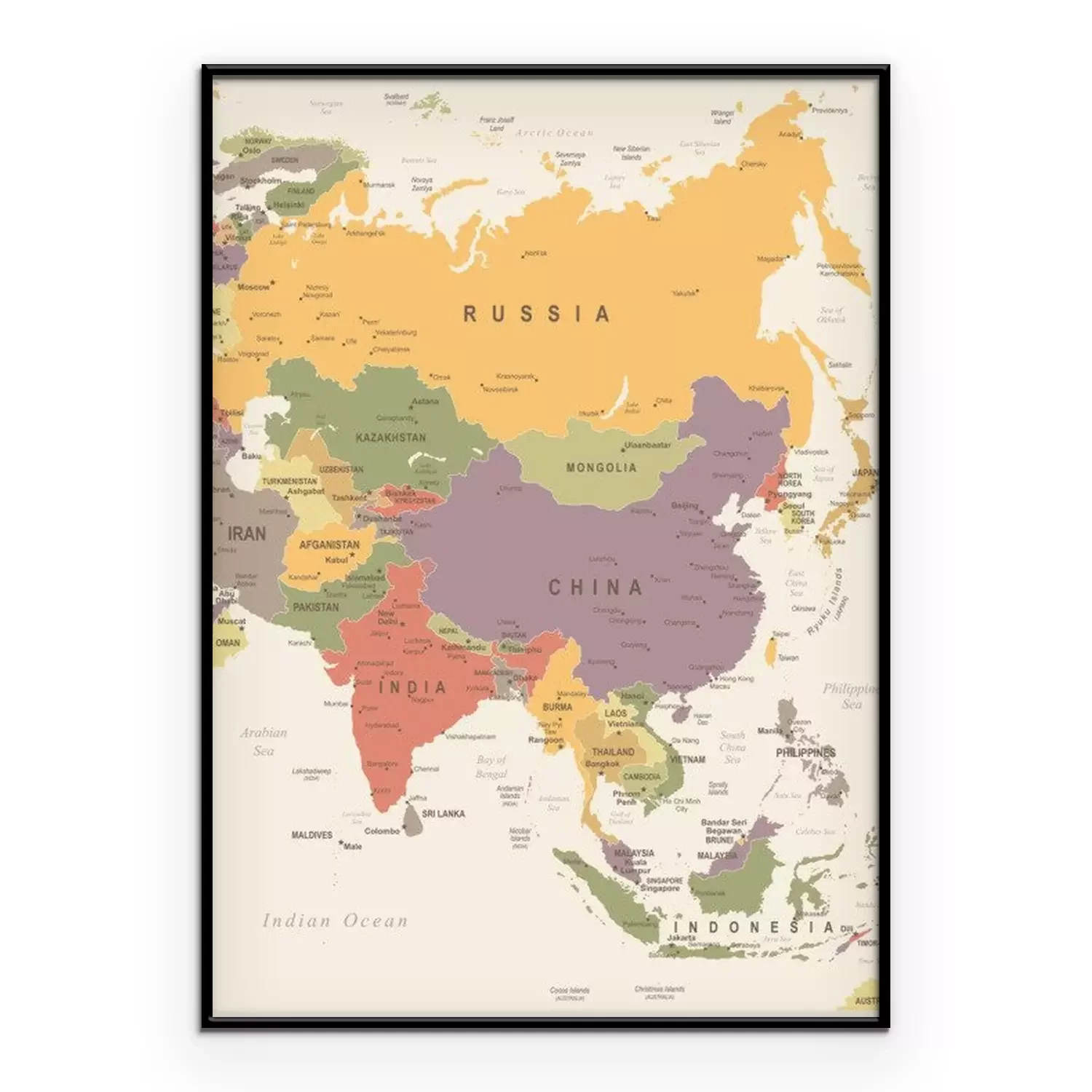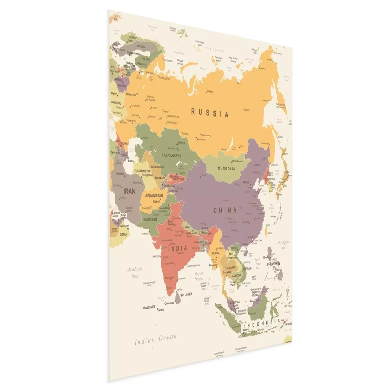 Poster Kontinente Grafik mit einer Retrokarte von Asien