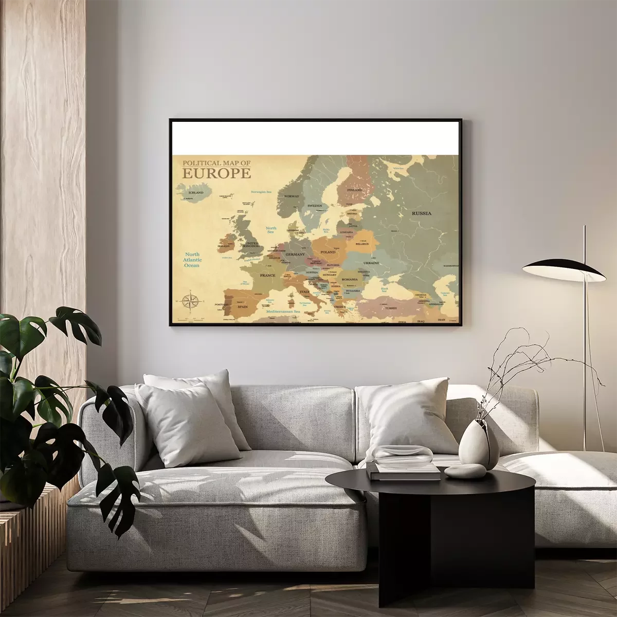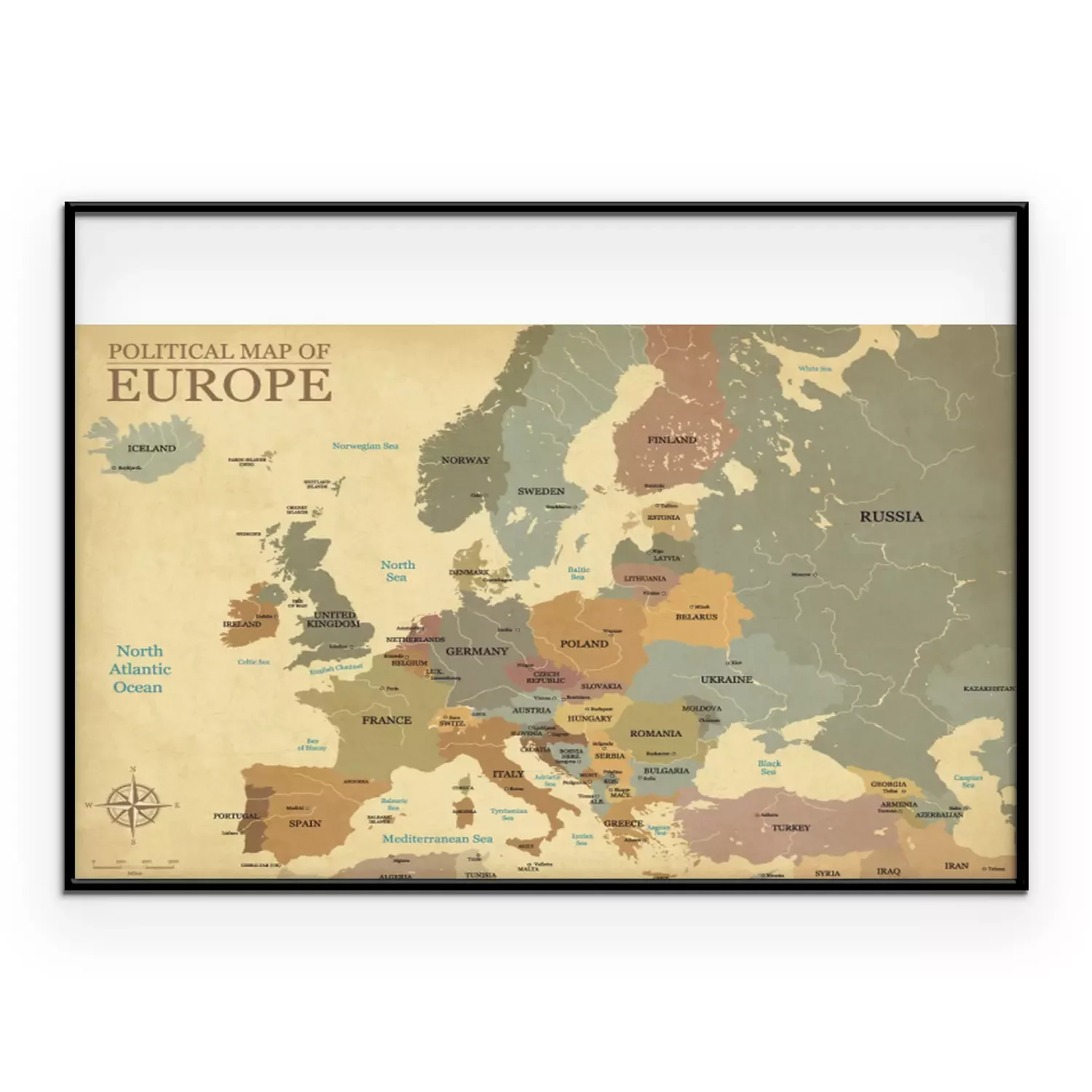 Poster Kontinente Grafik mit einer Retrokarte von Europa