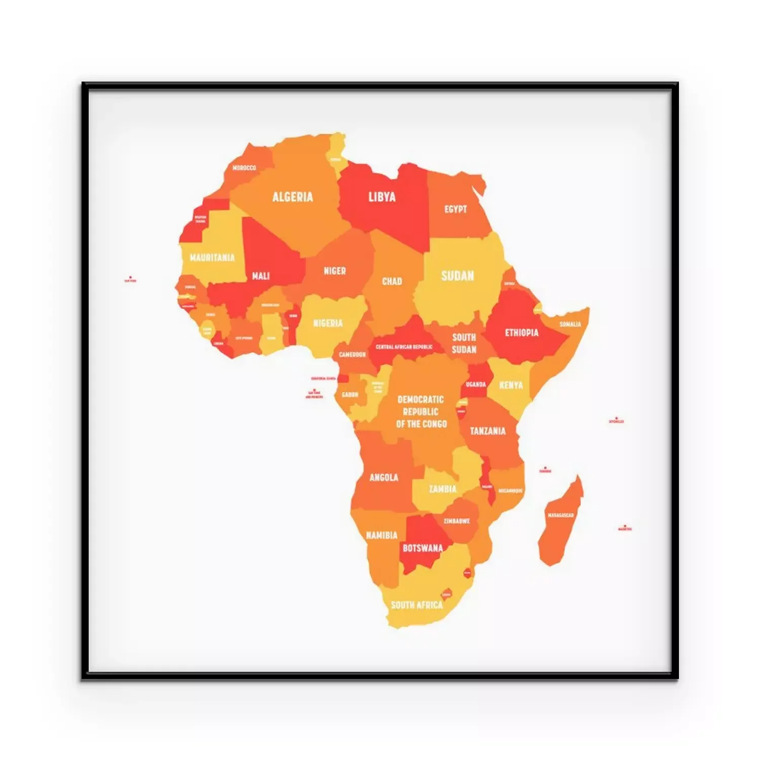 Poster: Kontinente orangefarbene Grafiken mit afrikanischen Ländern