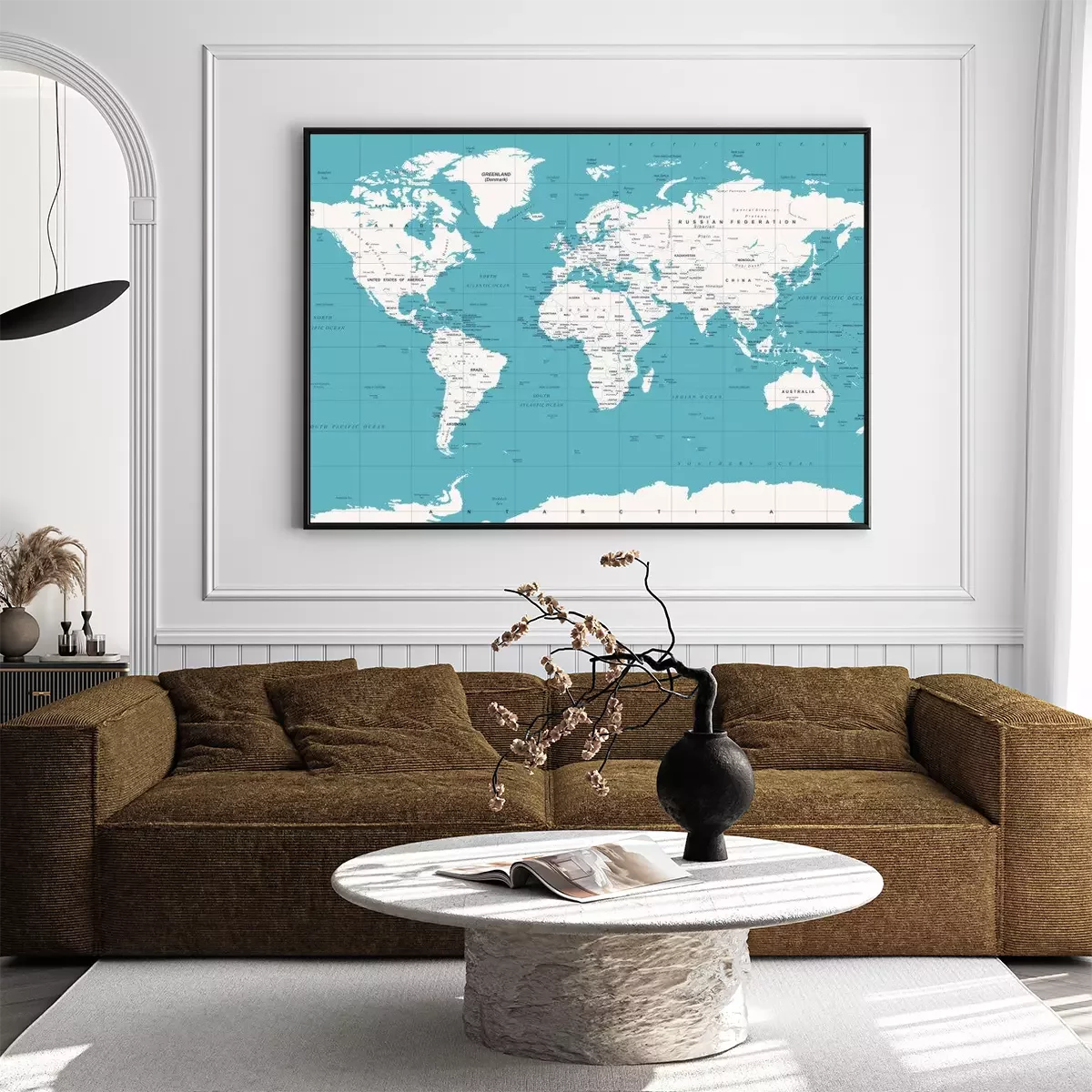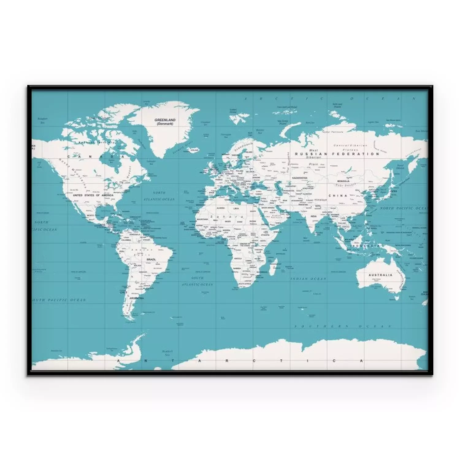 Poster: Kontinente und Ozeane genaue Weltkarte
