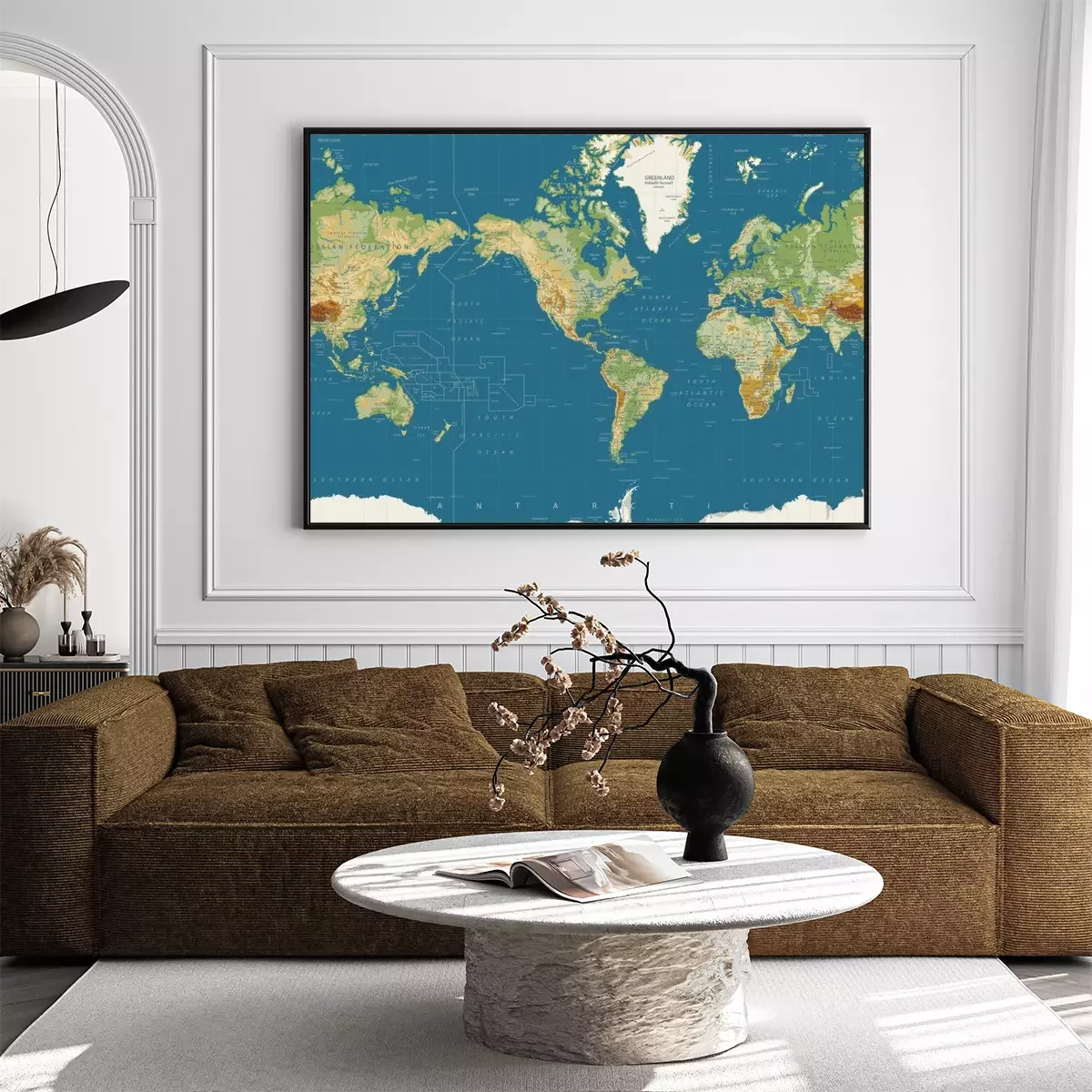 Vintage Physical World Map-Amerika Centered-Farben von Brown
