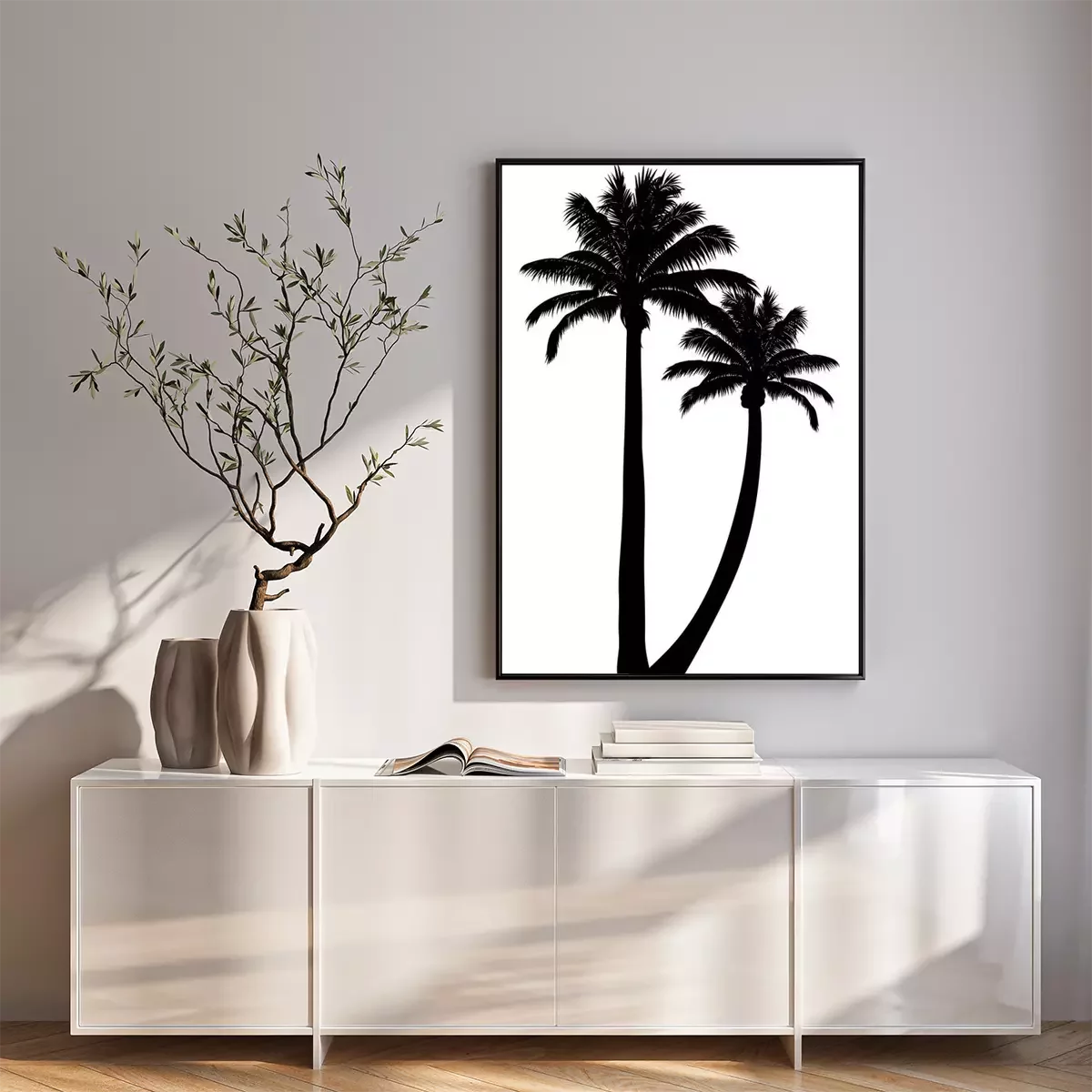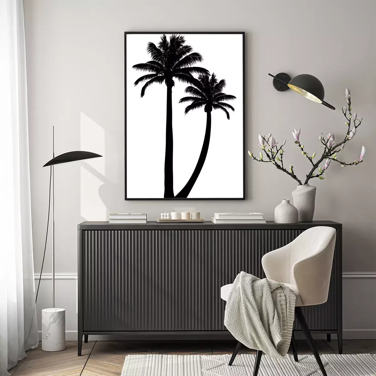 Poster: Konturen von schwarzen Palmen auf weißem Hintergrund