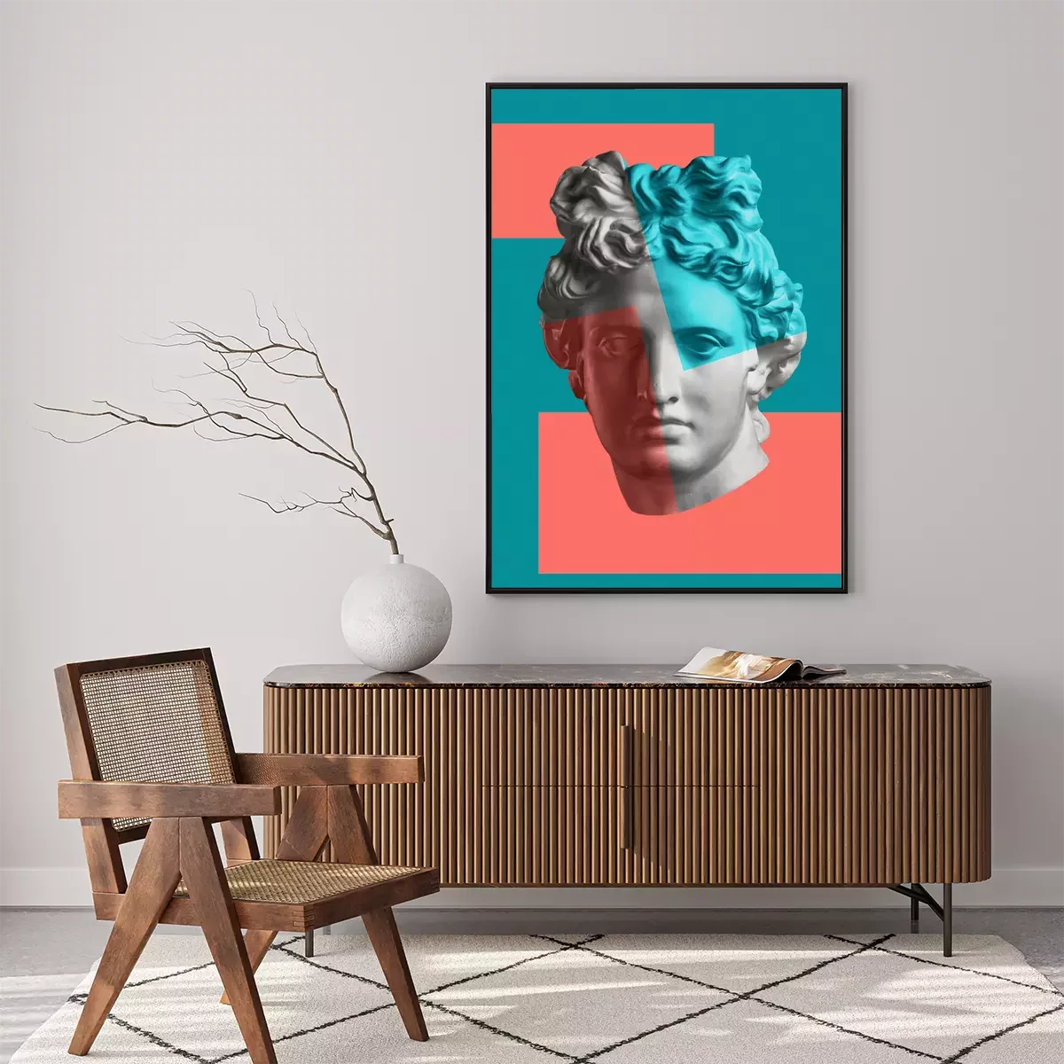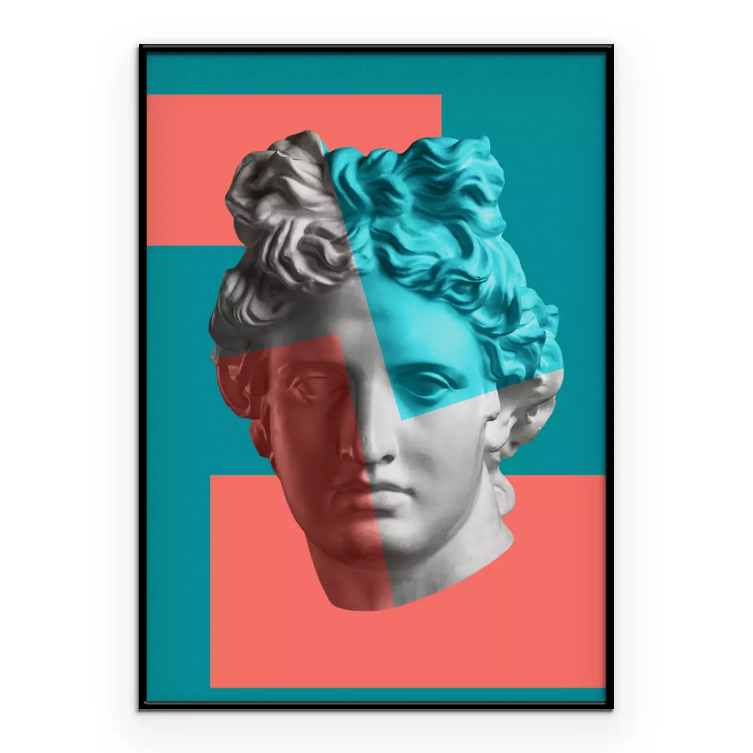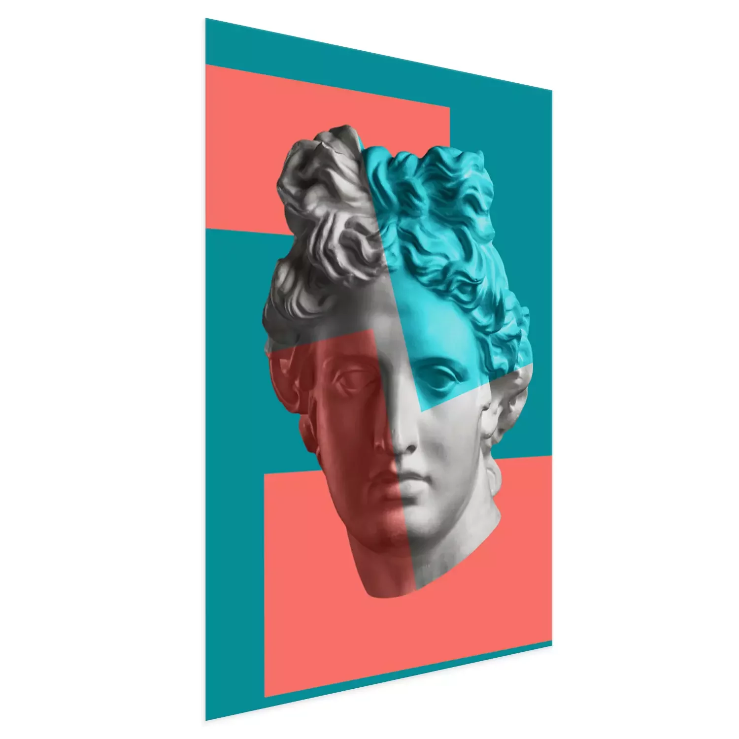 Poster: Kopf einer antiken Gestalt auf geometrischem Hintergrund