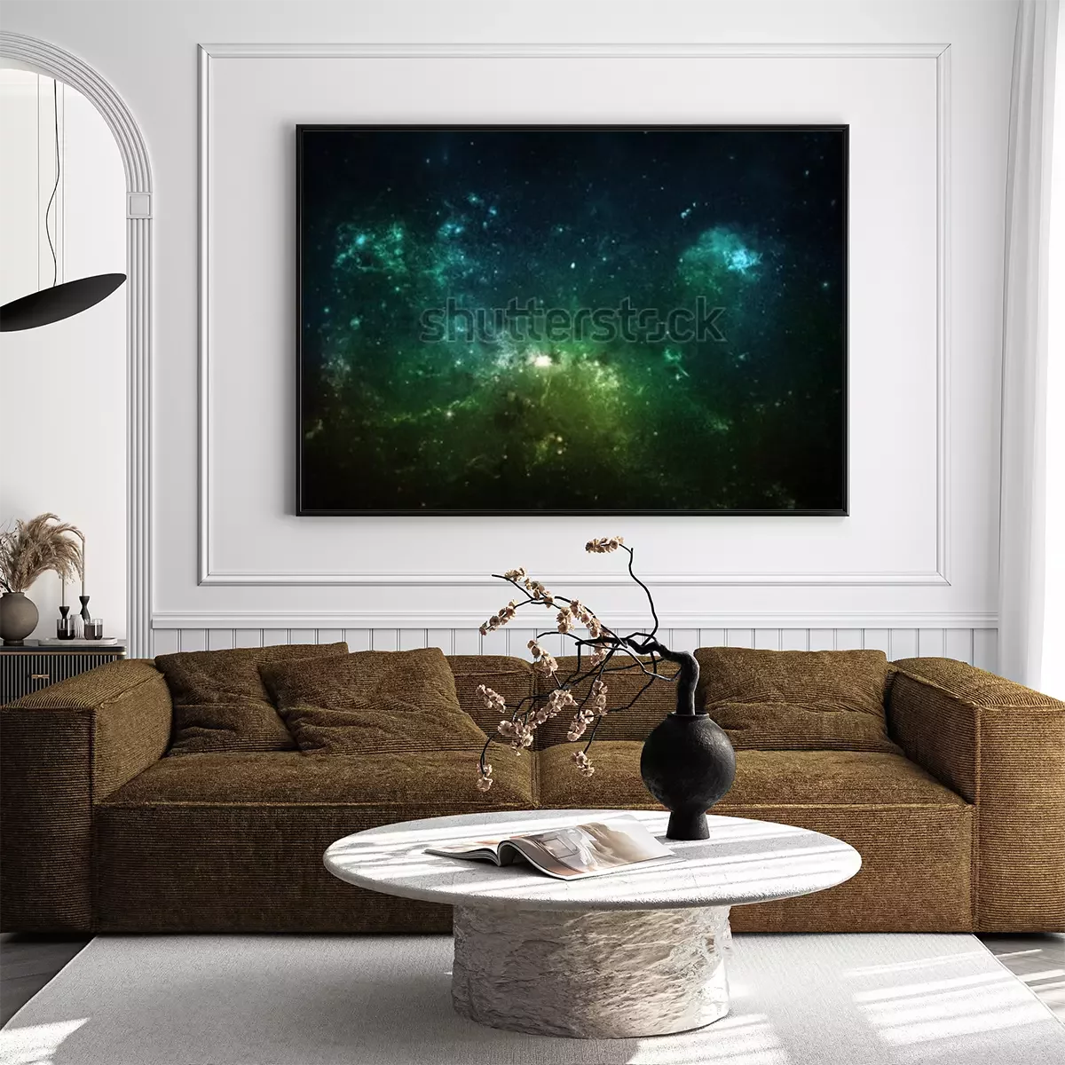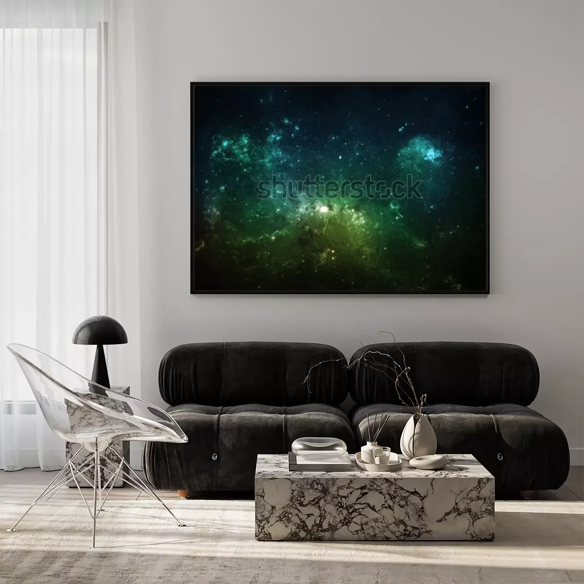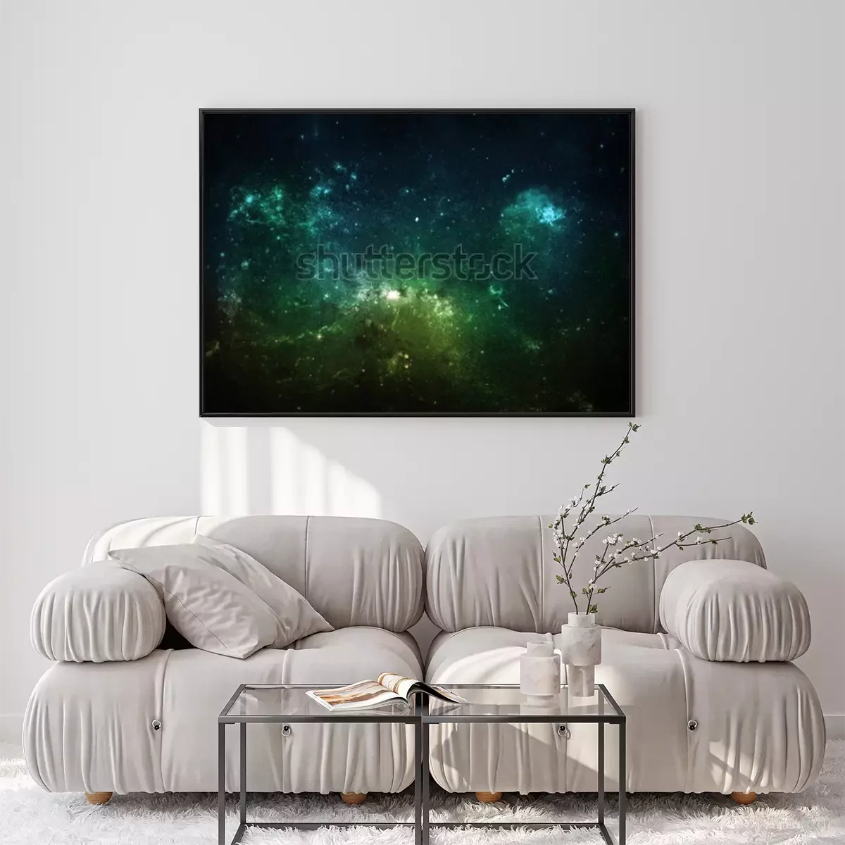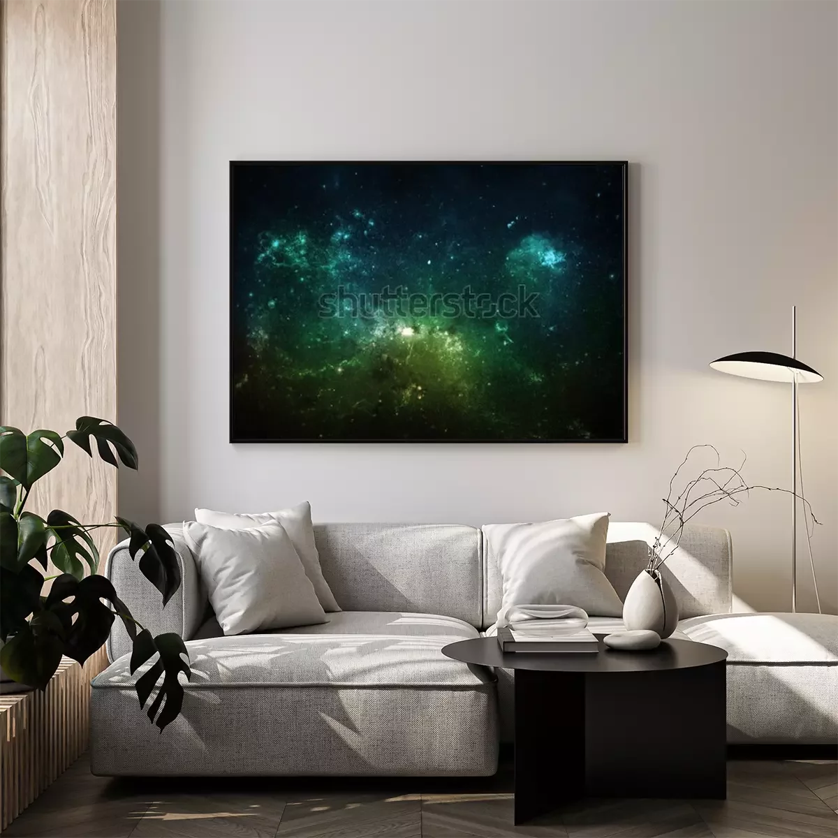 Poster: Kosmischer Raum mit einem Nebel in Grüntönen