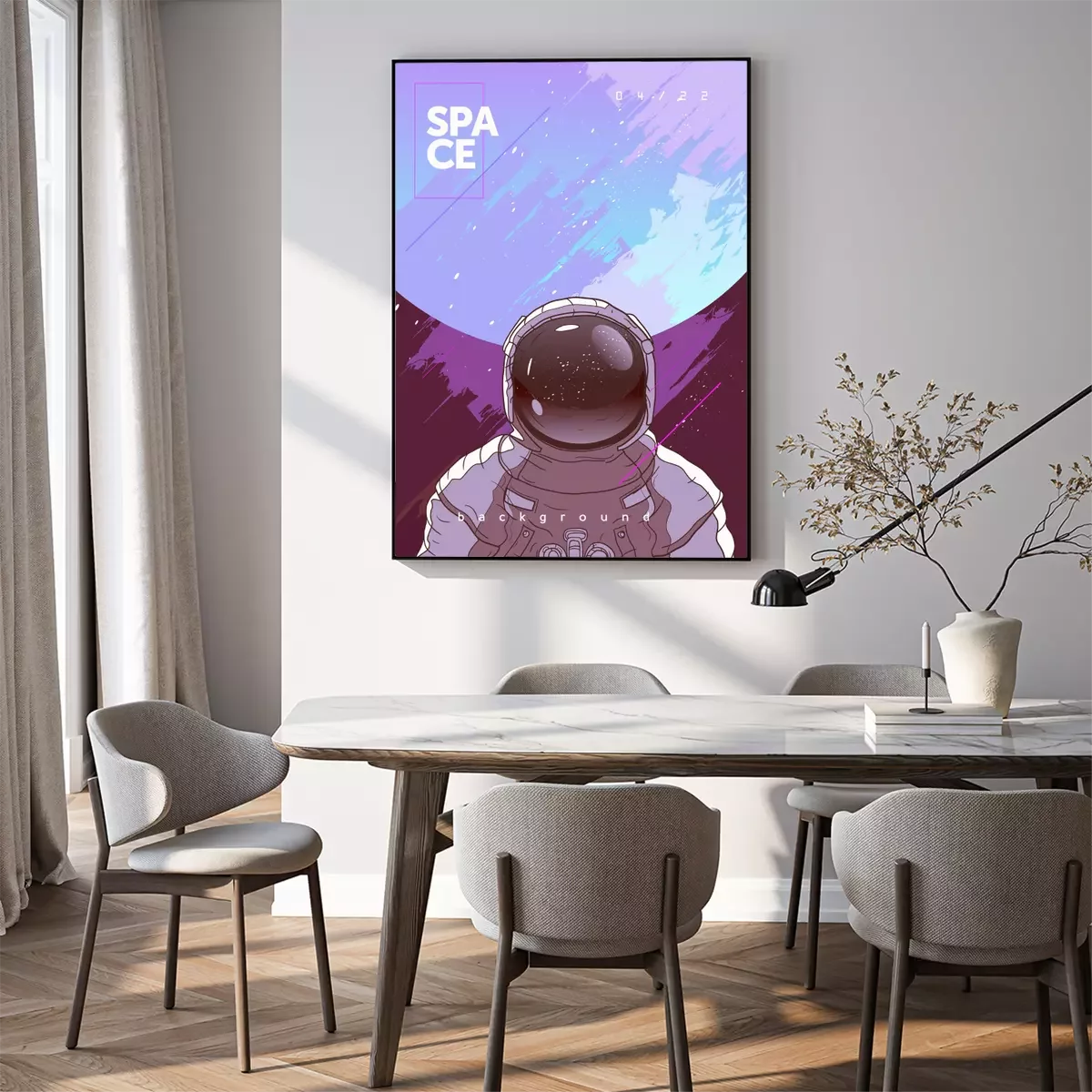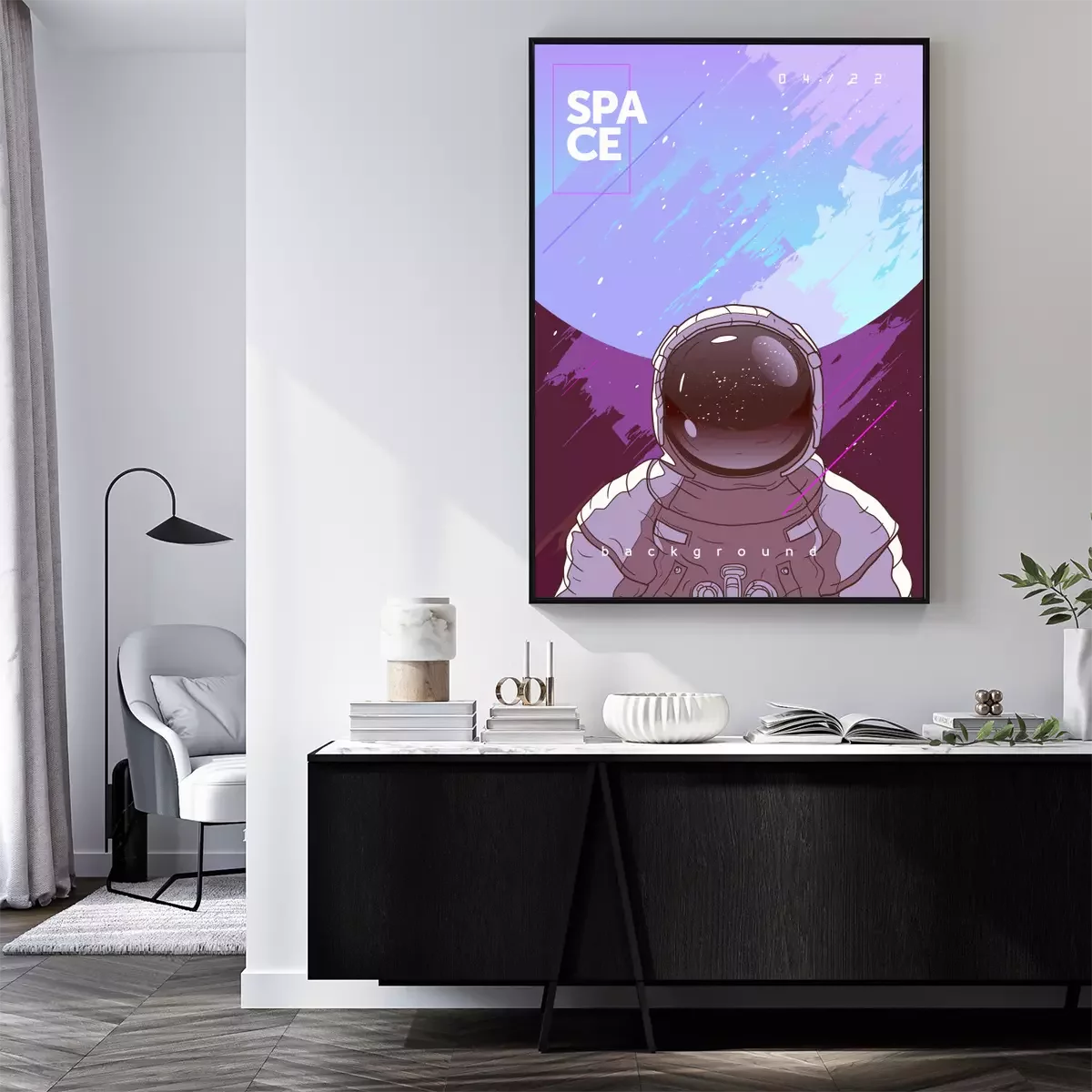 Poster: Kosmonaut in einem Raumanzug vor einem Planeten
