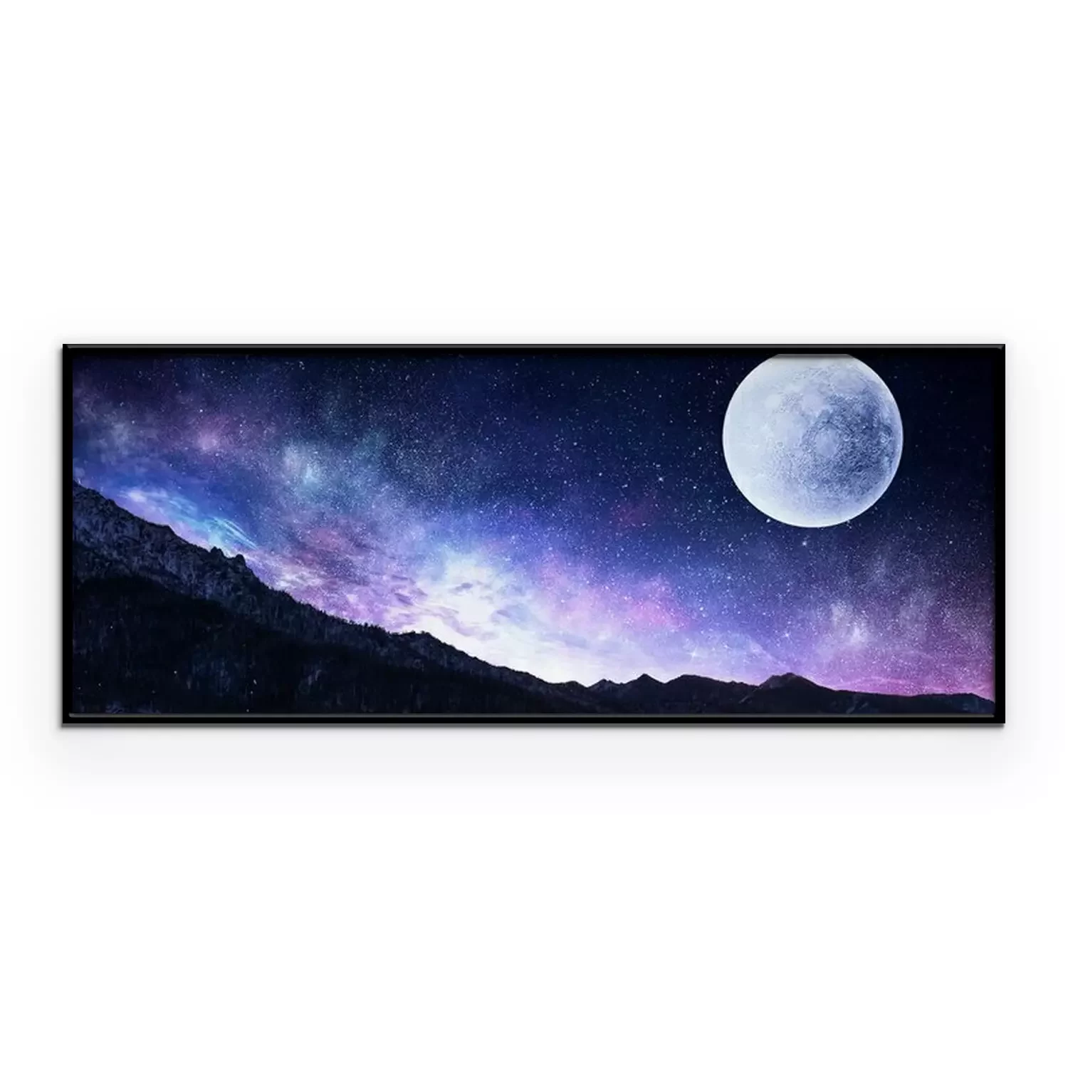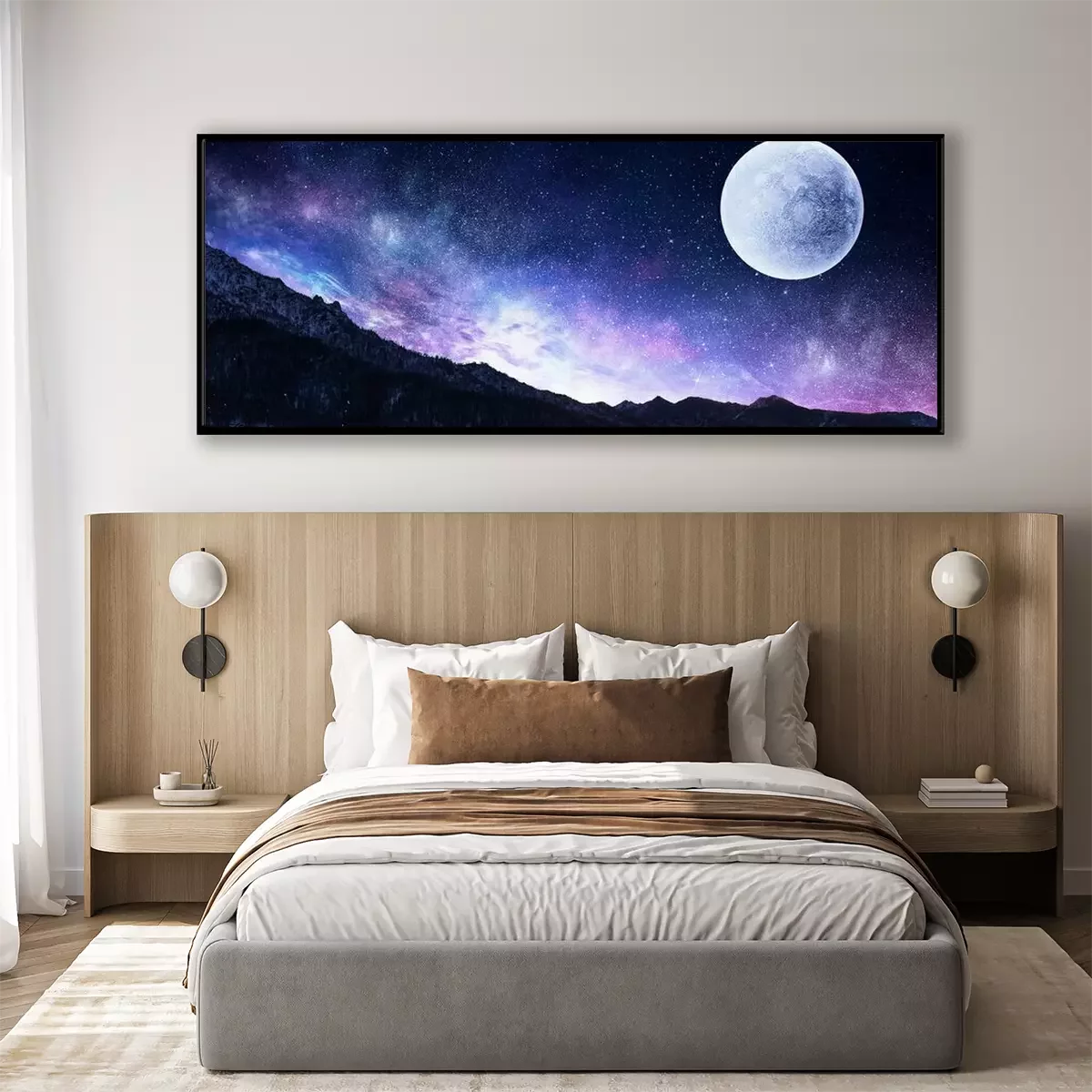 Das Meer mit einem riesigen Mond und einem Sternenhimmel