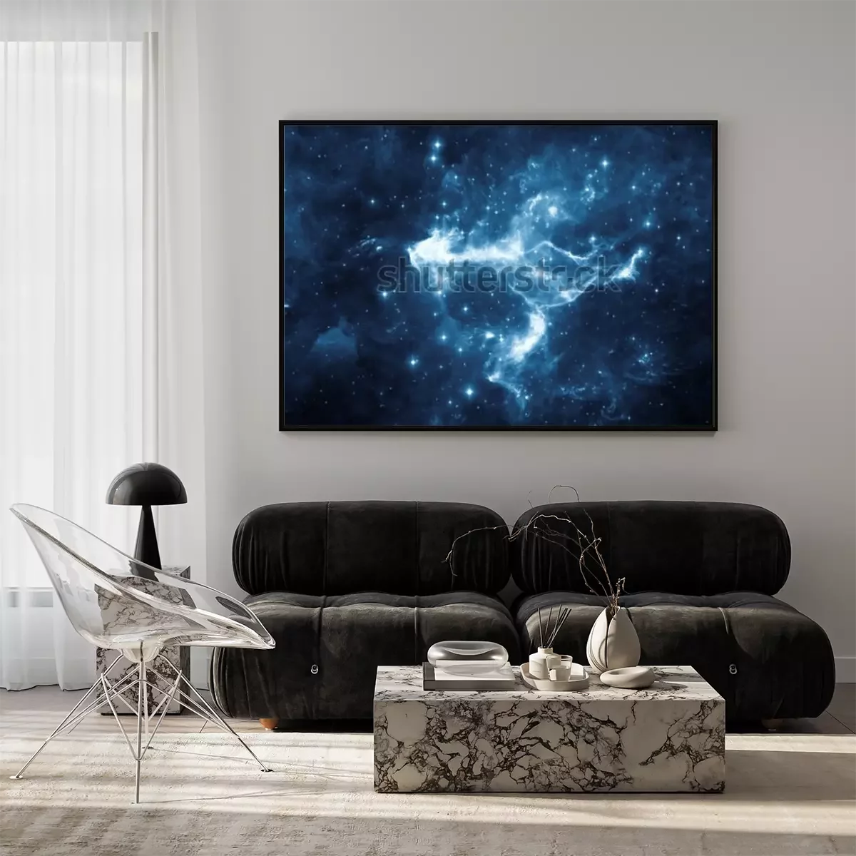 Poster: Kosmos und Wolken mit Sternen bedeckt