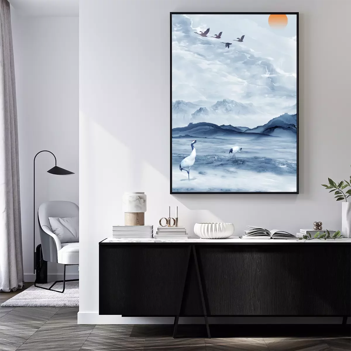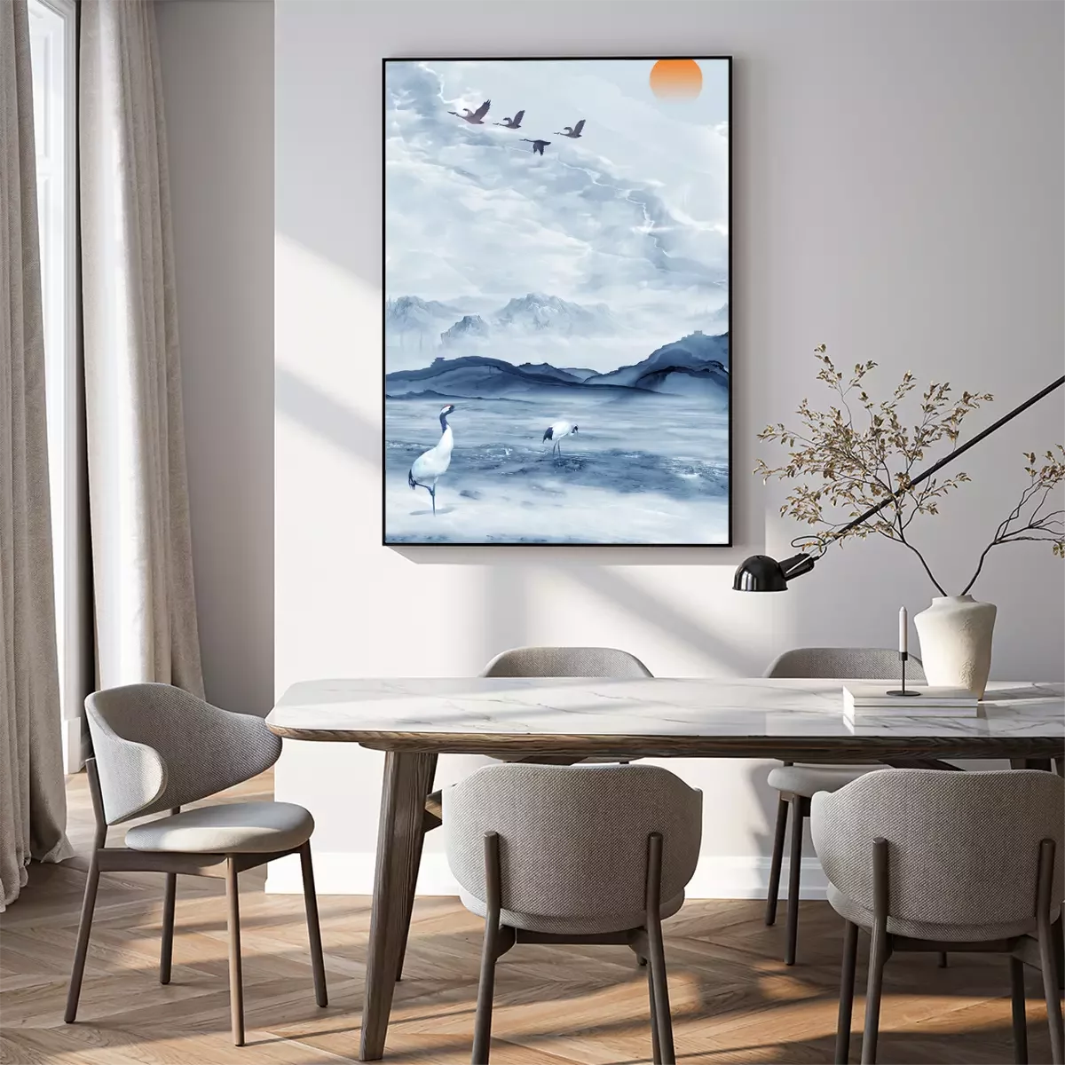 Poster: Kraniche an der Küste