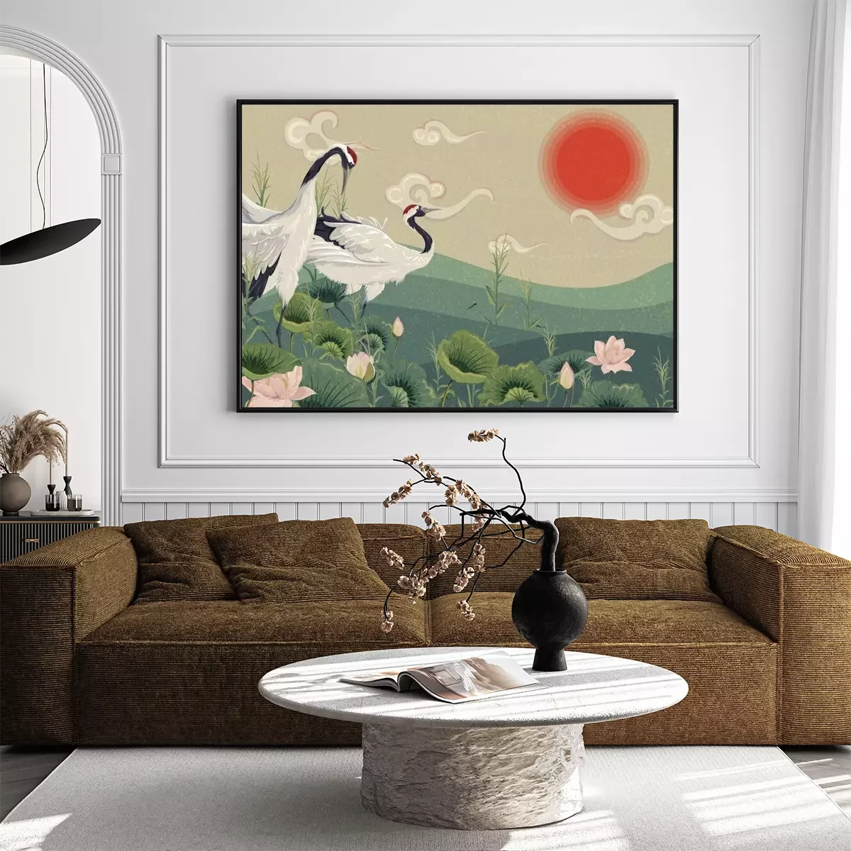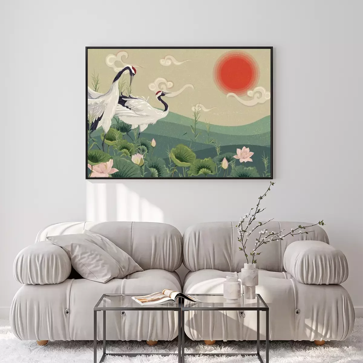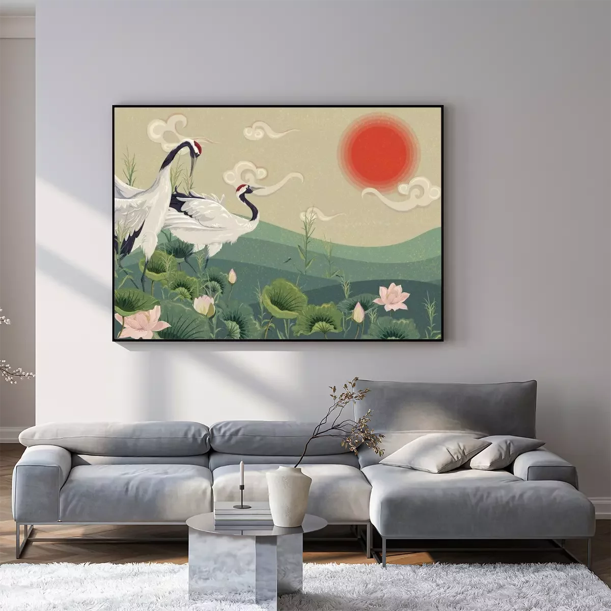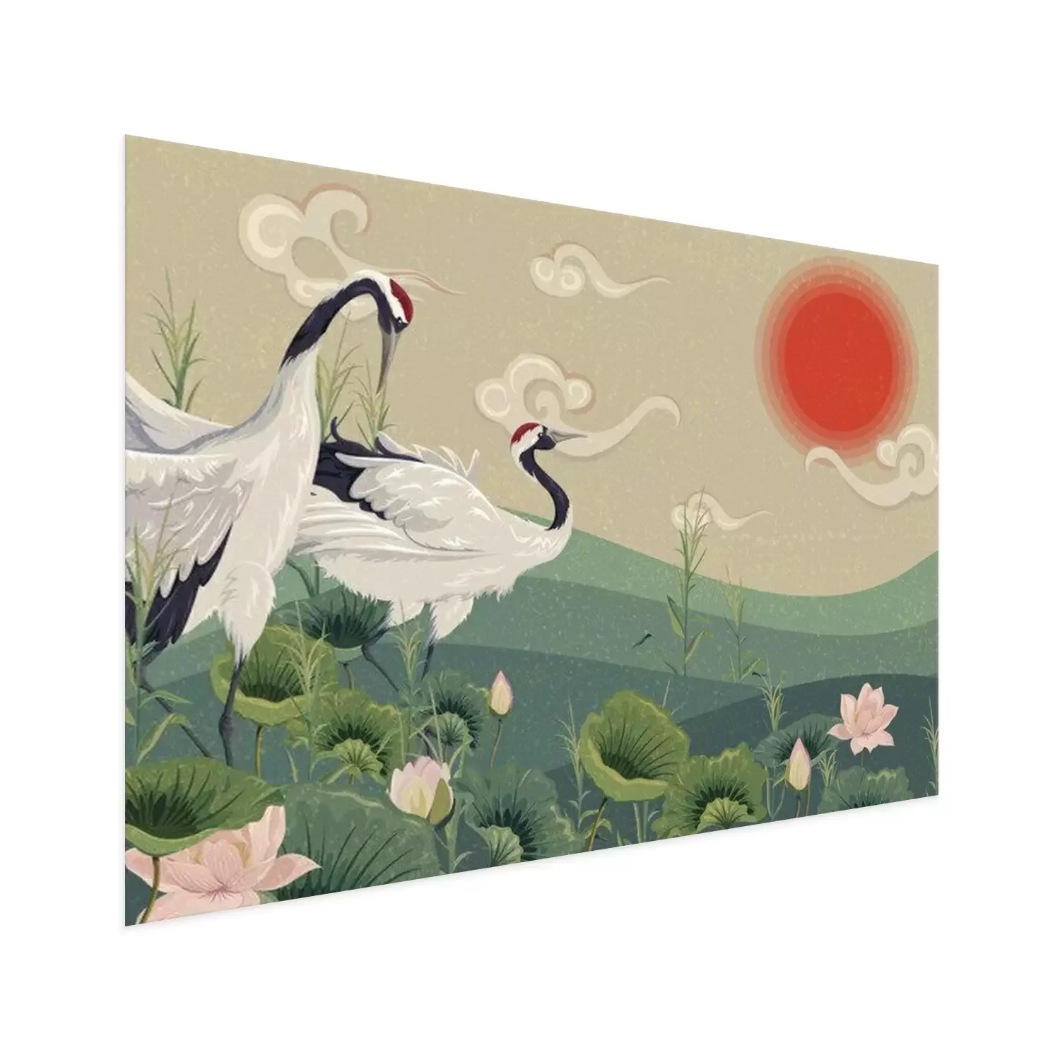 Orientalische Landschaft mit KranichenProblemlose Lieferung durch vertrauenswürdige Spediteure