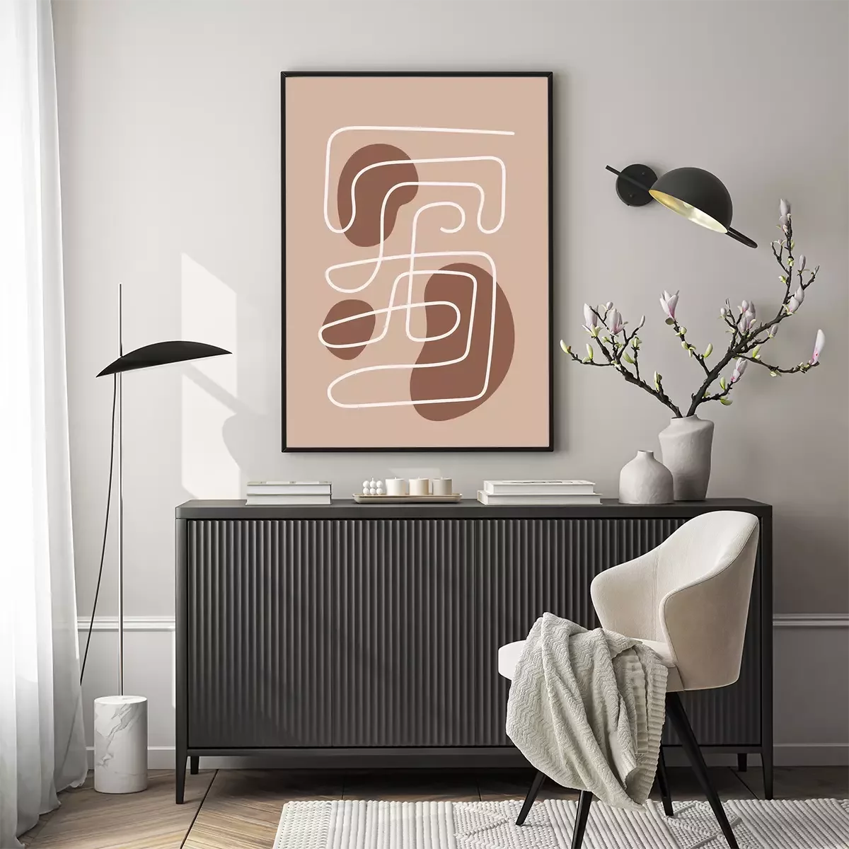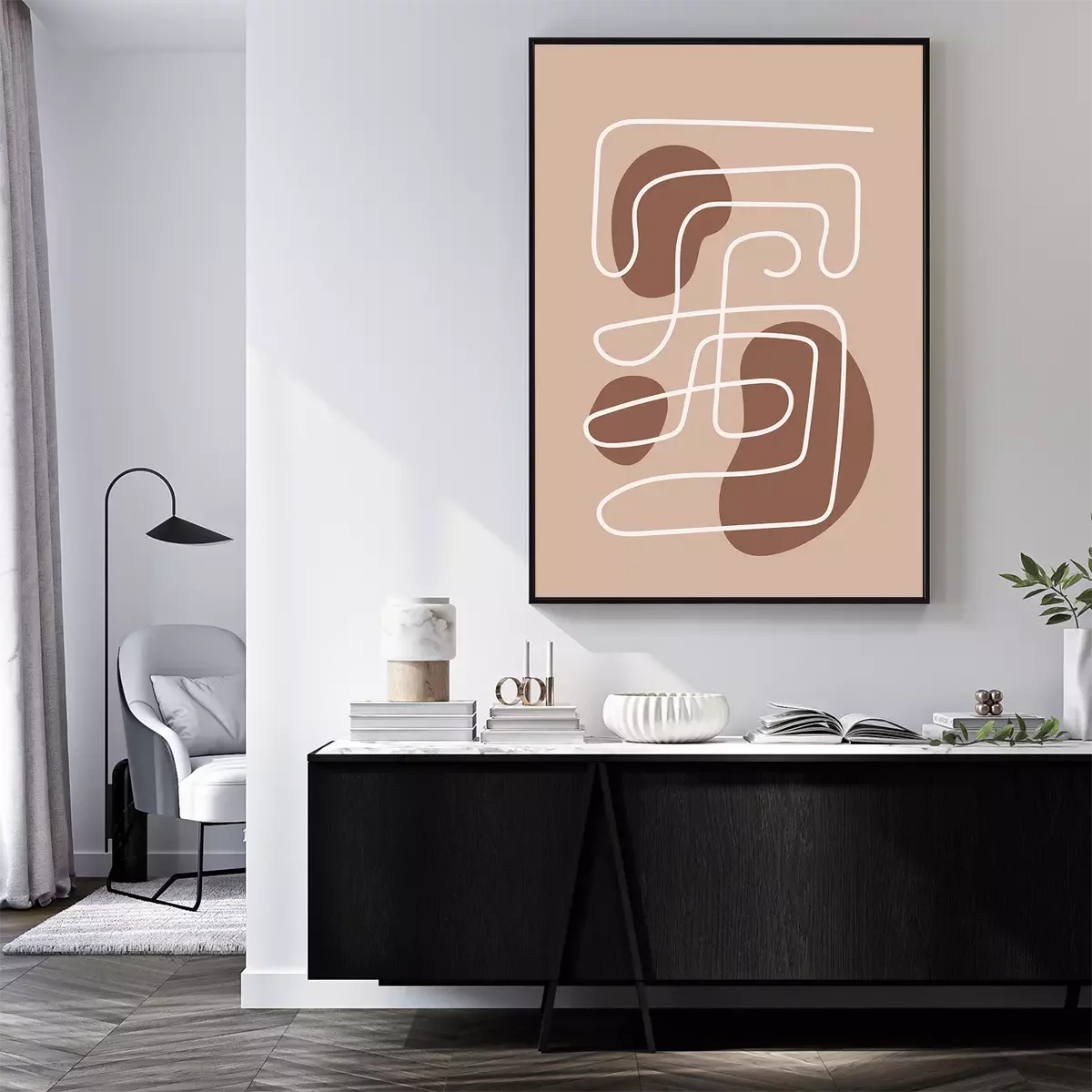 Poster: Labyrinth aus Linien auf hellem Hintergrund