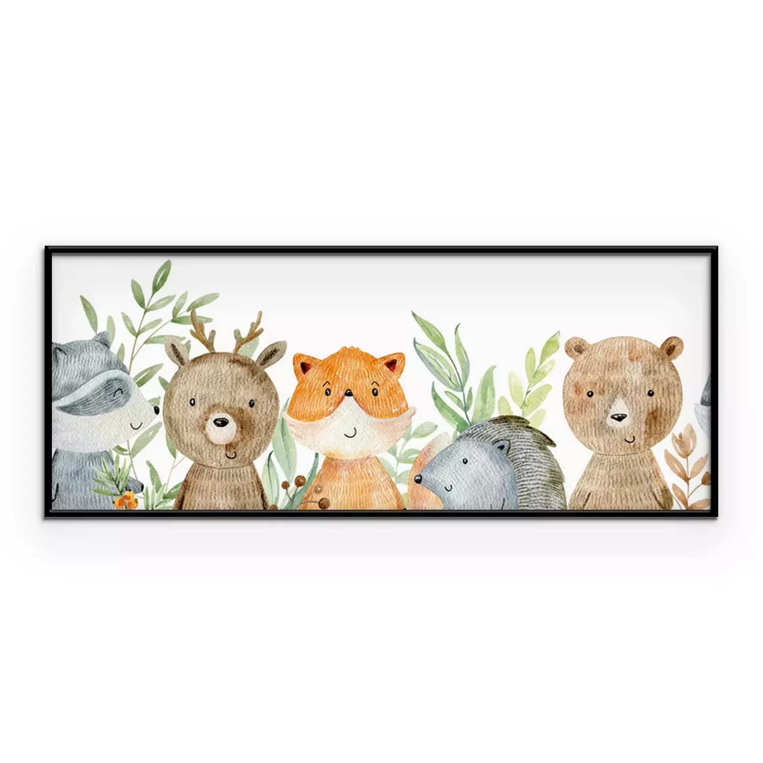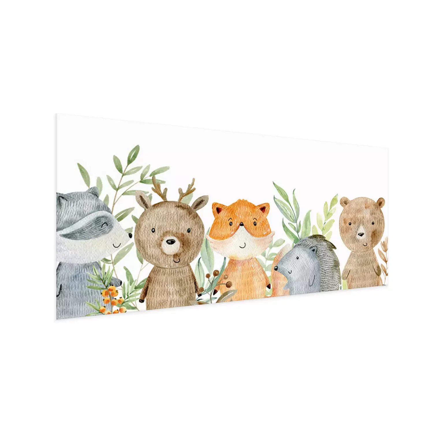 Lächelnde Waldtiere mit einem grünen Blattmotiv